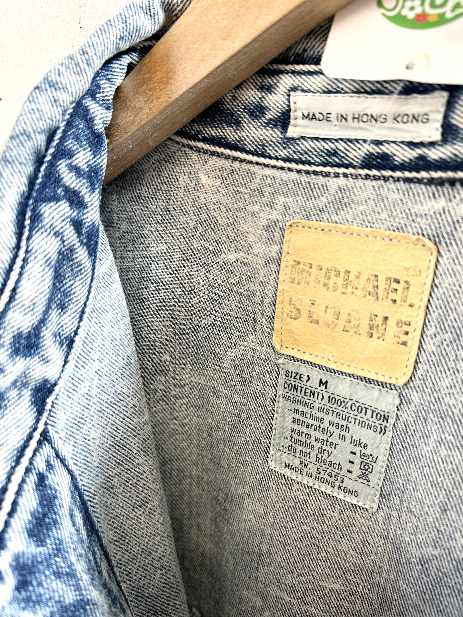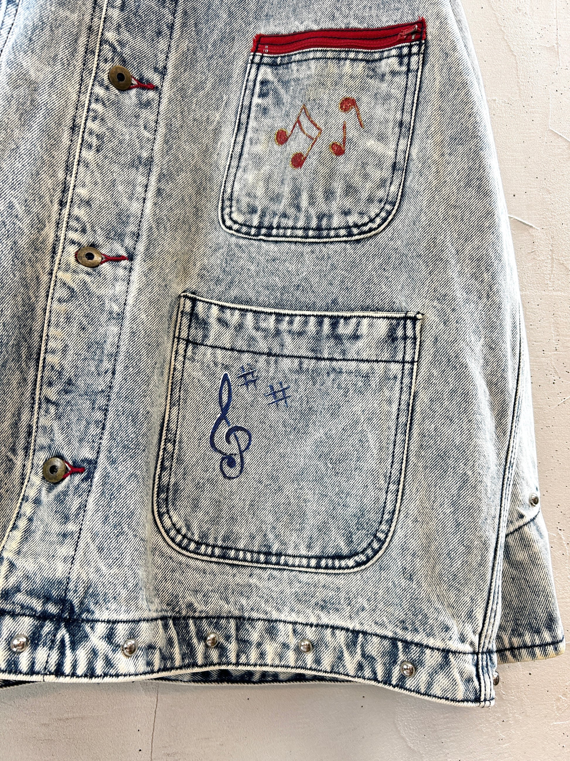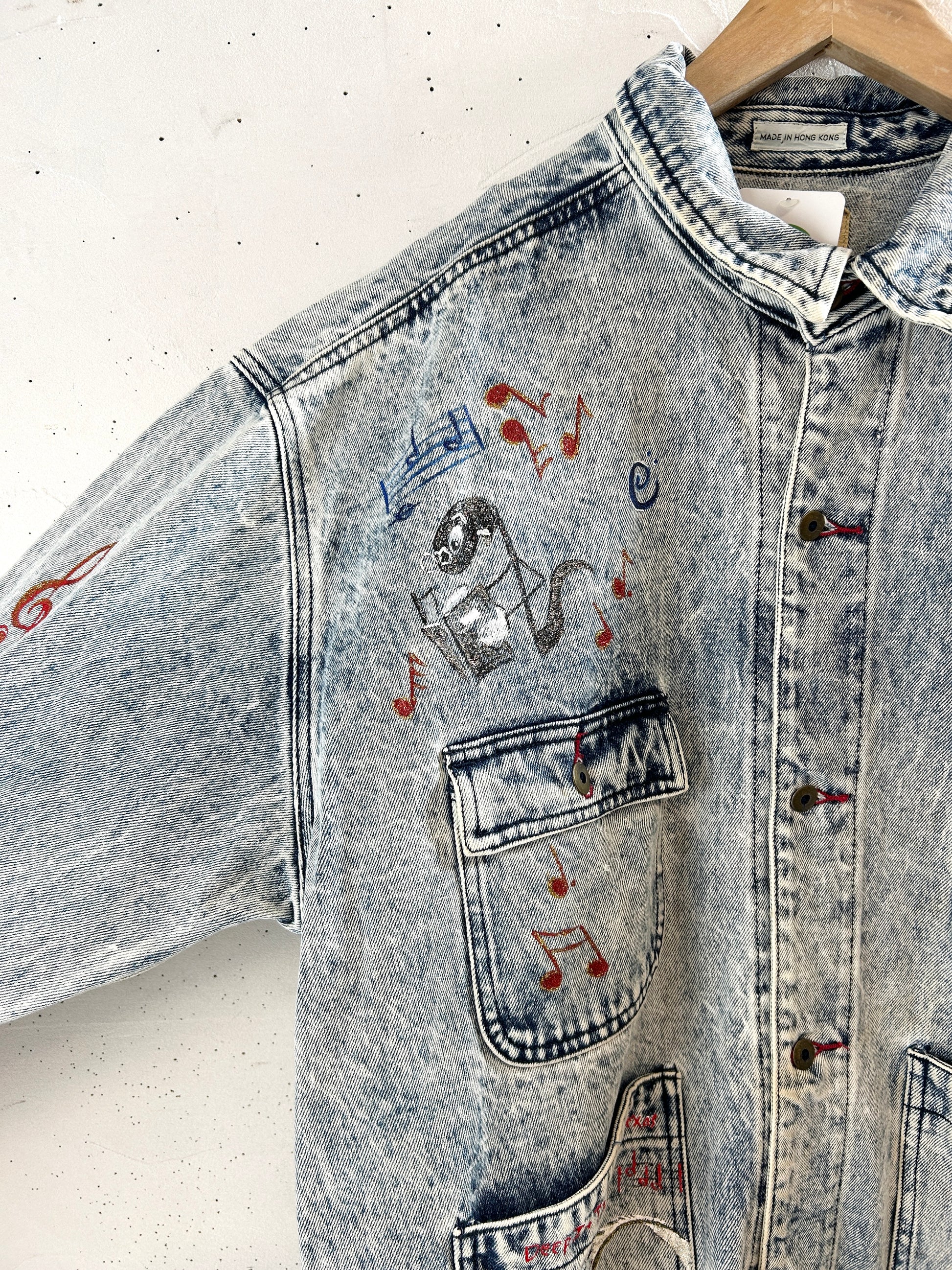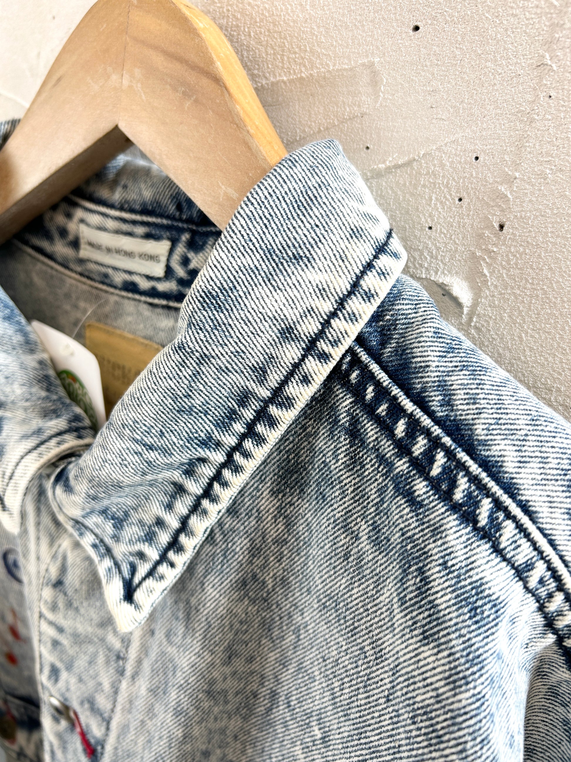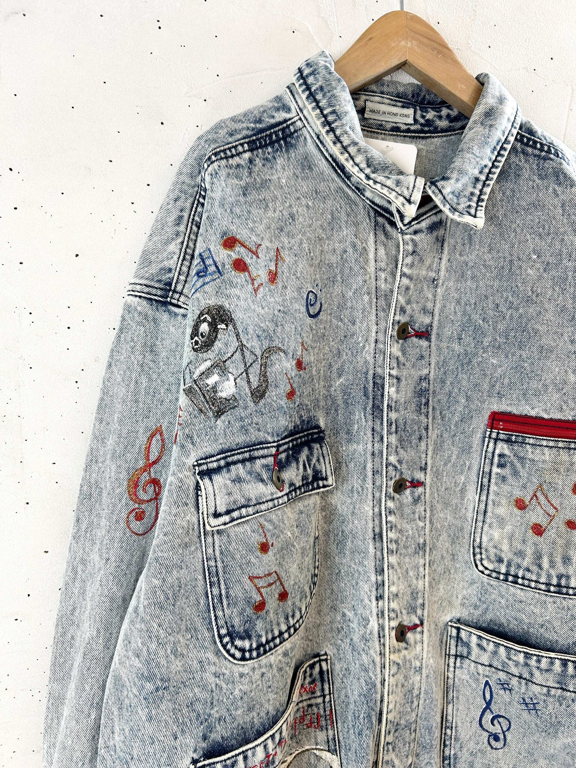 がっぽり良いシルエットのデニムジャケットにペイントやスタッヅが程こされた1着。