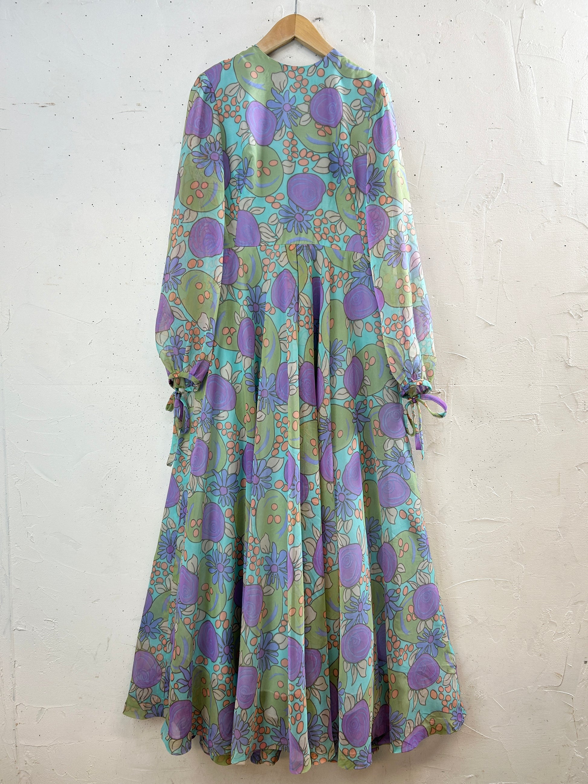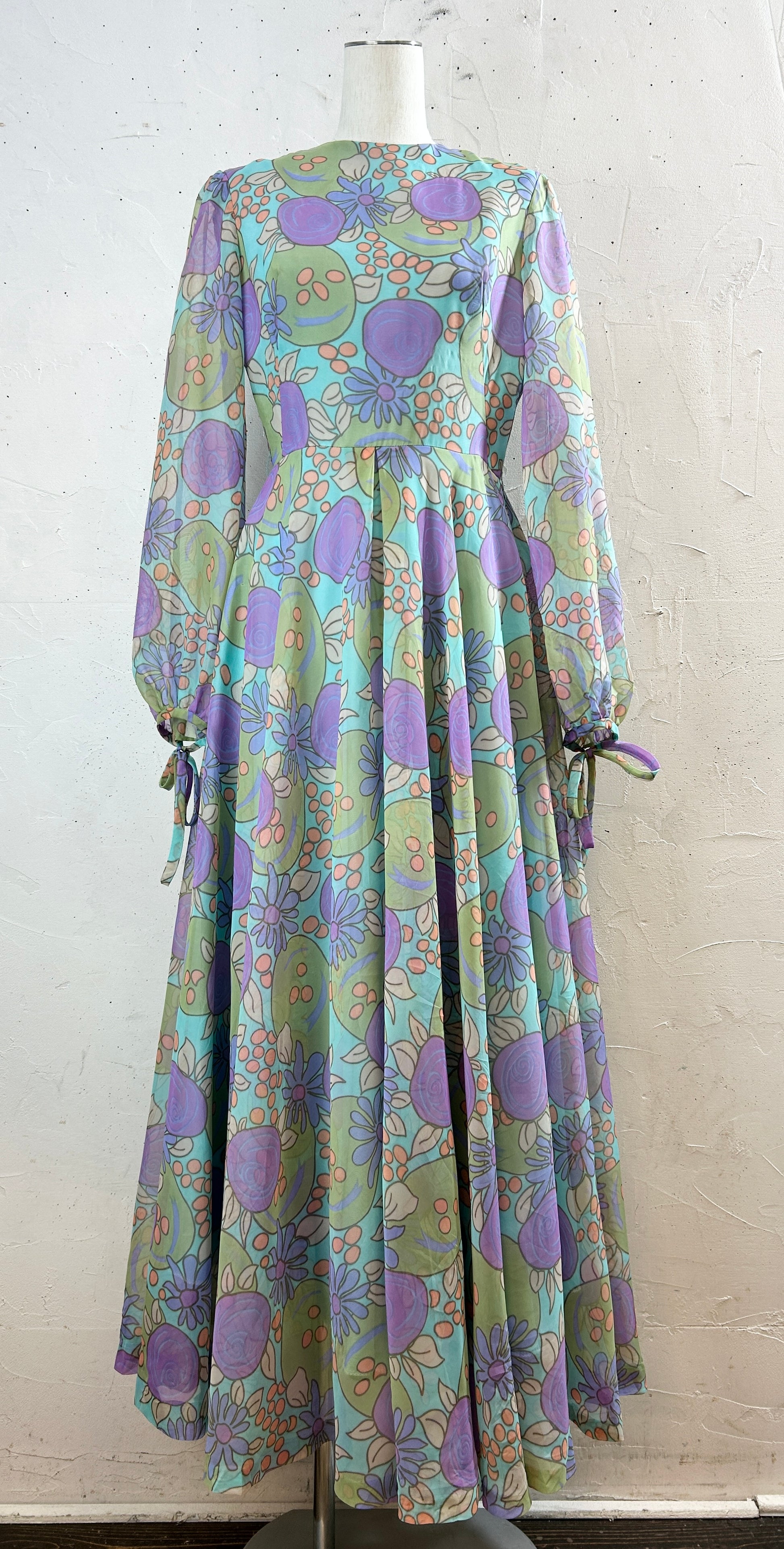 size:表記不明     肩幅37cm、身幅46cm、ウエスト71cm(切り替え部分採寸)、袖丈60cm、着丈136.5cm、ウエストから裾98.5cm