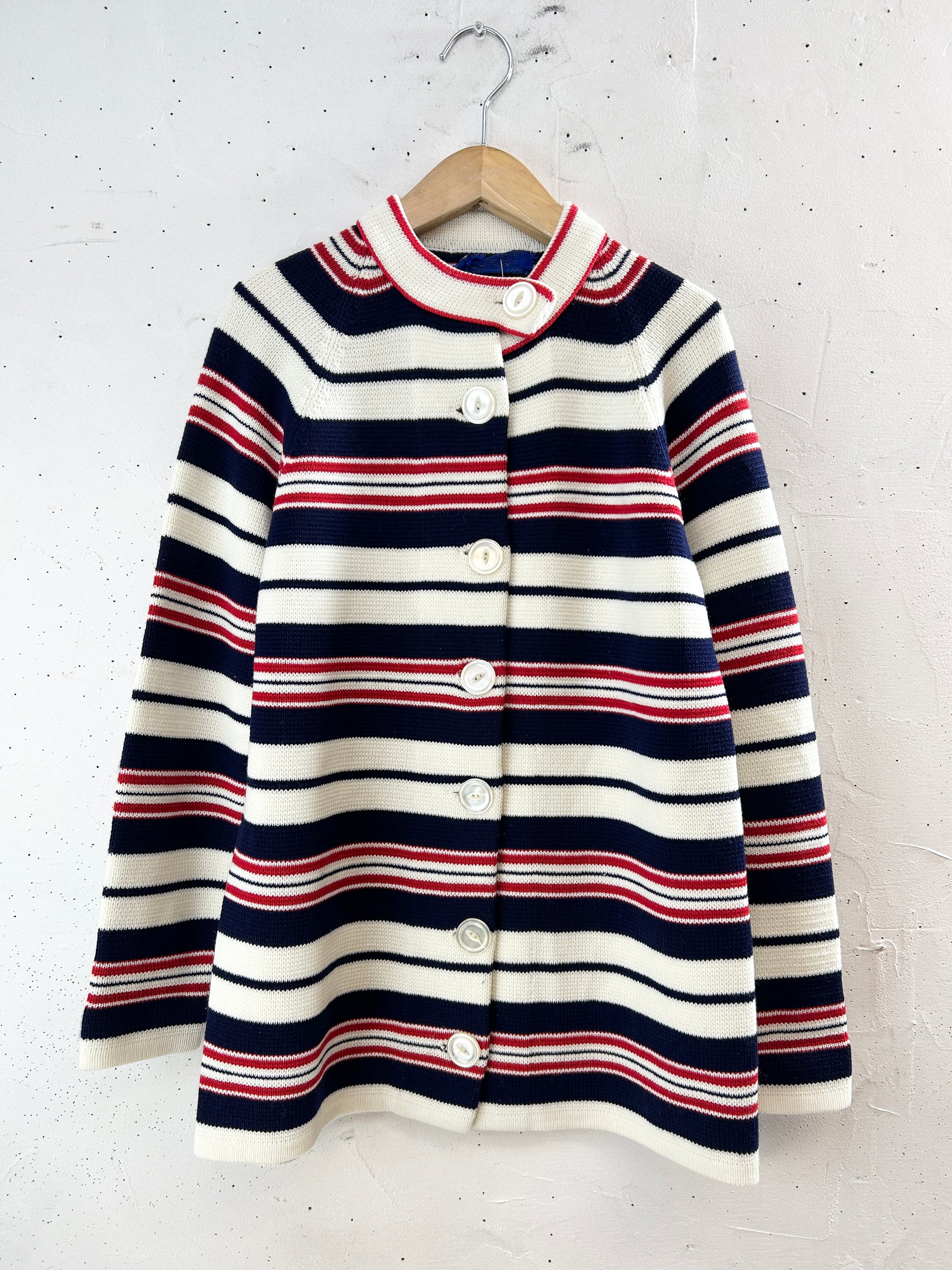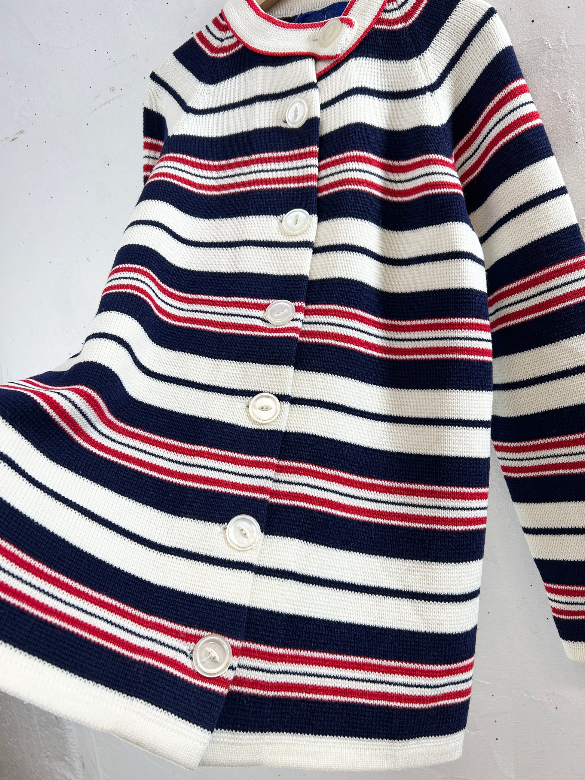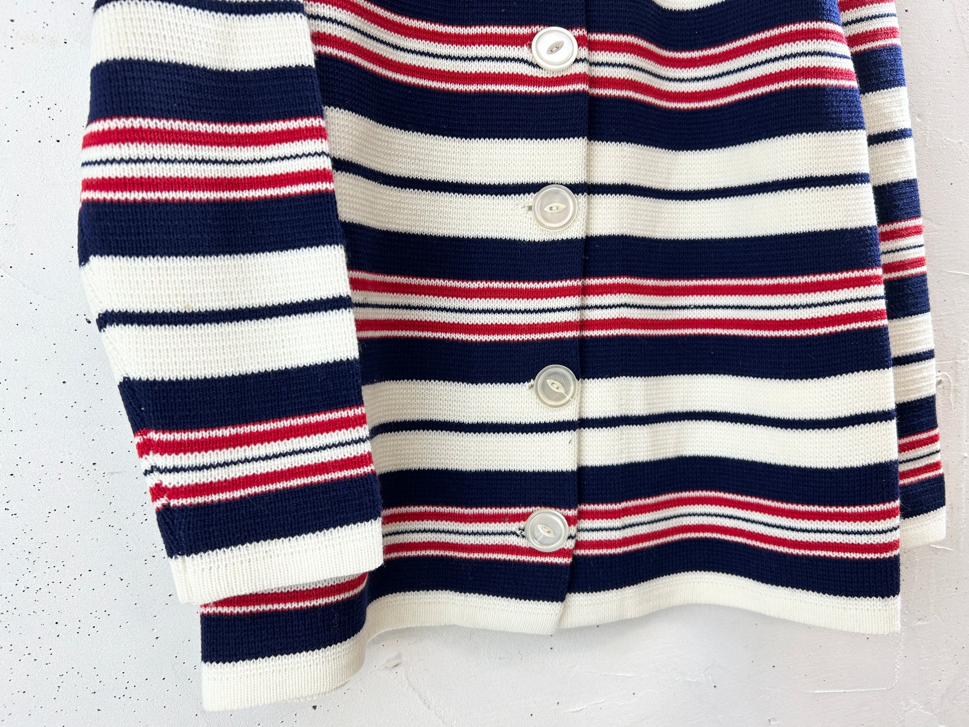トリコカラーもボーダーアイテム、フロントは猫目ボタンでビンテージならではの品があります。