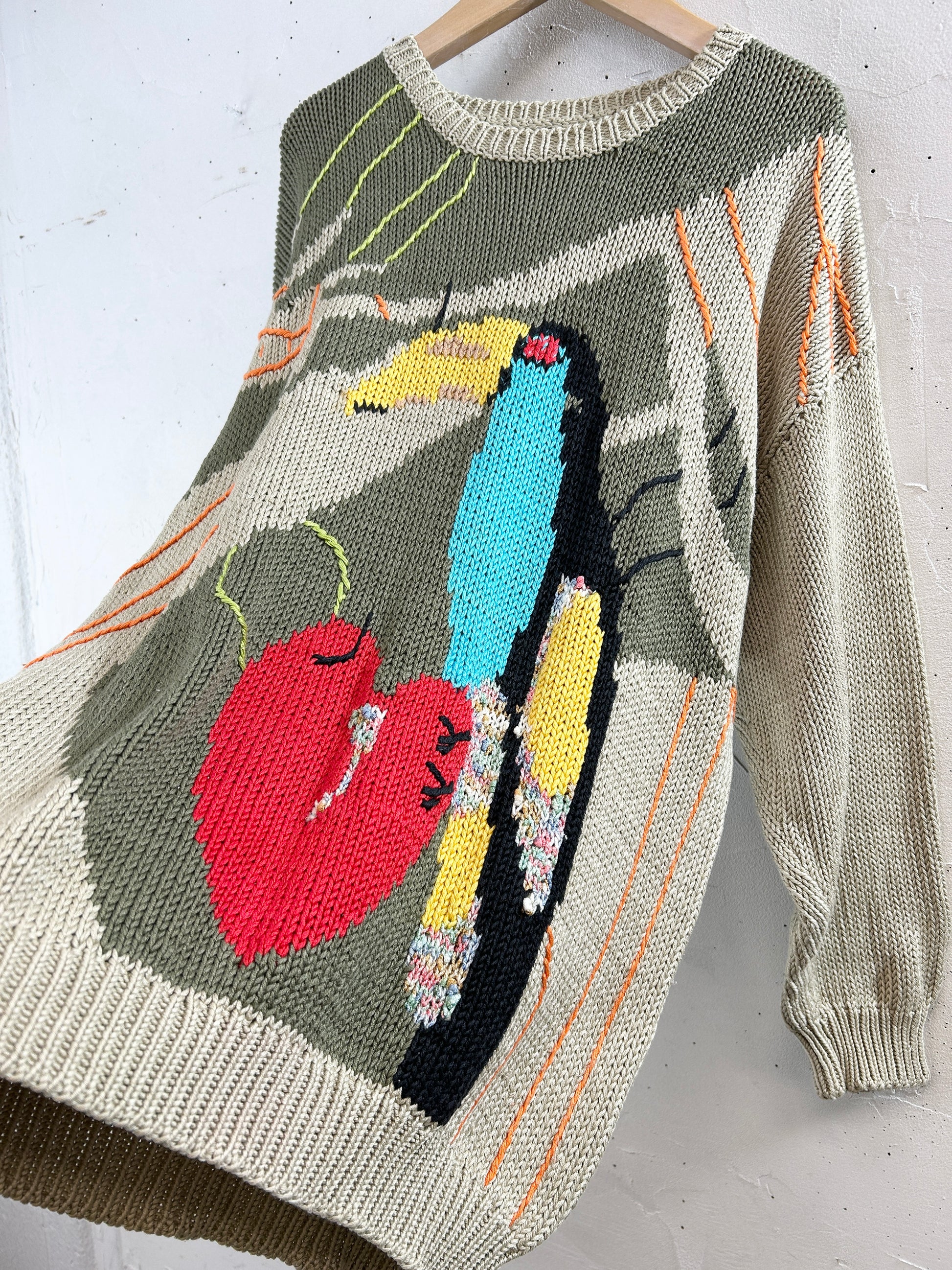 カラフルな南国の鳥のオニオオハシの様な鳥がデザインされた1着。