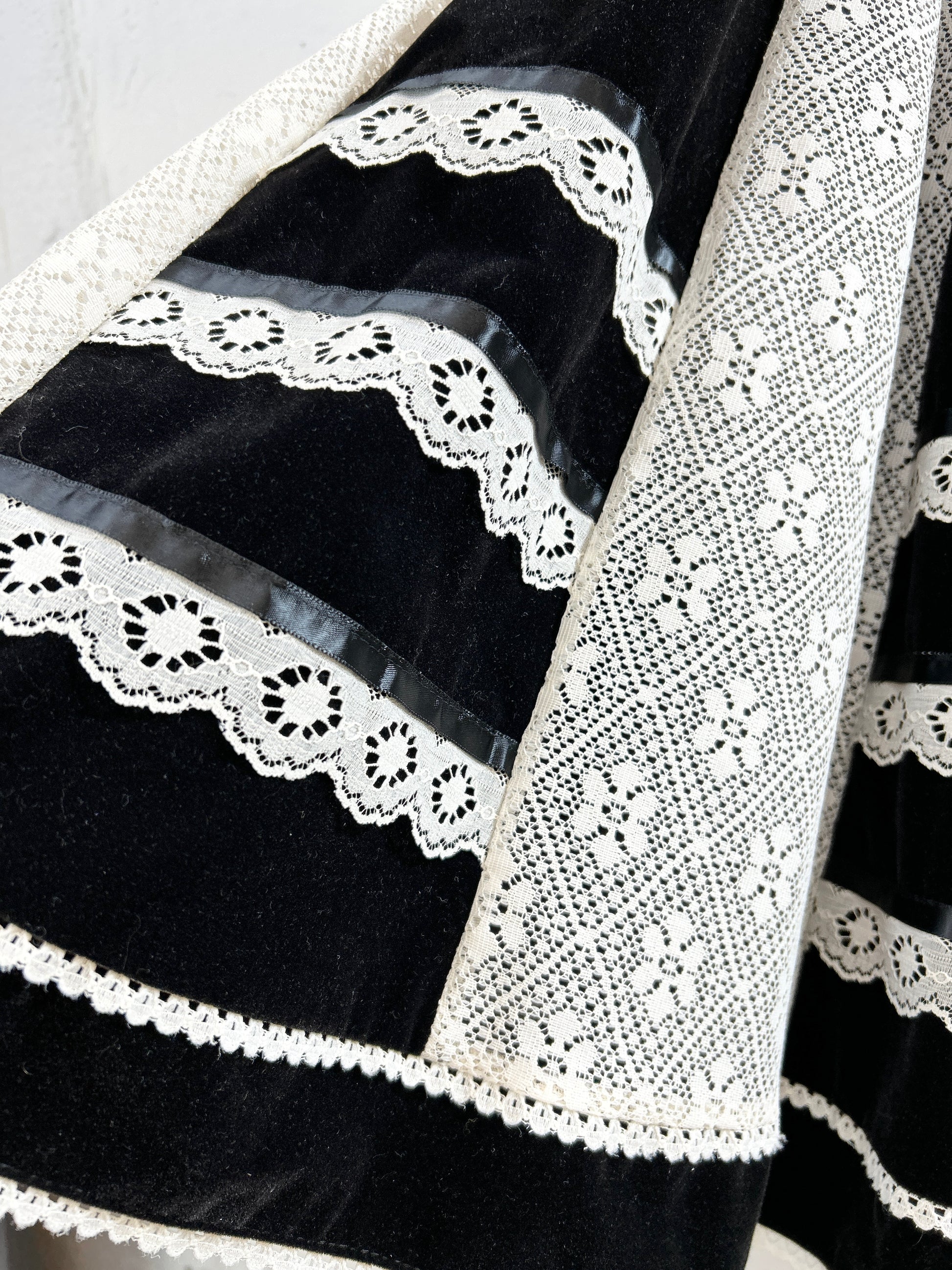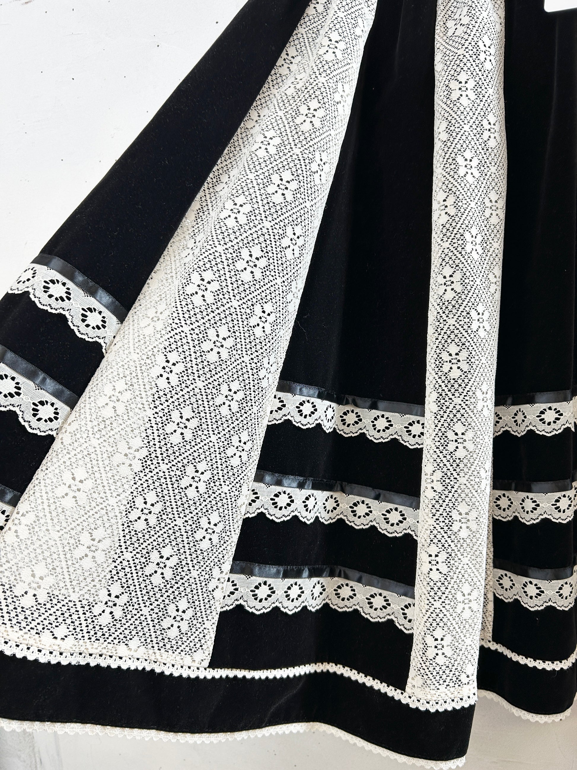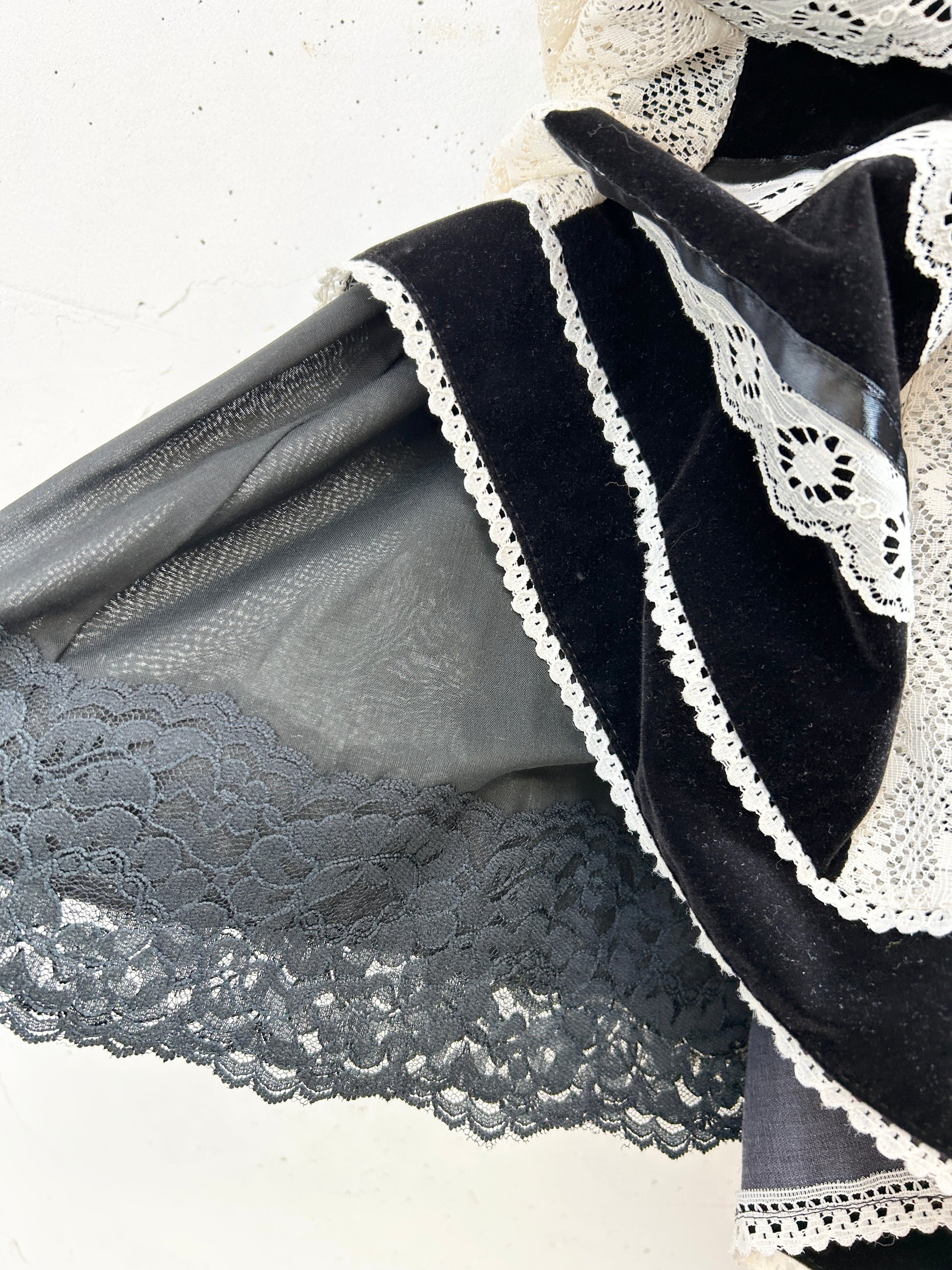 肉厚なベロア生地とレースの組み合わせ。しっかりとした素材感が重厚感ございます。