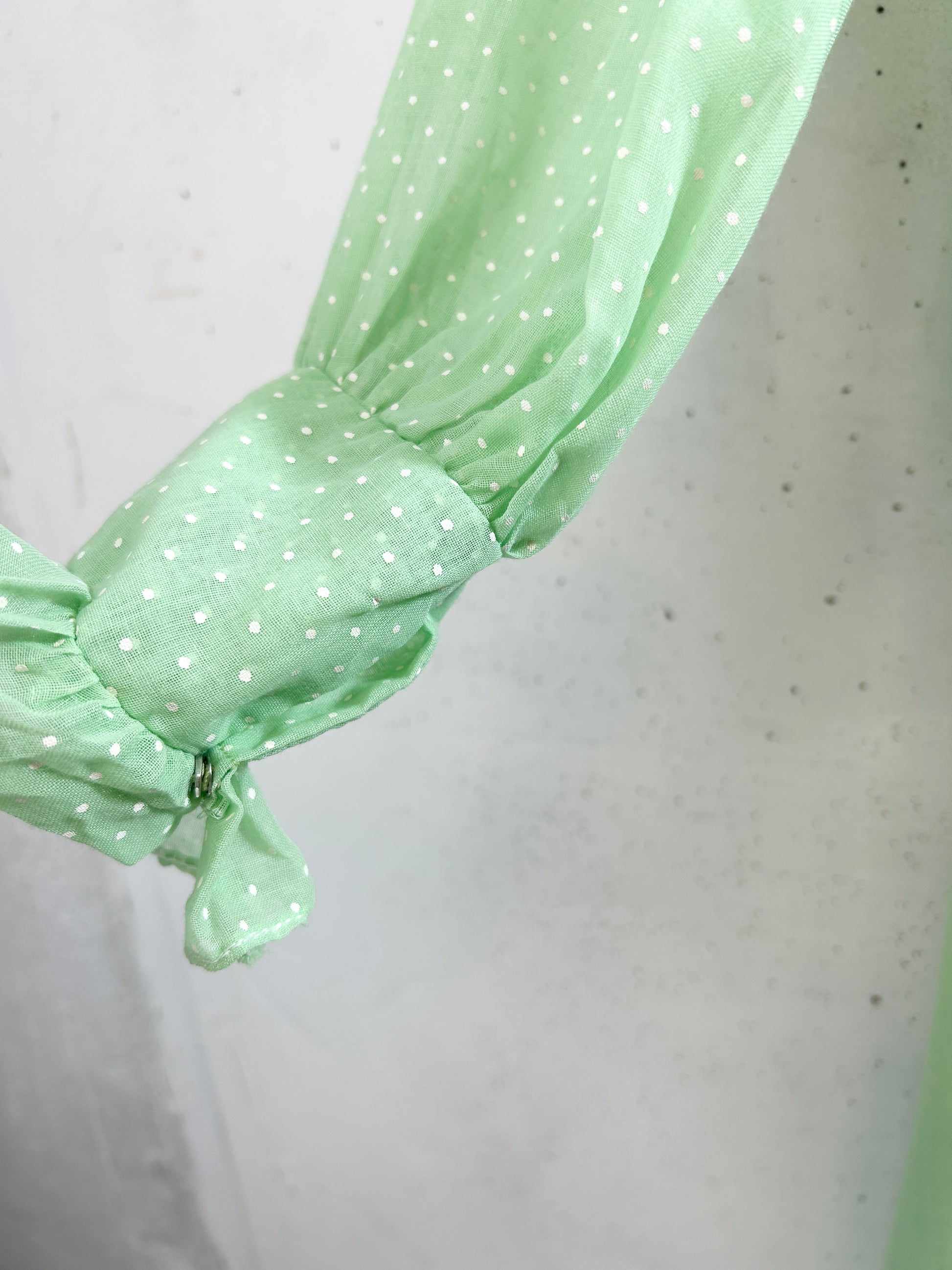 size:表記7 肩幅37.5cm、身幅43.5cm、ウエスト71cm(切り替え部分採寸)、袖丈61cm、着丈138cm(後ろ1番長いところまで採寸)、ウエストから裾106cm