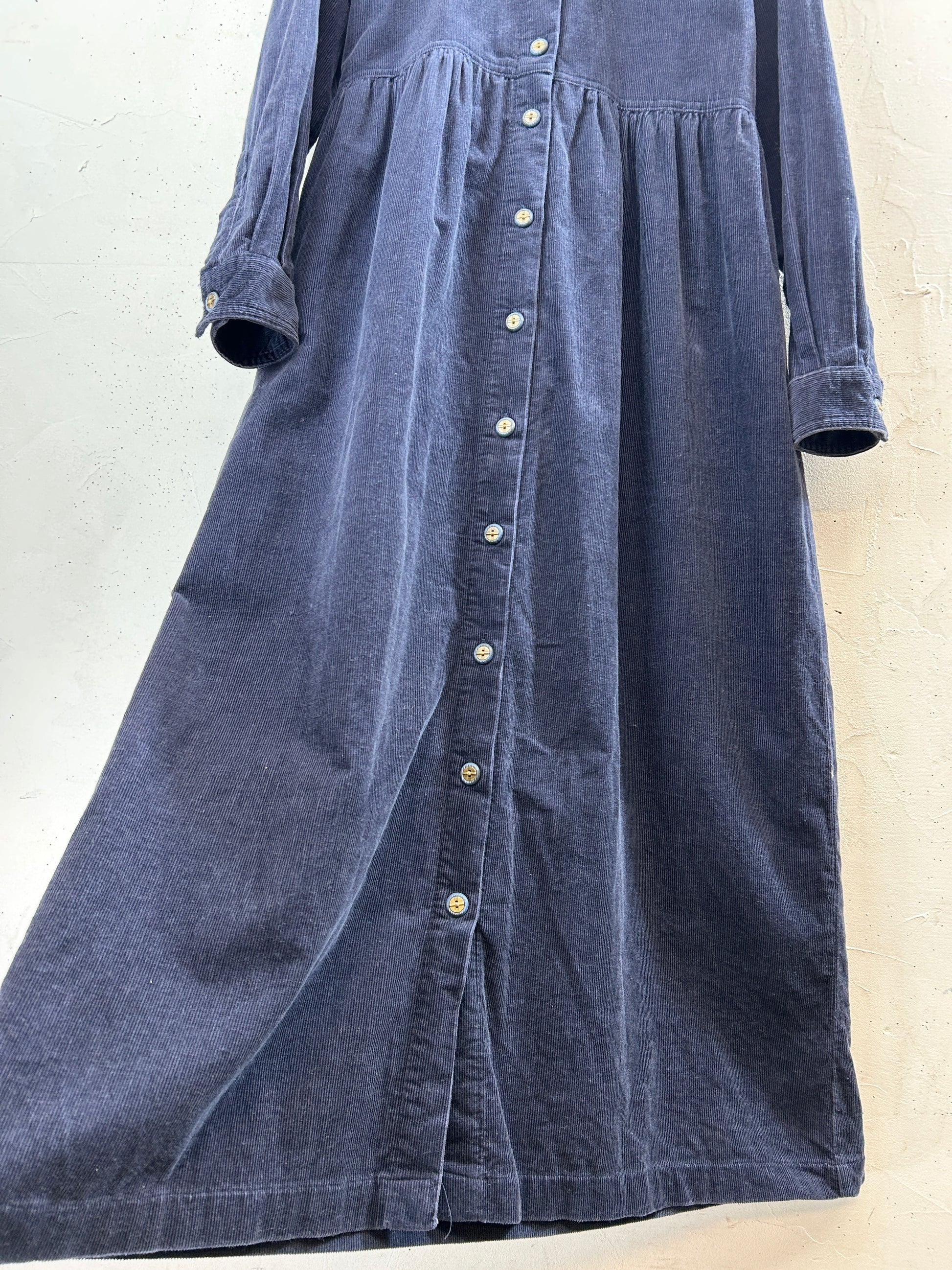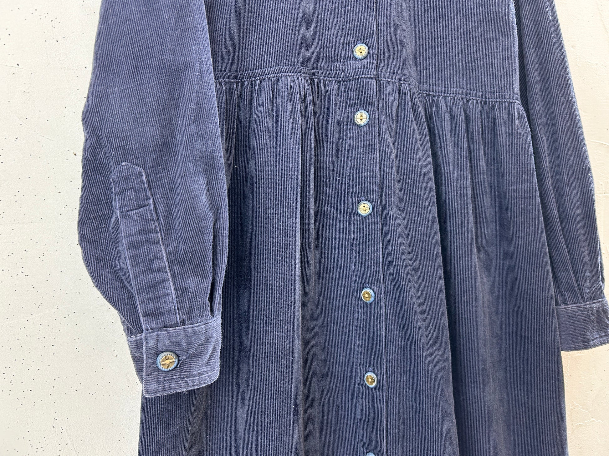 濃紺のコーデュロイドレス。細畝でカジュアルすぎない雰囲気でお楽しみいただけます。