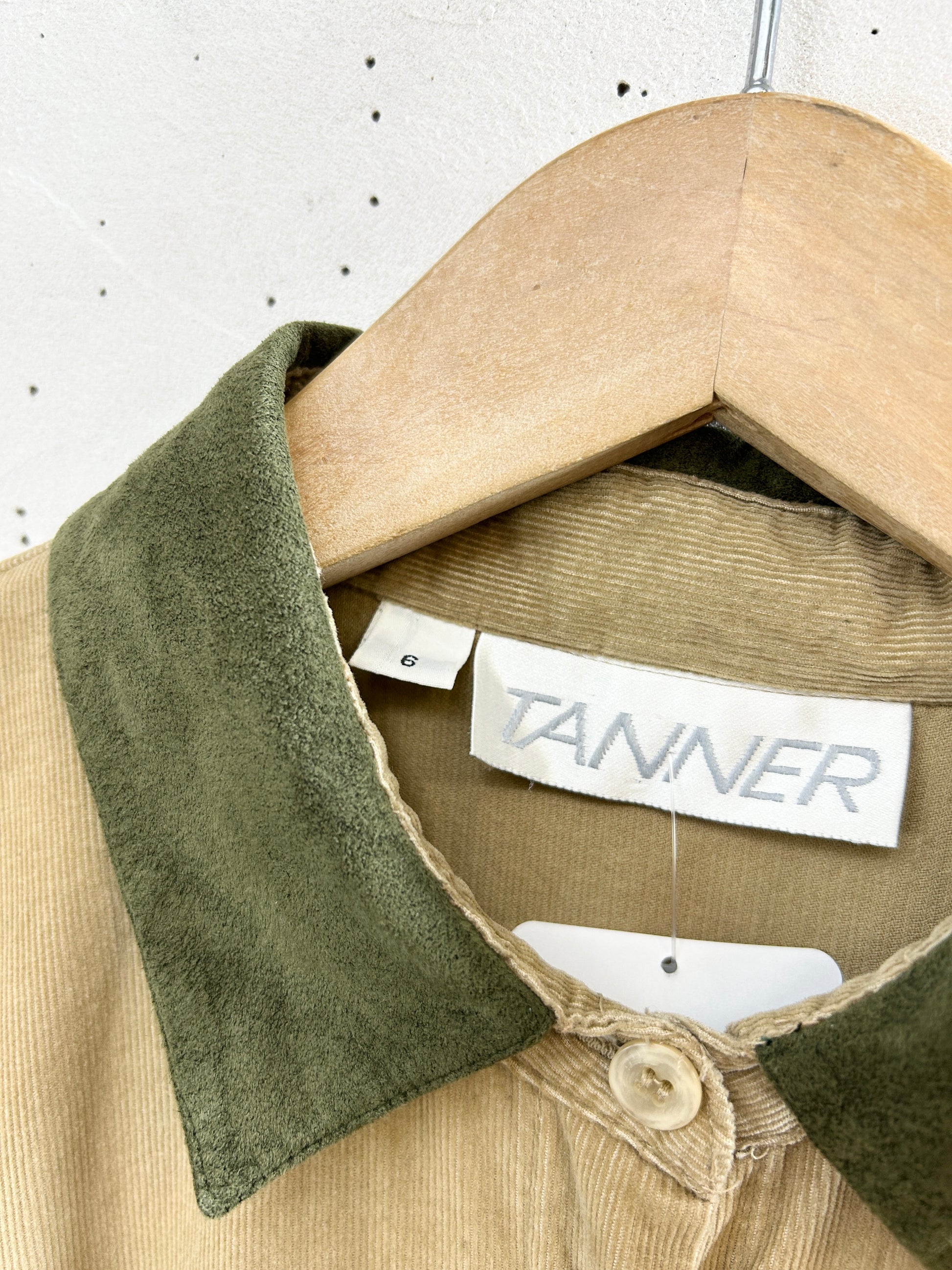 ライトブラウン、襟がカーキ色のナチュラルなトーンが可愛いアイテム。