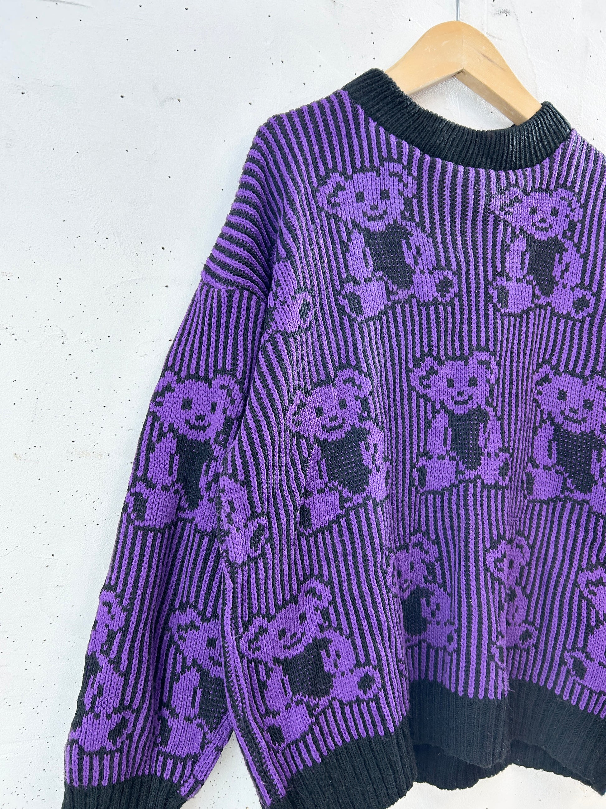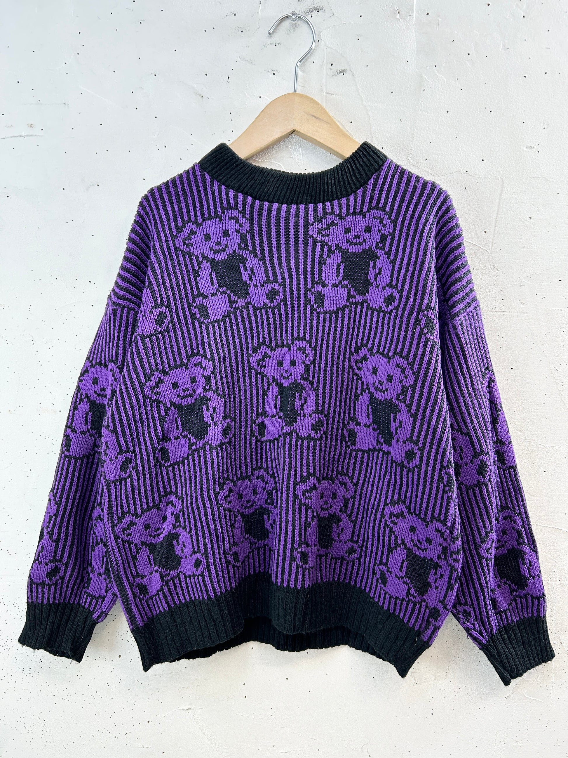 可愛いテディベア、ストライプの総柄デザインが可愛いらしい1着。