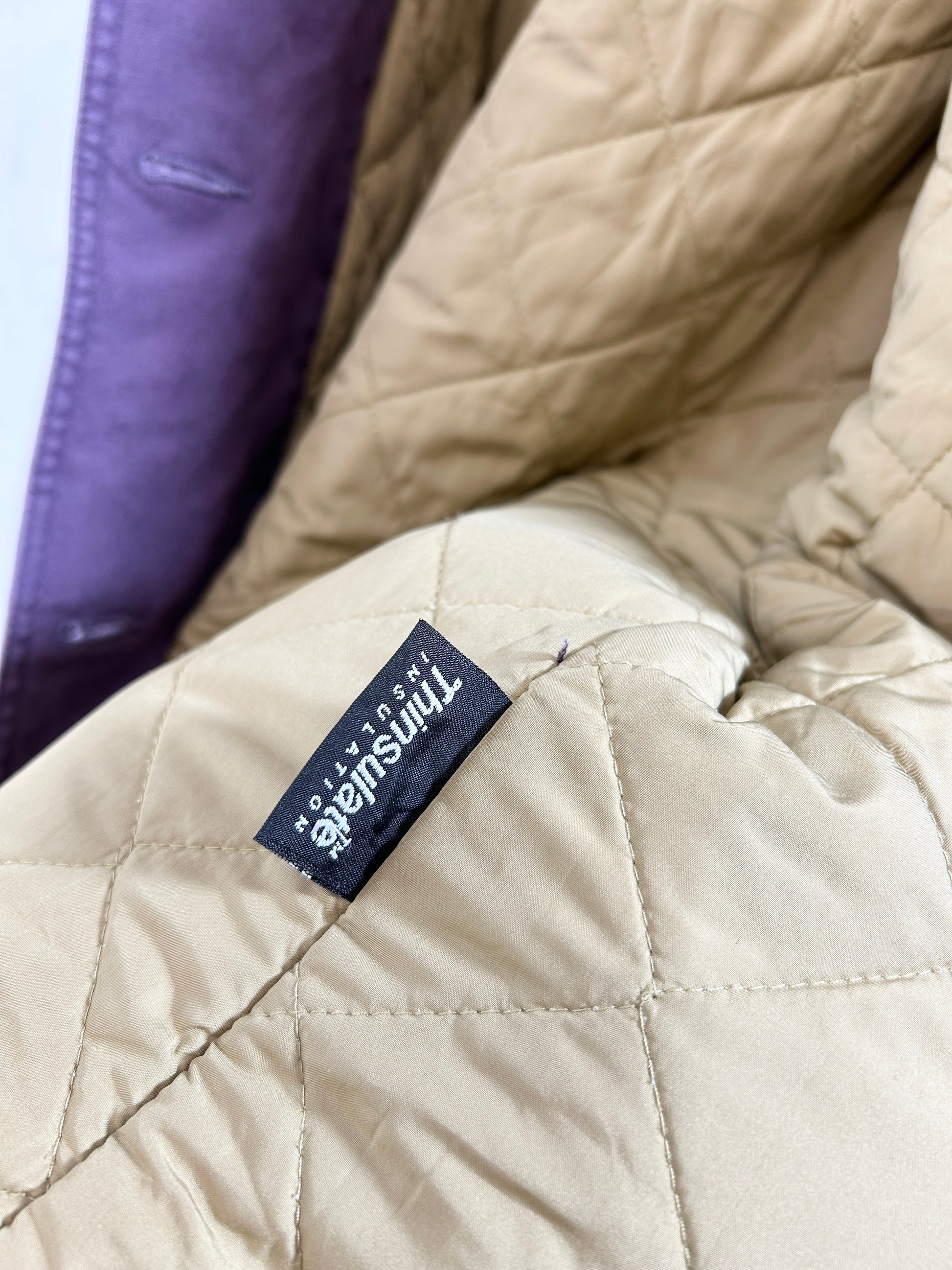 しっかりとしたダック生地、紫ボディに中綿の入る防寒面も抜かりないアイテム。