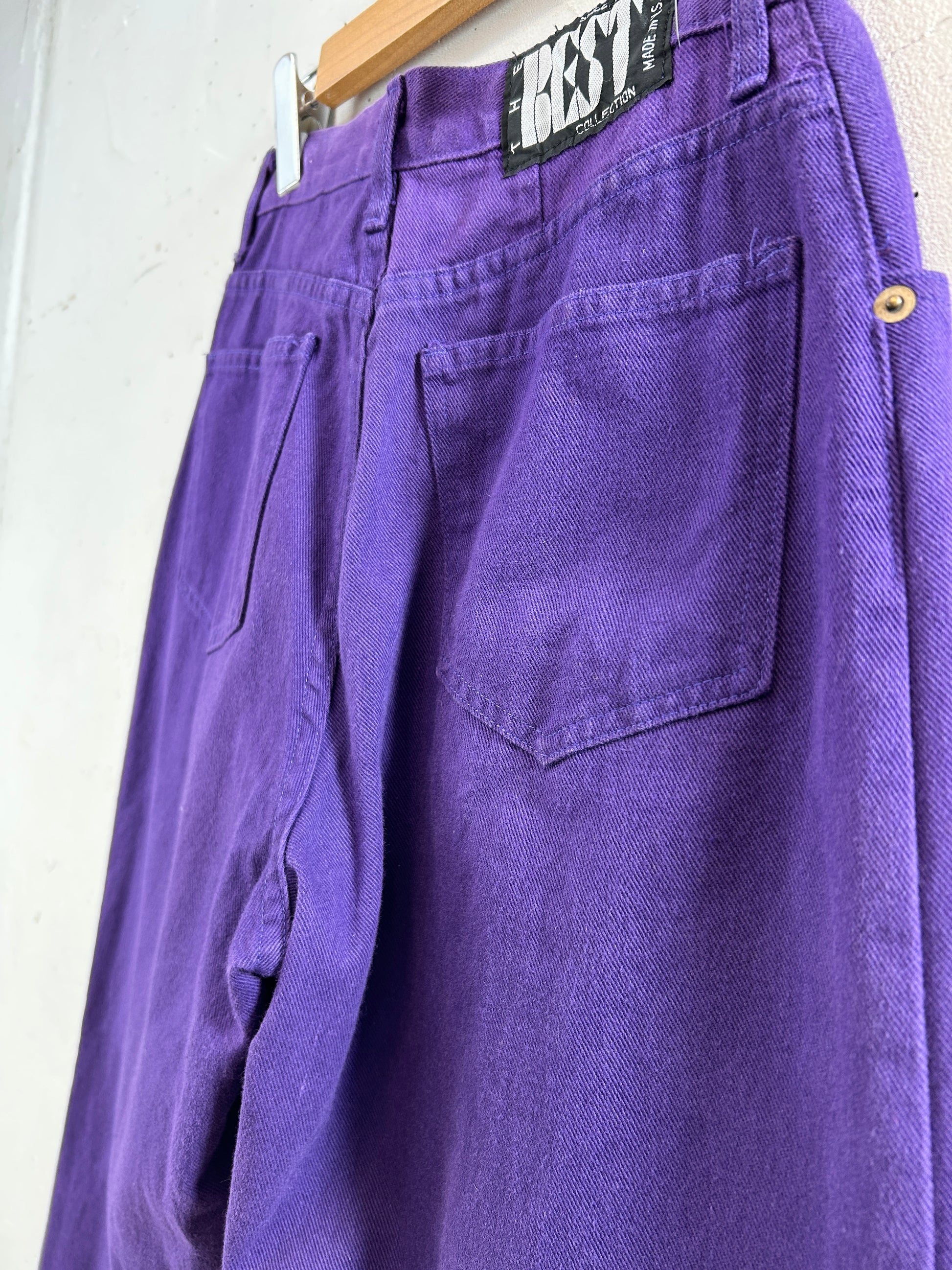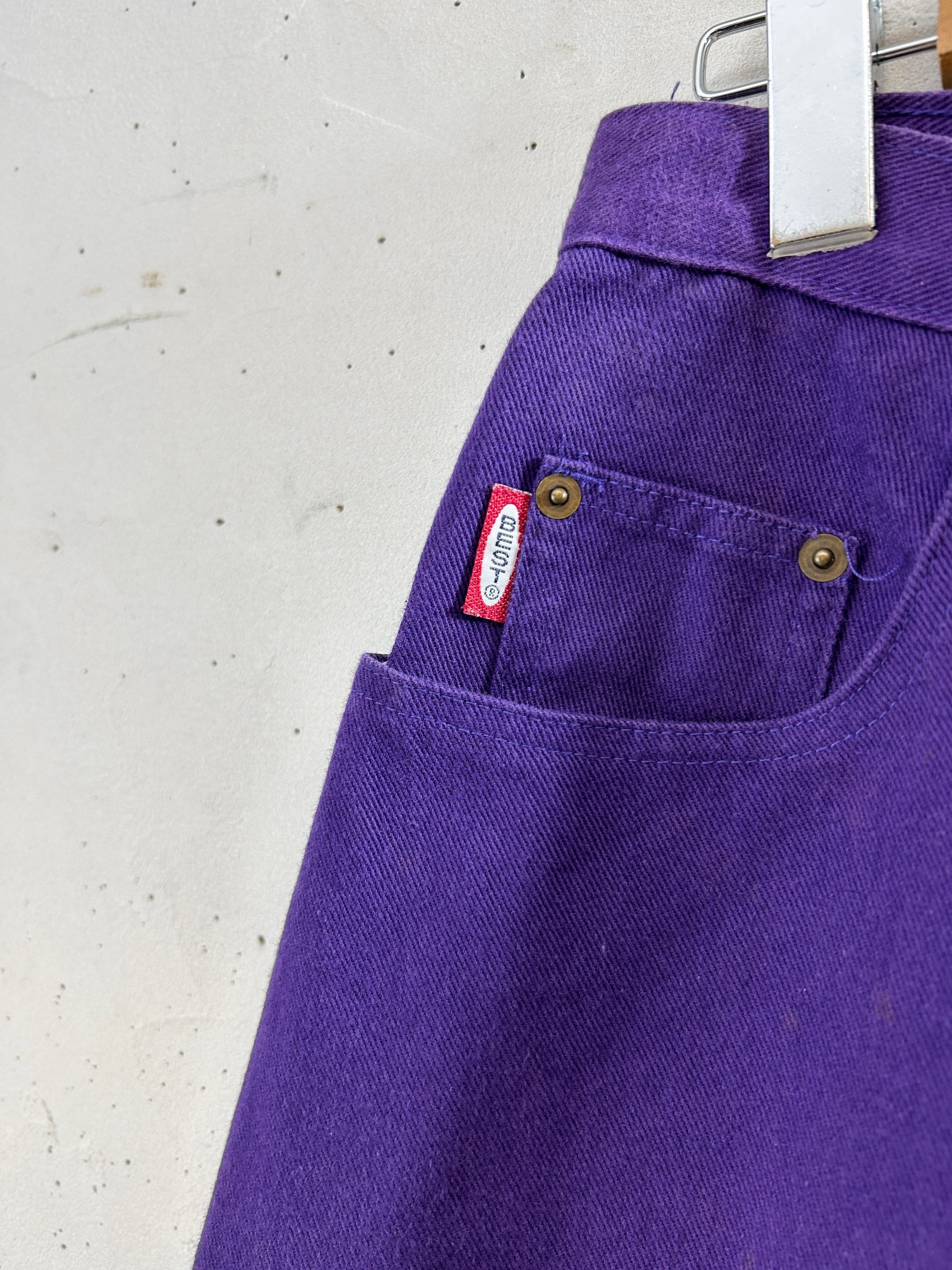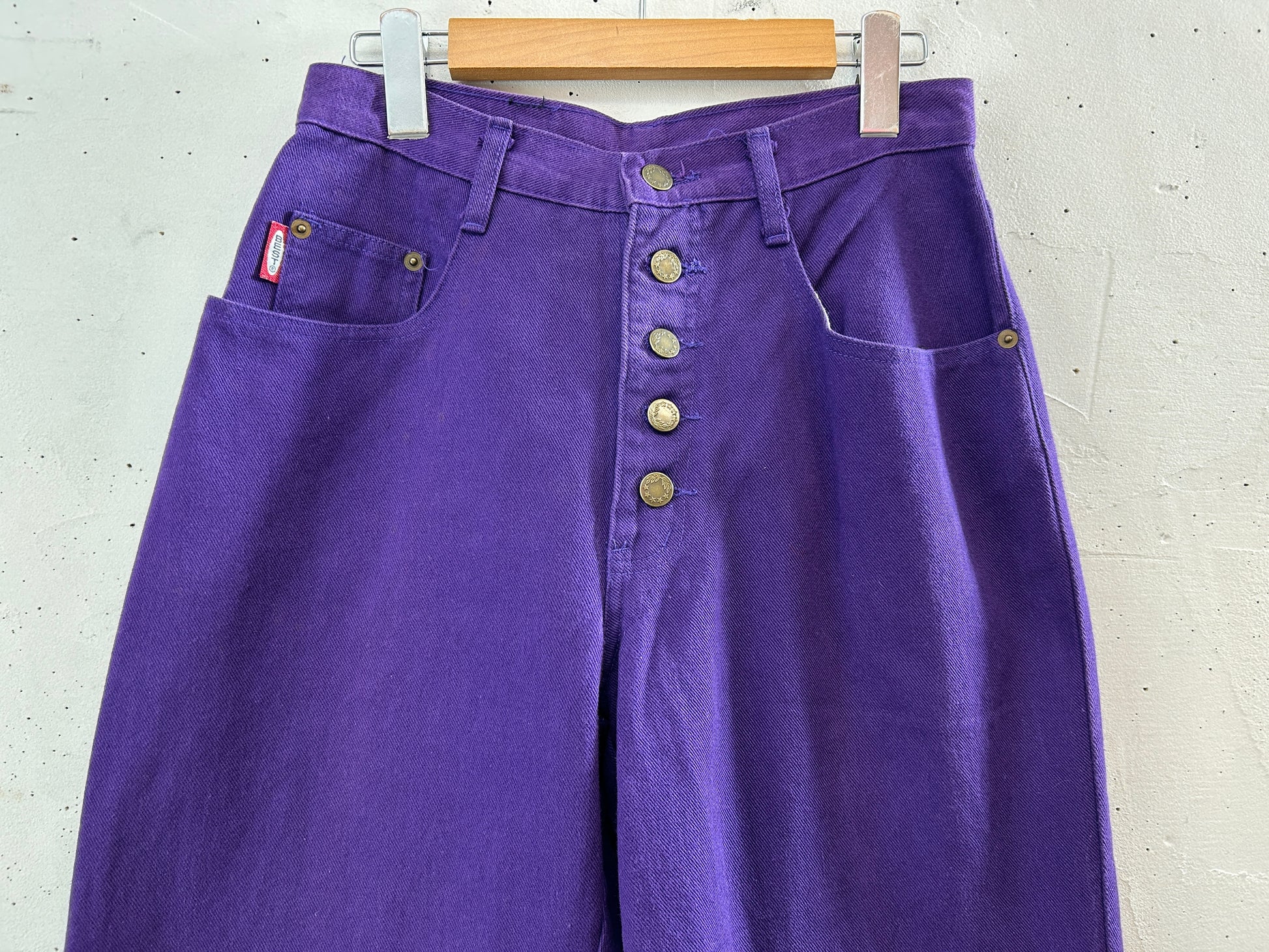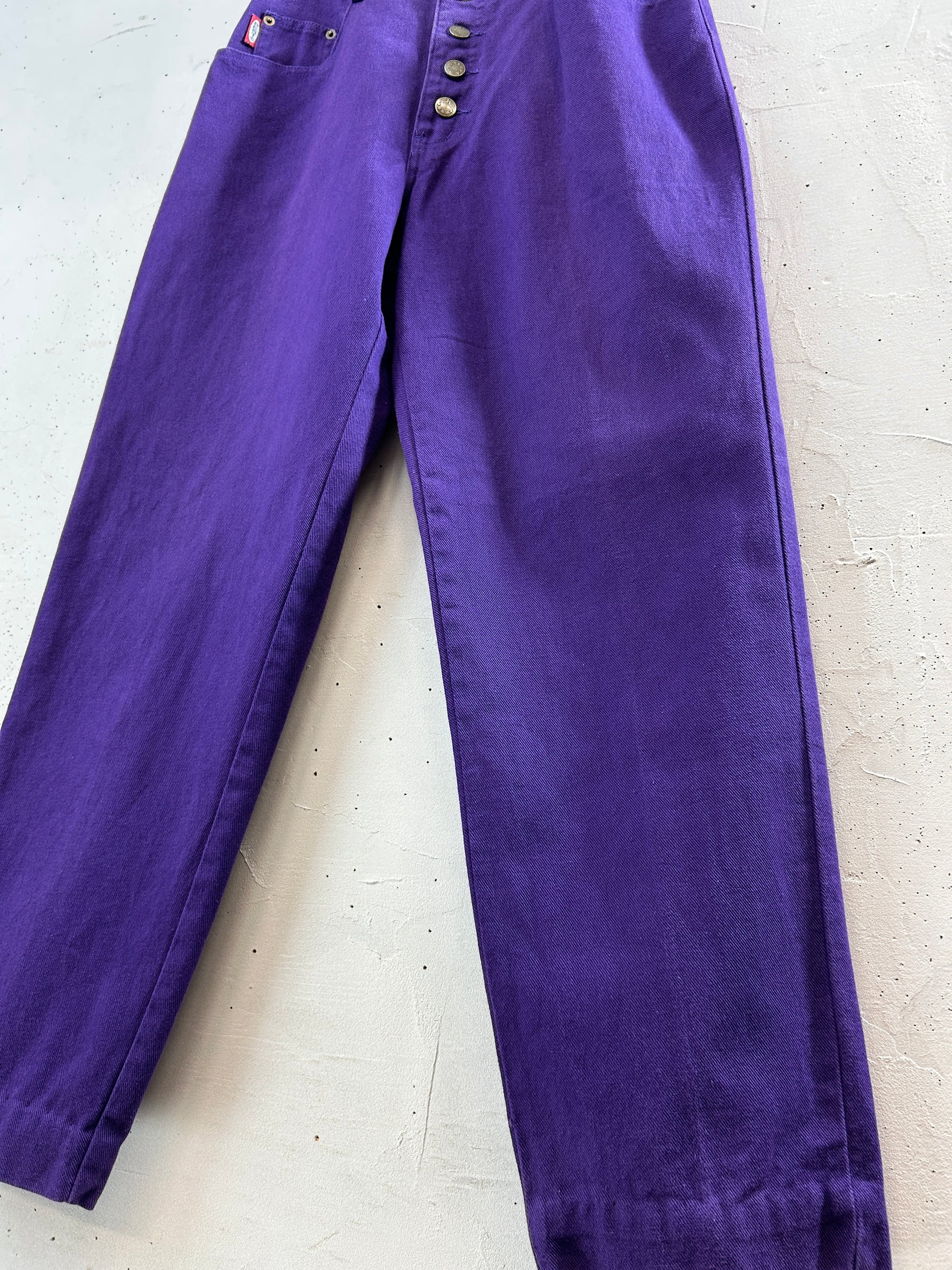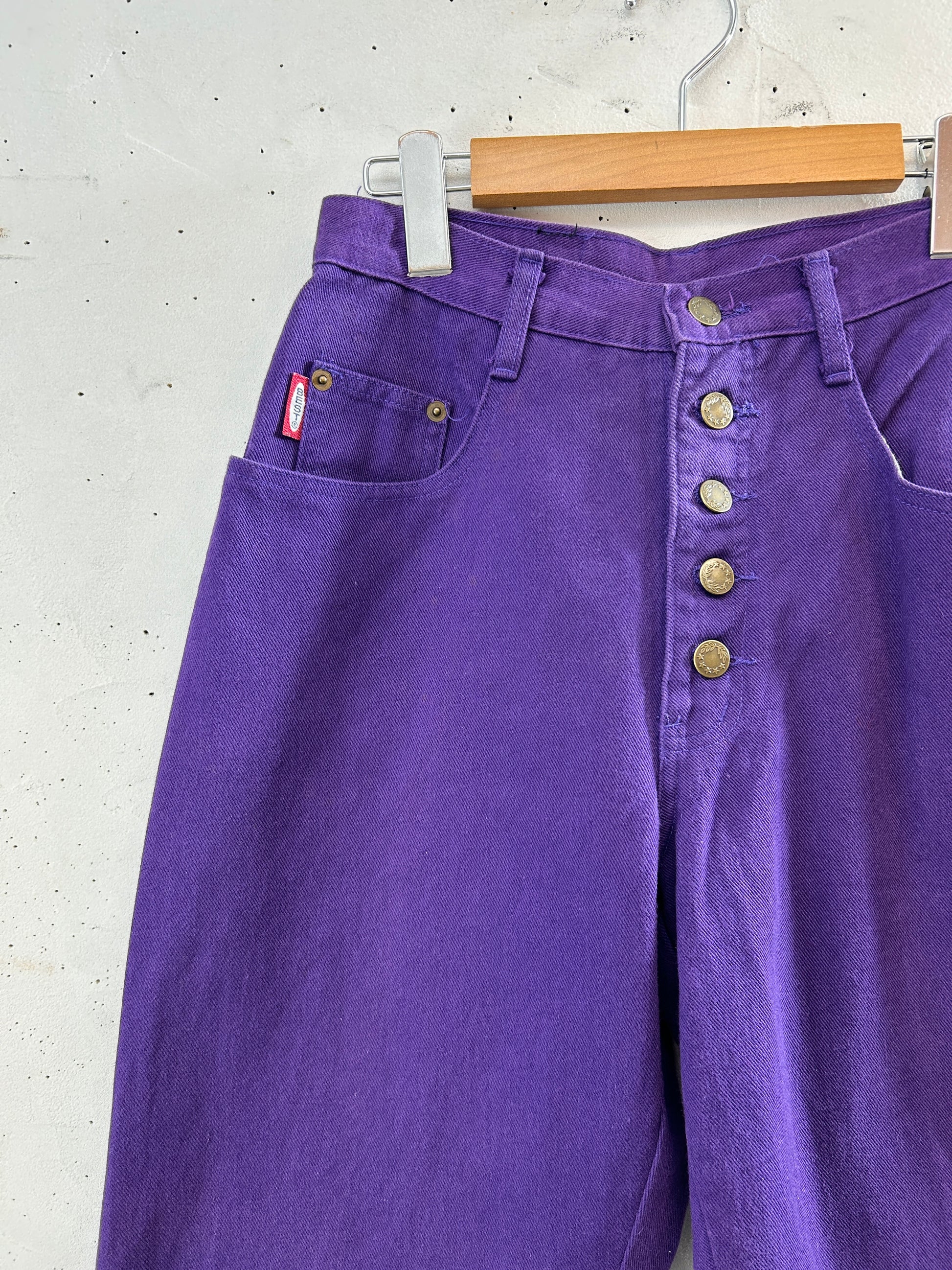 濃い紫ボディのデニムパンツ。