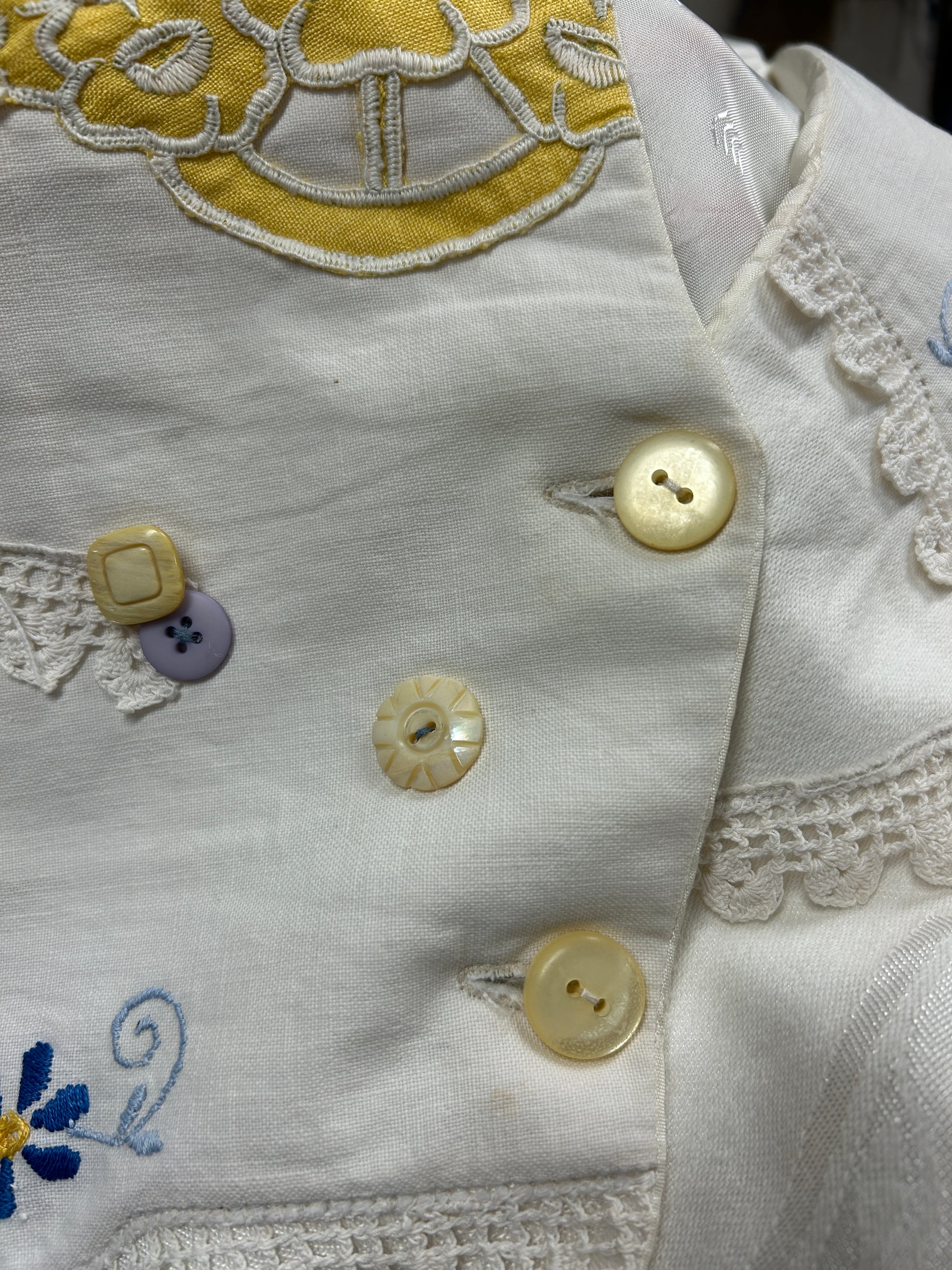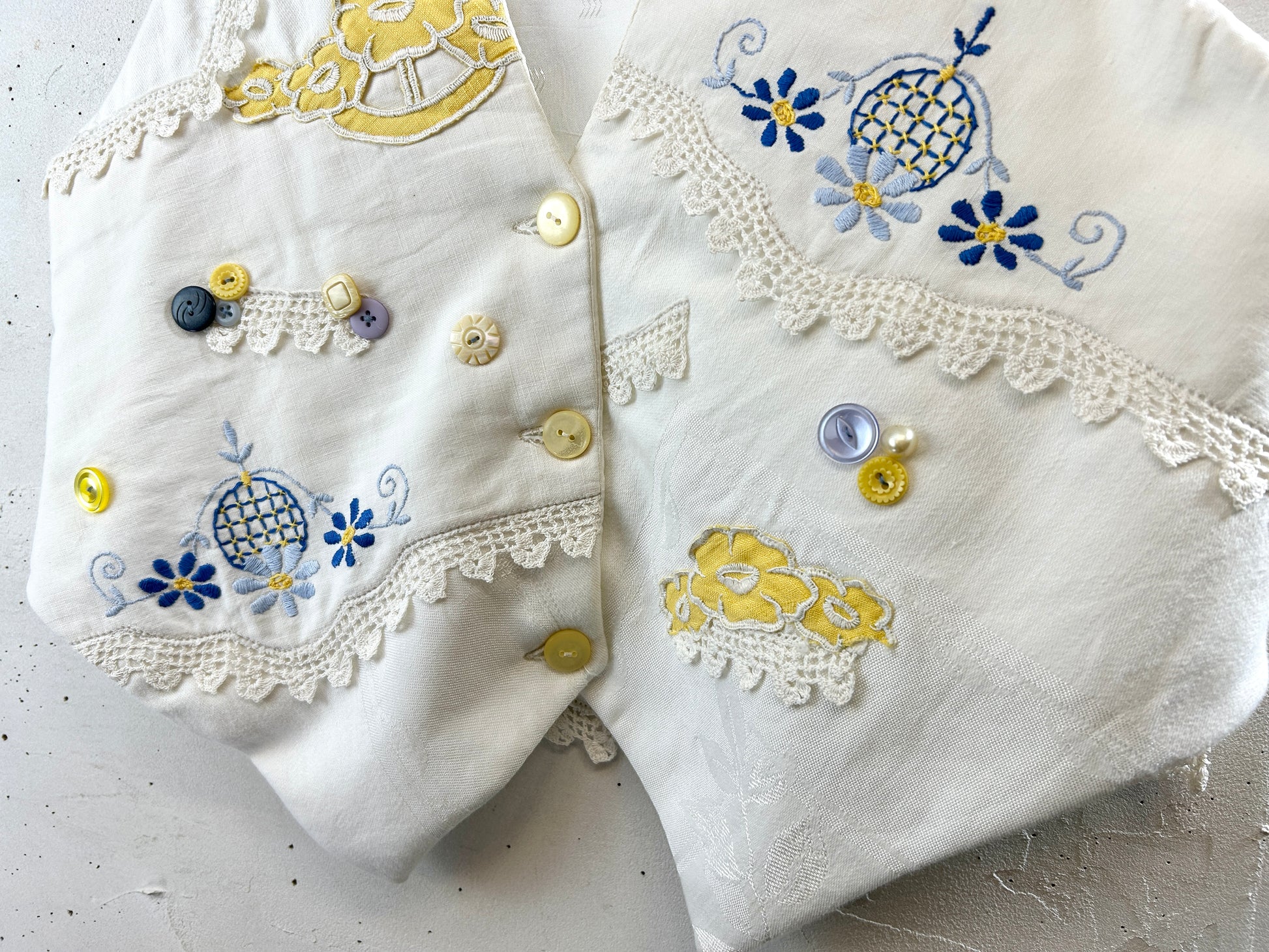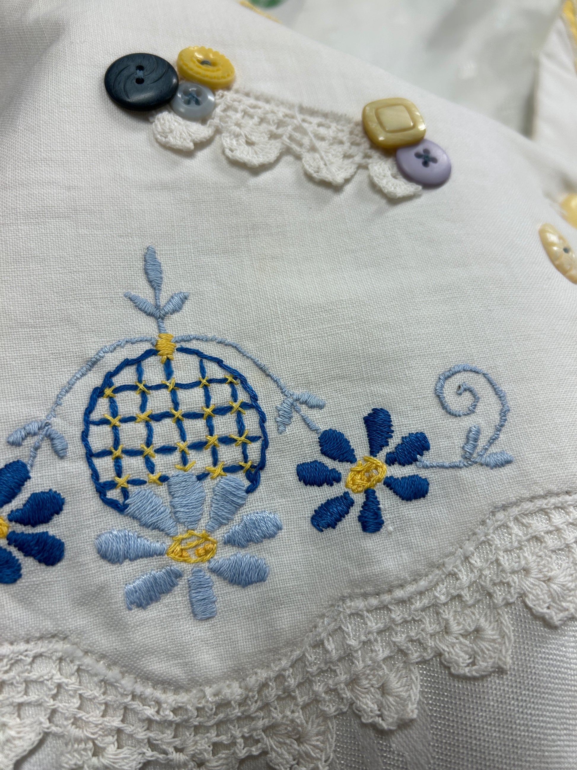 ホワイトボディに刺繍やレースのデザインがUSビンテージらしい魅力たっぷりの一着。キルティングのような作りでふわっと感も可愛いです。