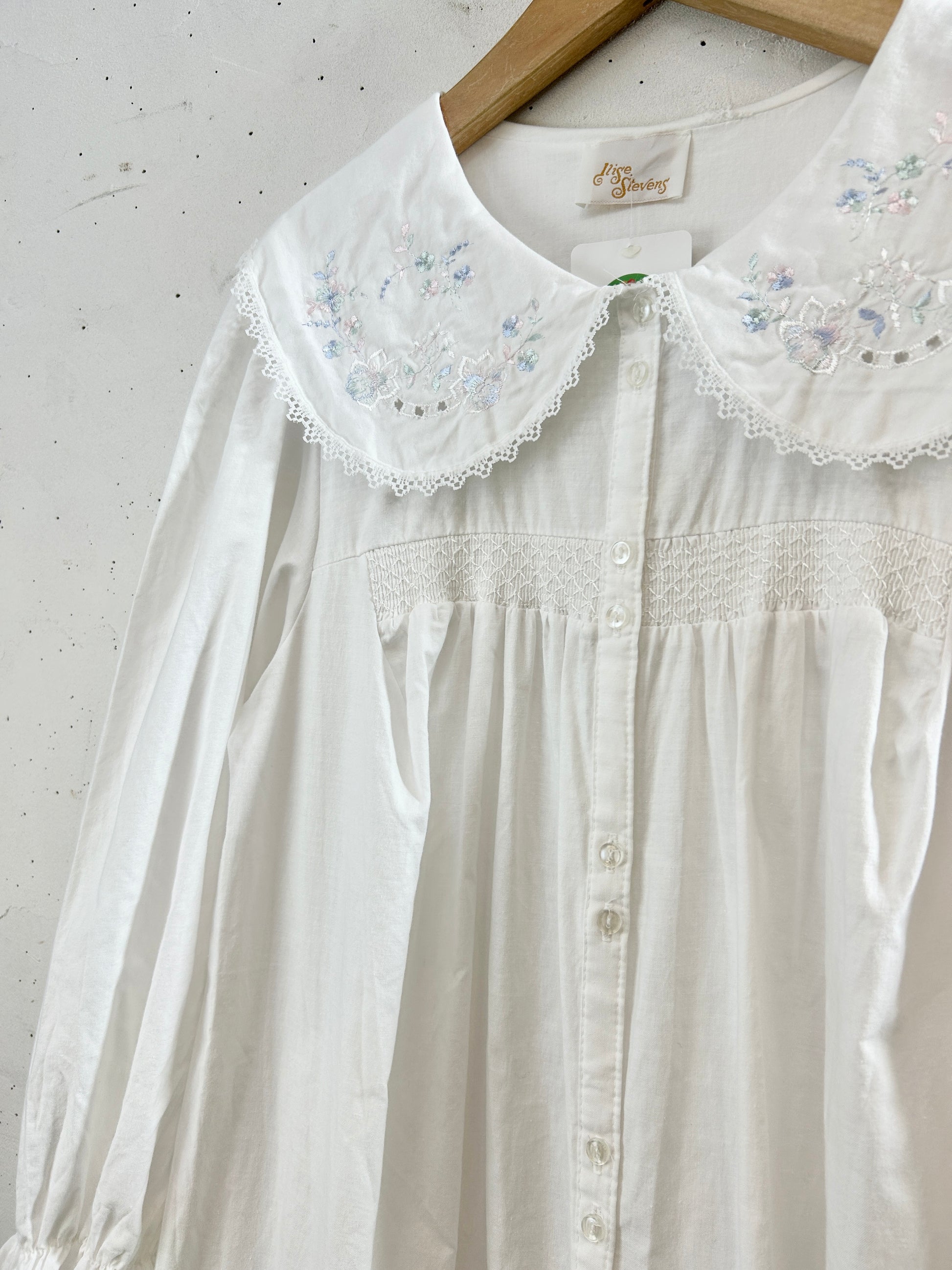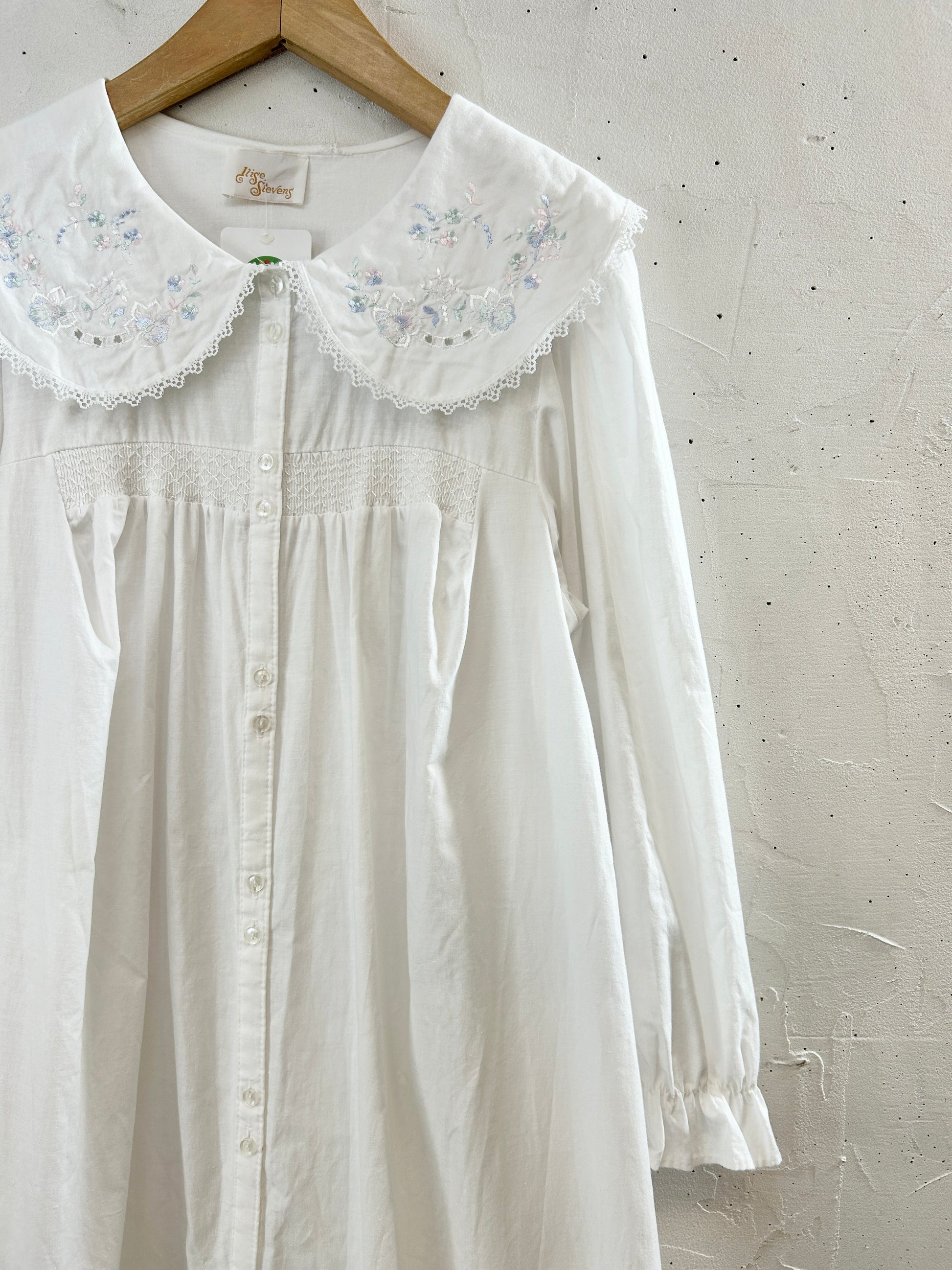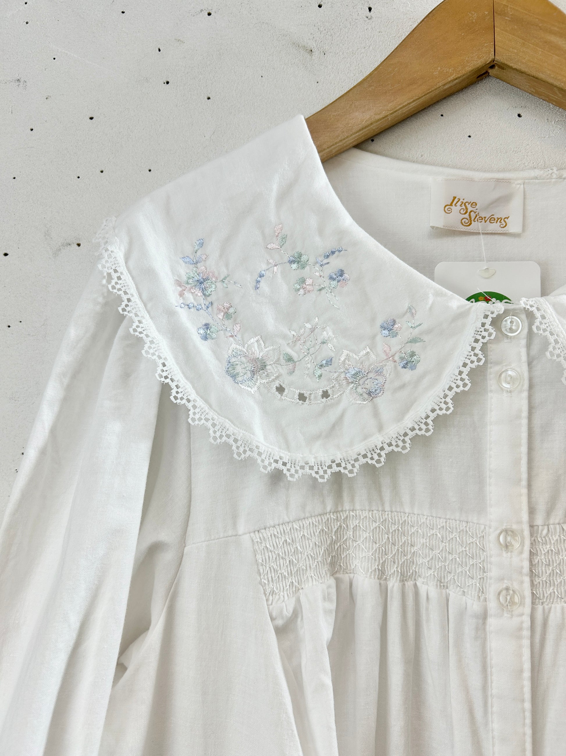 大きな丸襟にはパステルで可愛らしい刺繍が入り、全体のバランスも申し分のない1着。