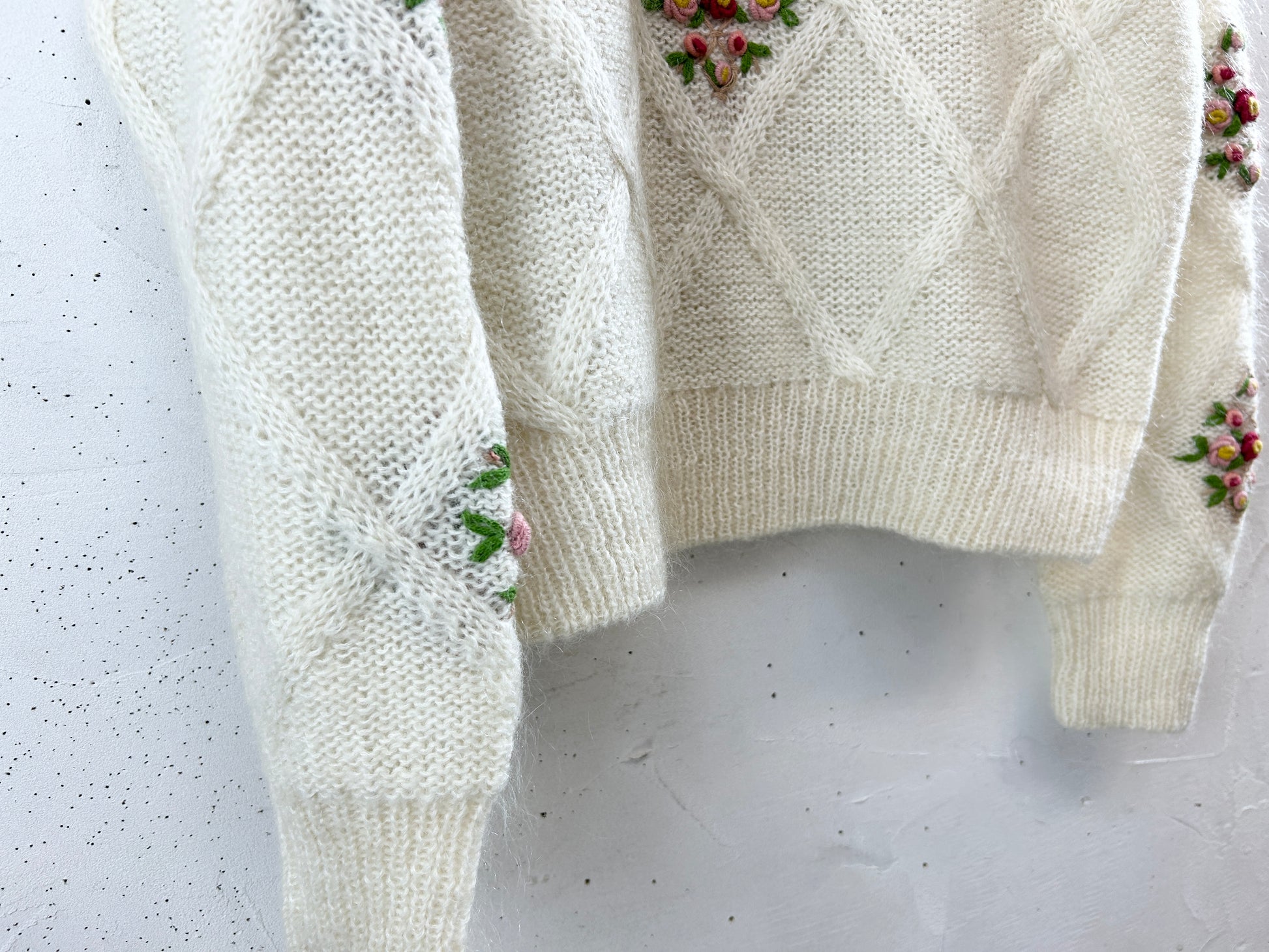 フワフワとしたホワイトボディに少し立体的なお花刺繍が非常に可愛いアイテム。