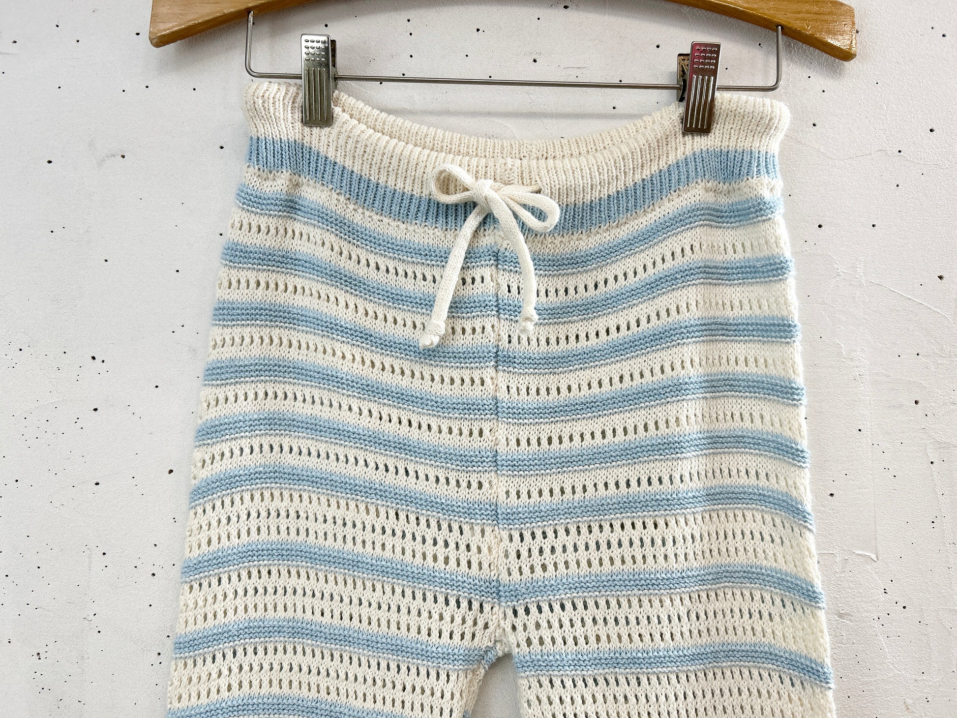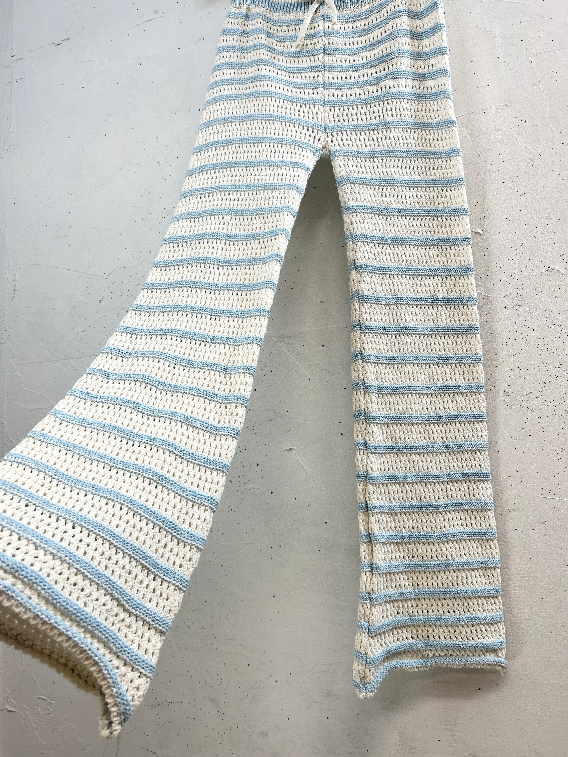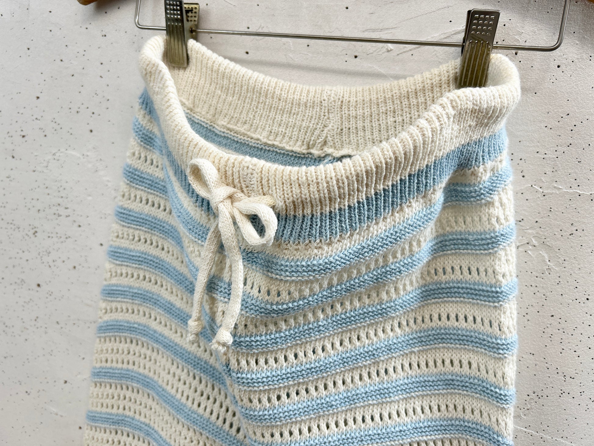 水色と白のボーダークロシェパンツ。