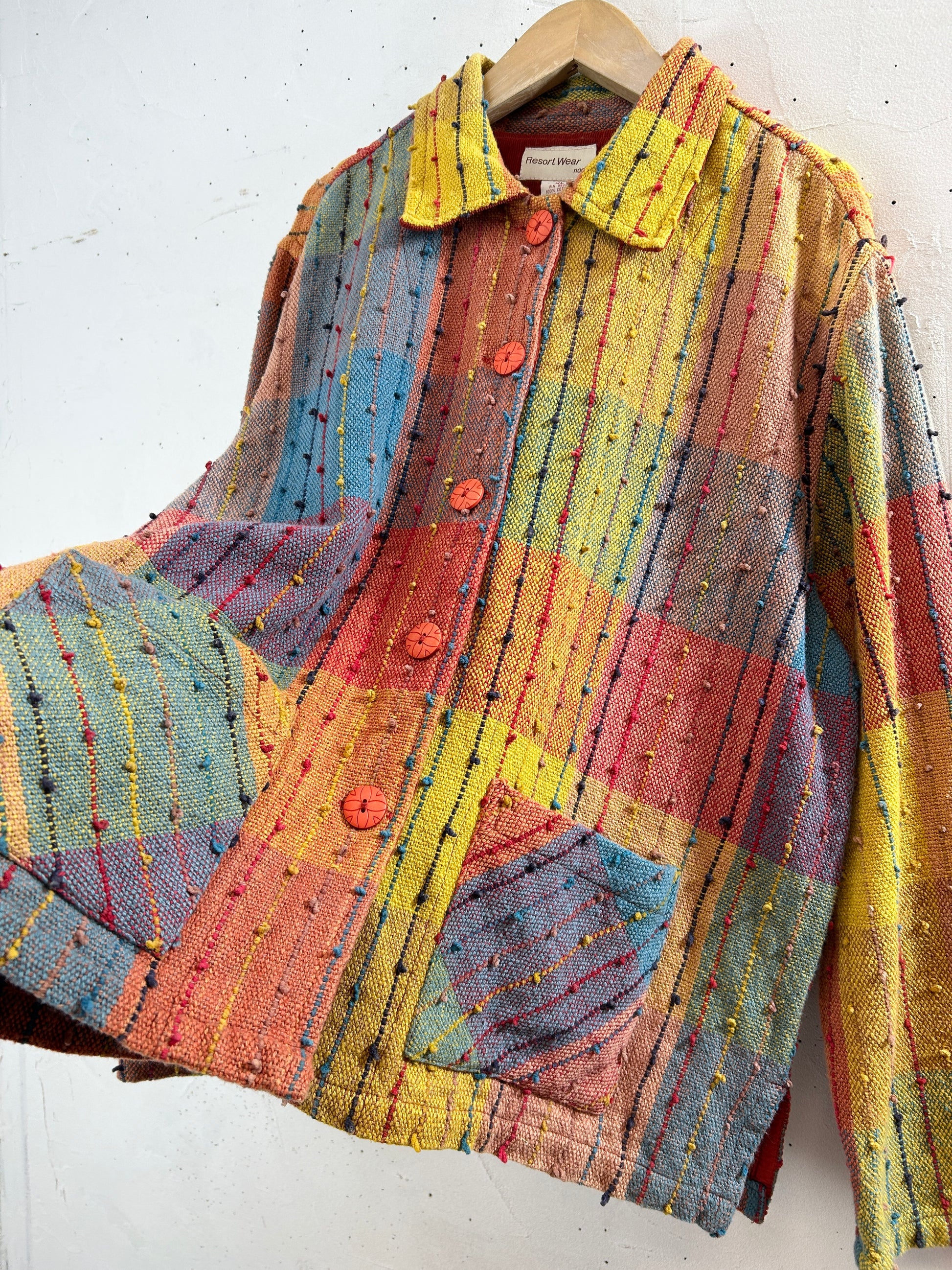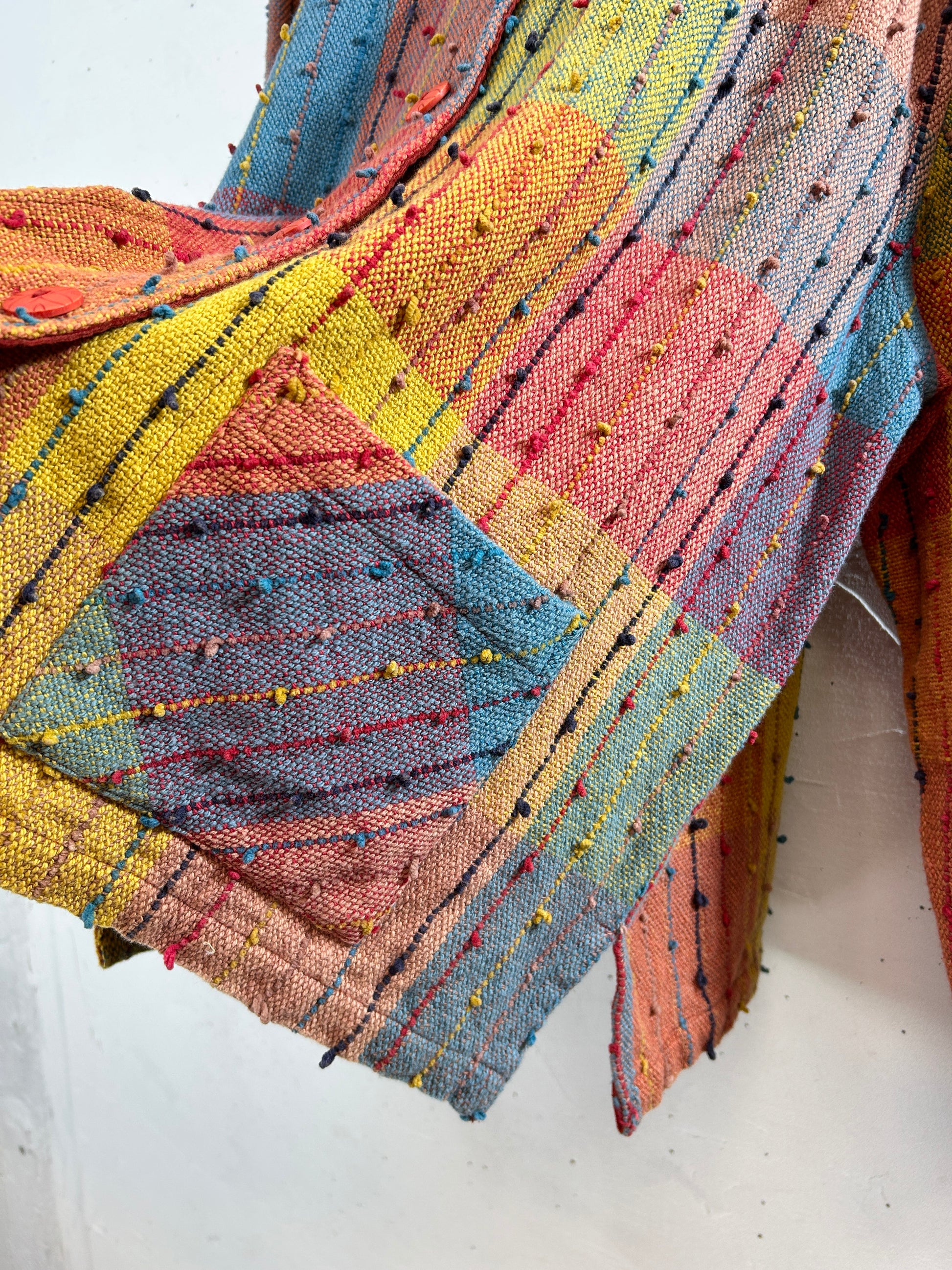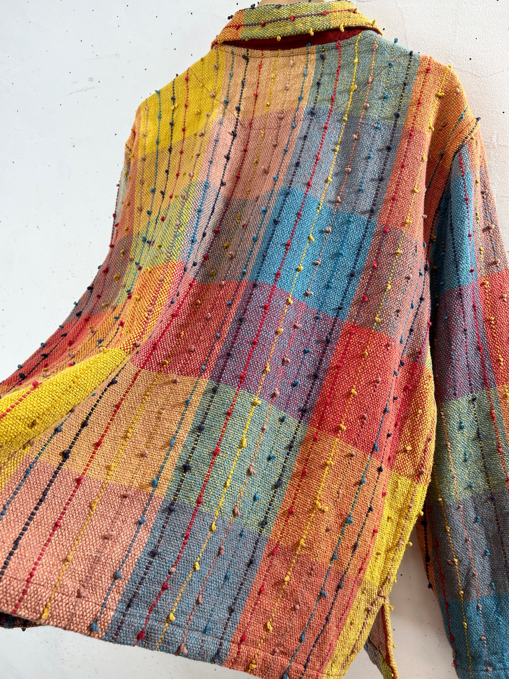 カラフルな織り生地、ポツポツとしたノットデザインがビンテージらしいユニークな一着。