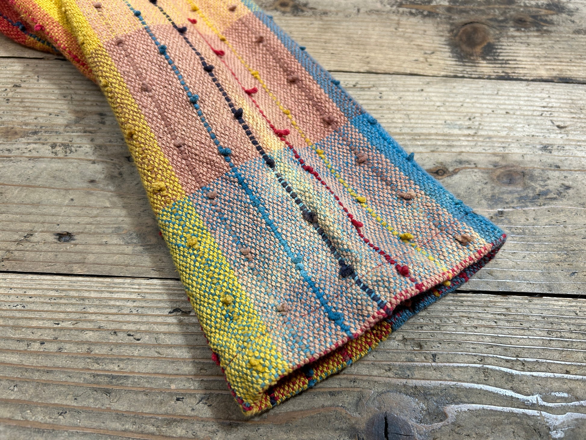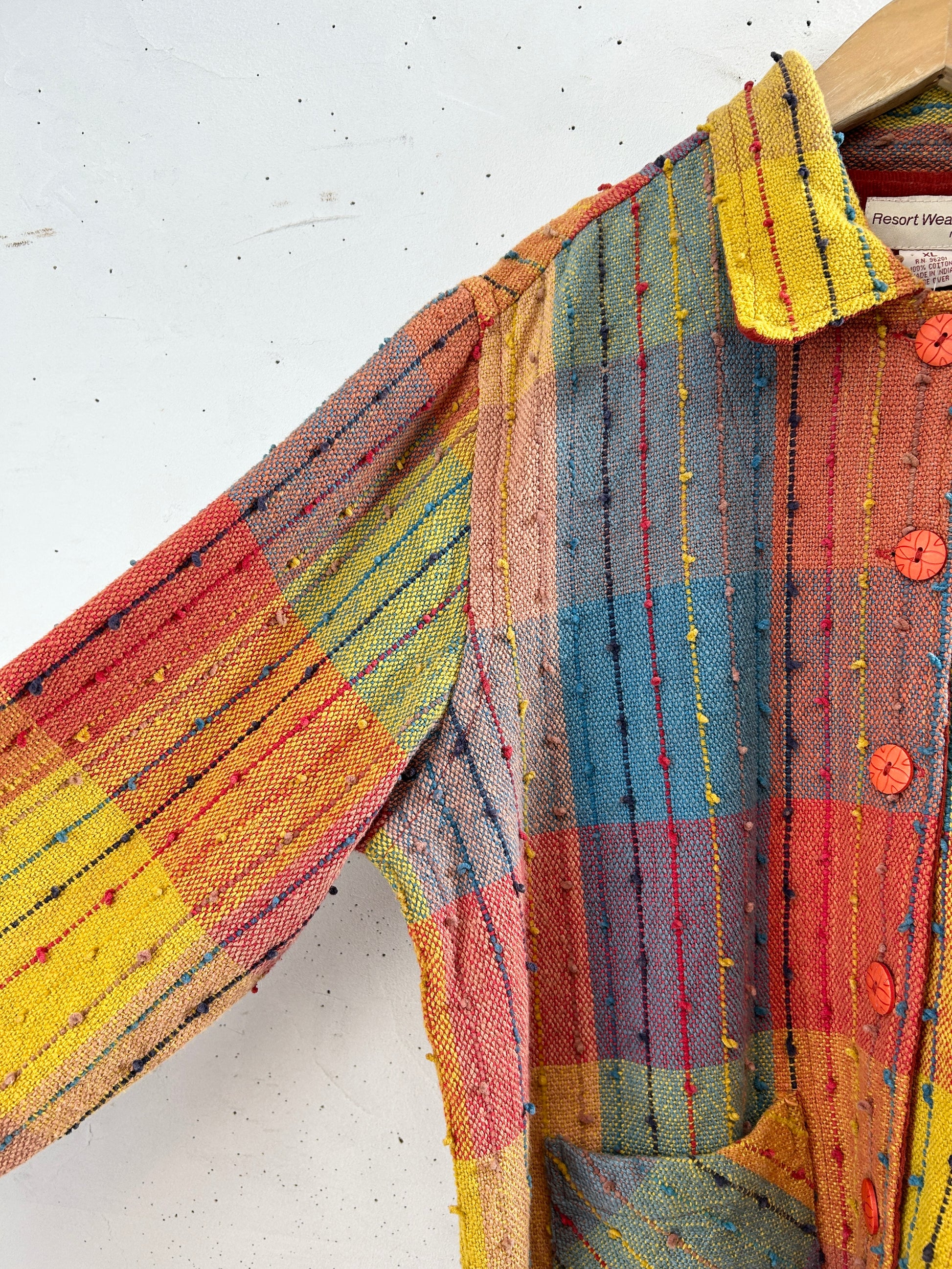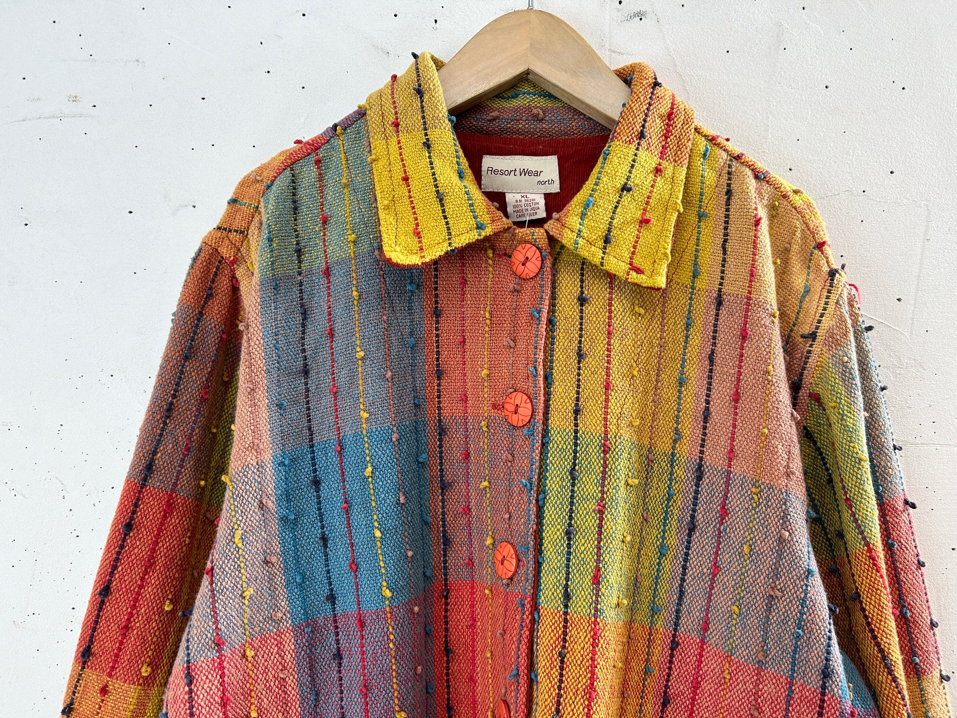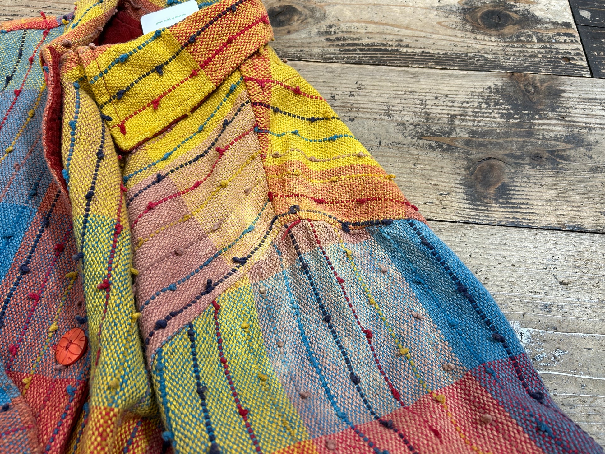 カラフルな織り生地、ポツポツとしたノットデザインがビンテージらしいユニークな一着。