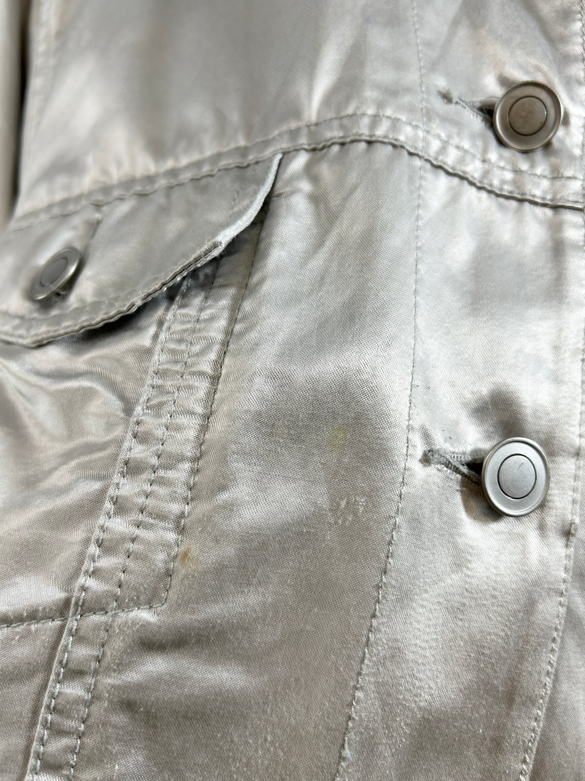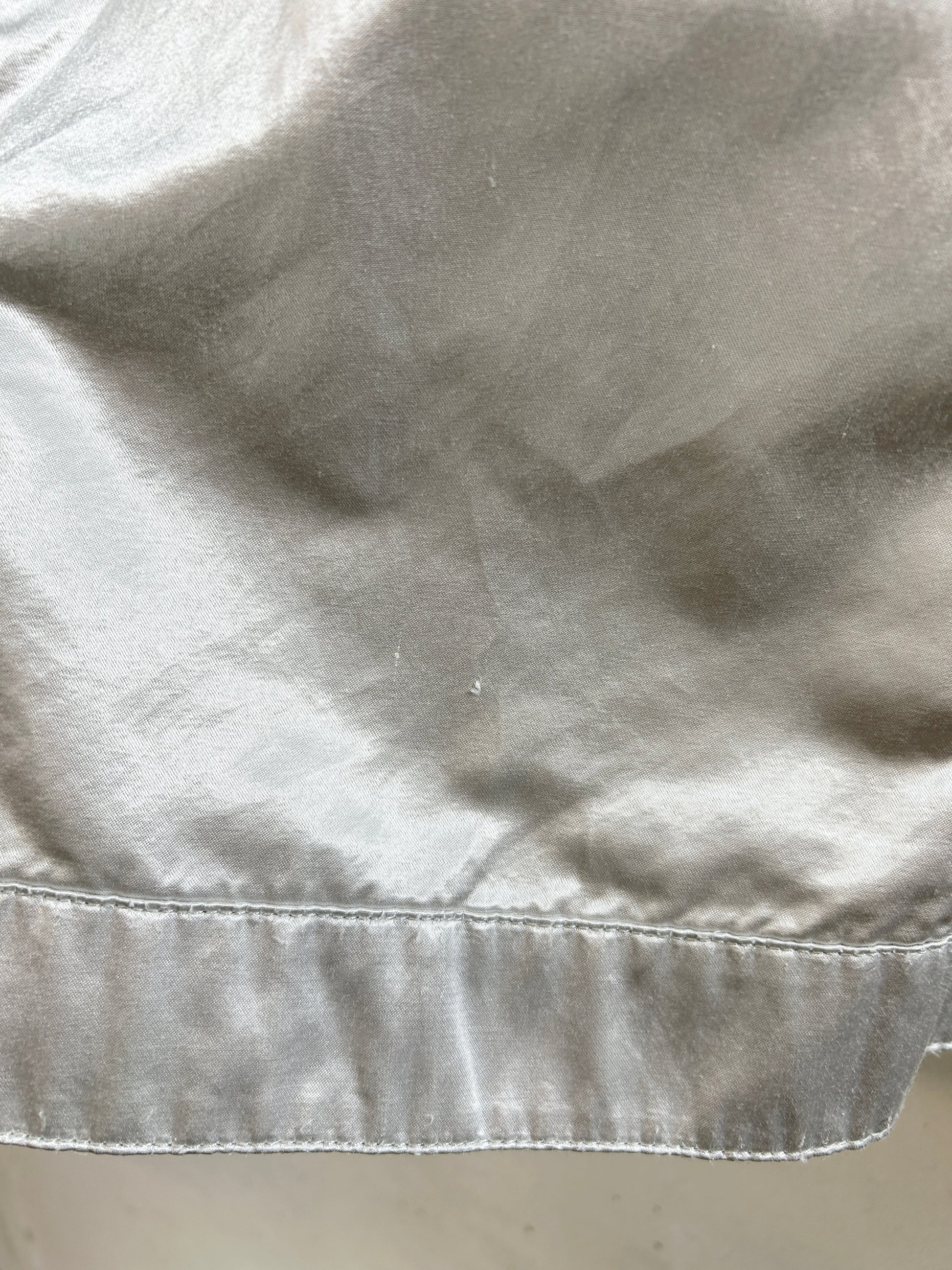 コンディション:襟に汚れ、フロントと両袖に薄らシミ、生地の若干の毛羽立ちのある箇所がございますがどれも大きく気にせず着用いただけると思います。その他特筆するほど目立つダメージもなく、ビンテージにご理解頂いている方でしたら気にせずご着用頂ける程度かと思われます。