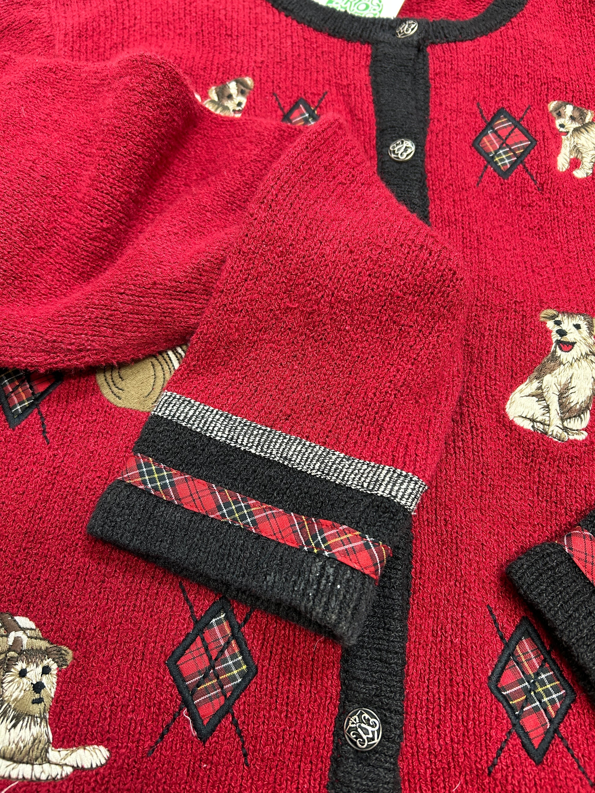 赤ボディに犬の刺繍が可愛らしいアイテム。