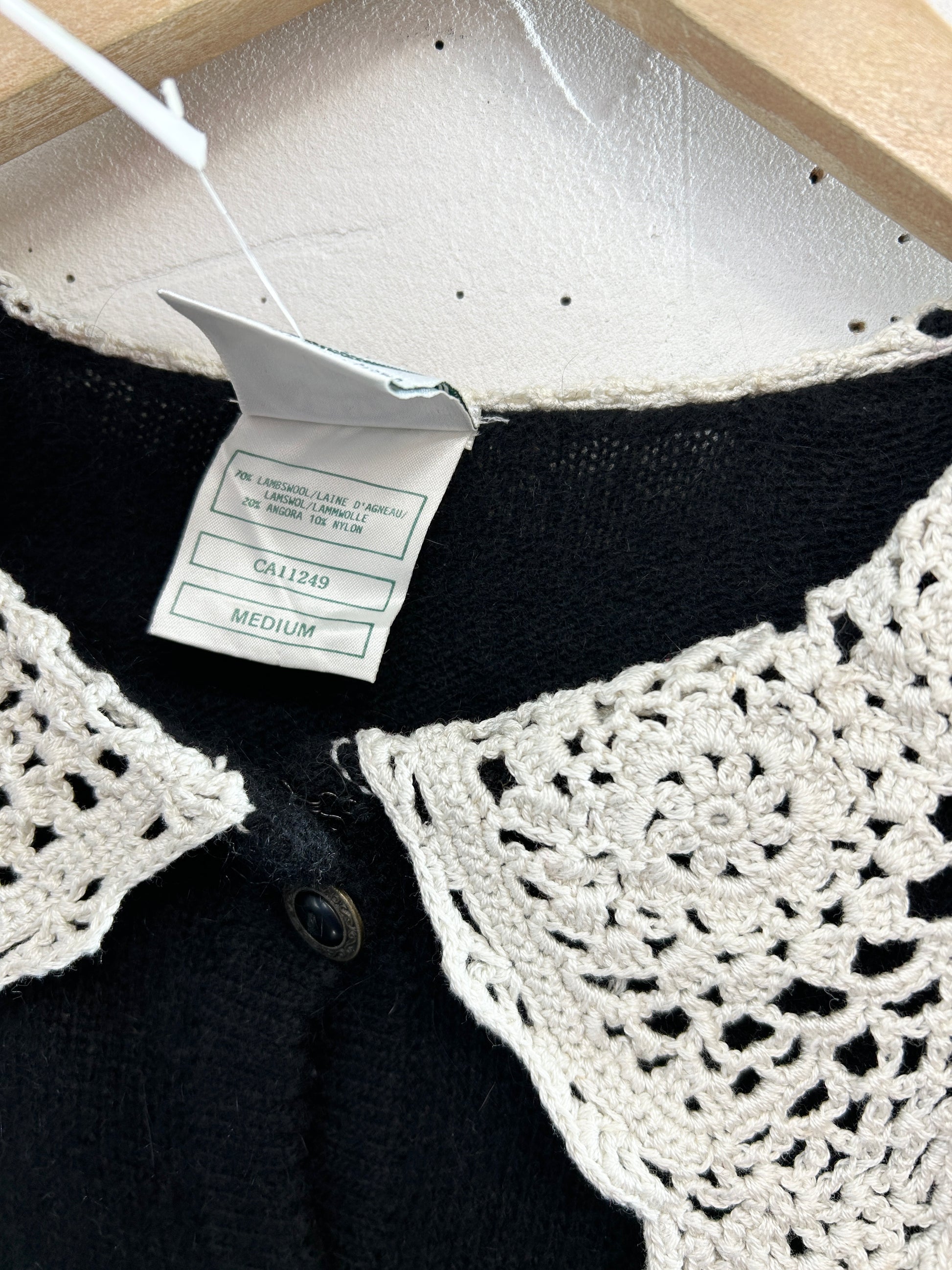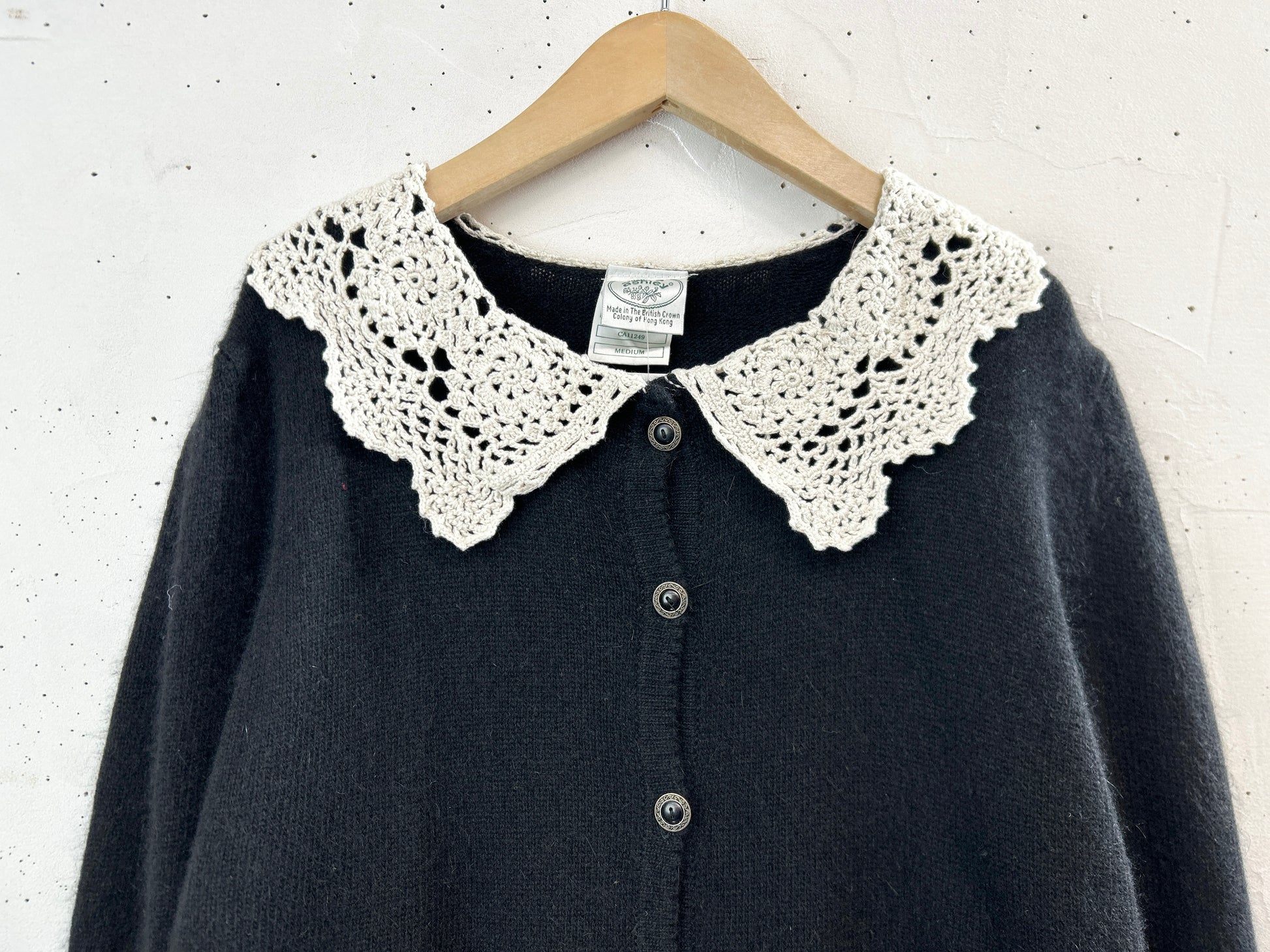 こちらのニットは、黒ボディにカギアミレースが可愛らしくクラシカルなアイテム。