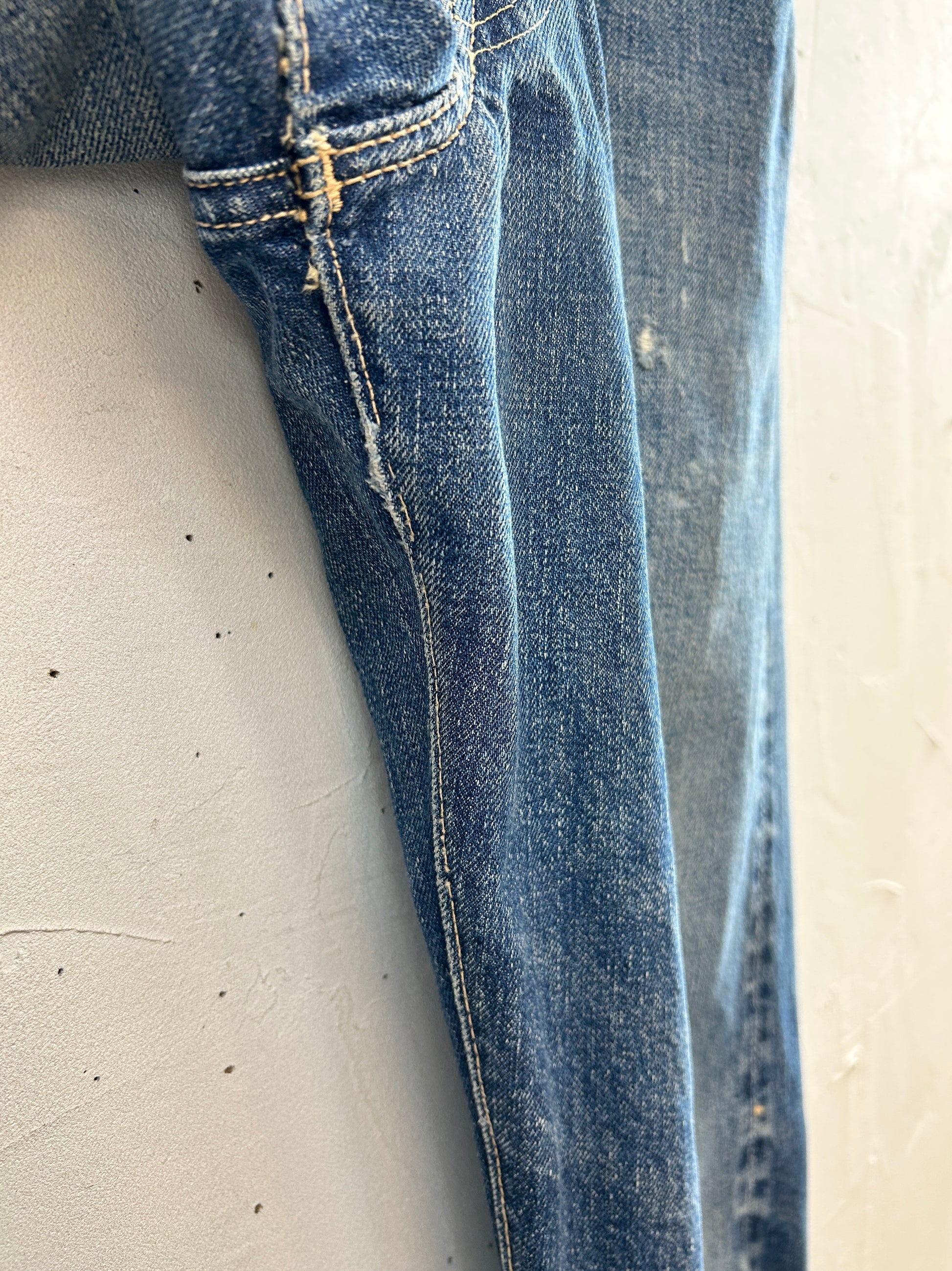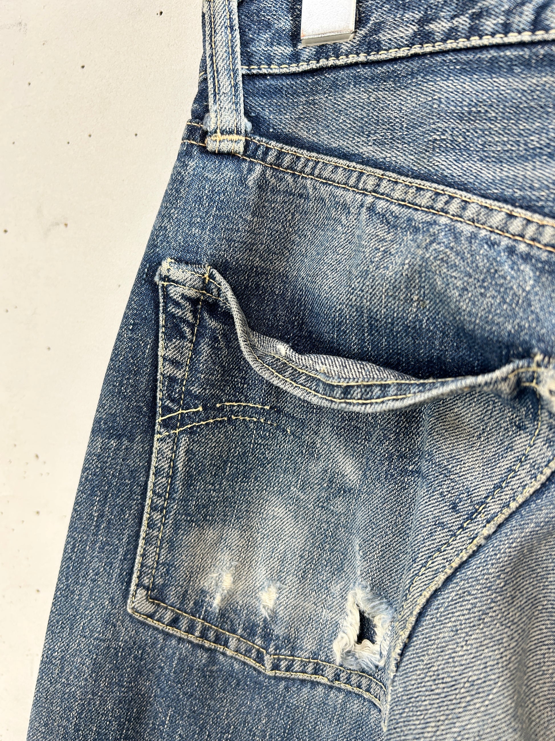 コンディション:リペア跡やしみや傷等ございますが、どれもビンテージデニムの味としてお楽しみいただけます。その他特筆するほど目立つダメージもなく、ビンテージにご理解頂いている方でしたら気にせずご着用頂けます。
