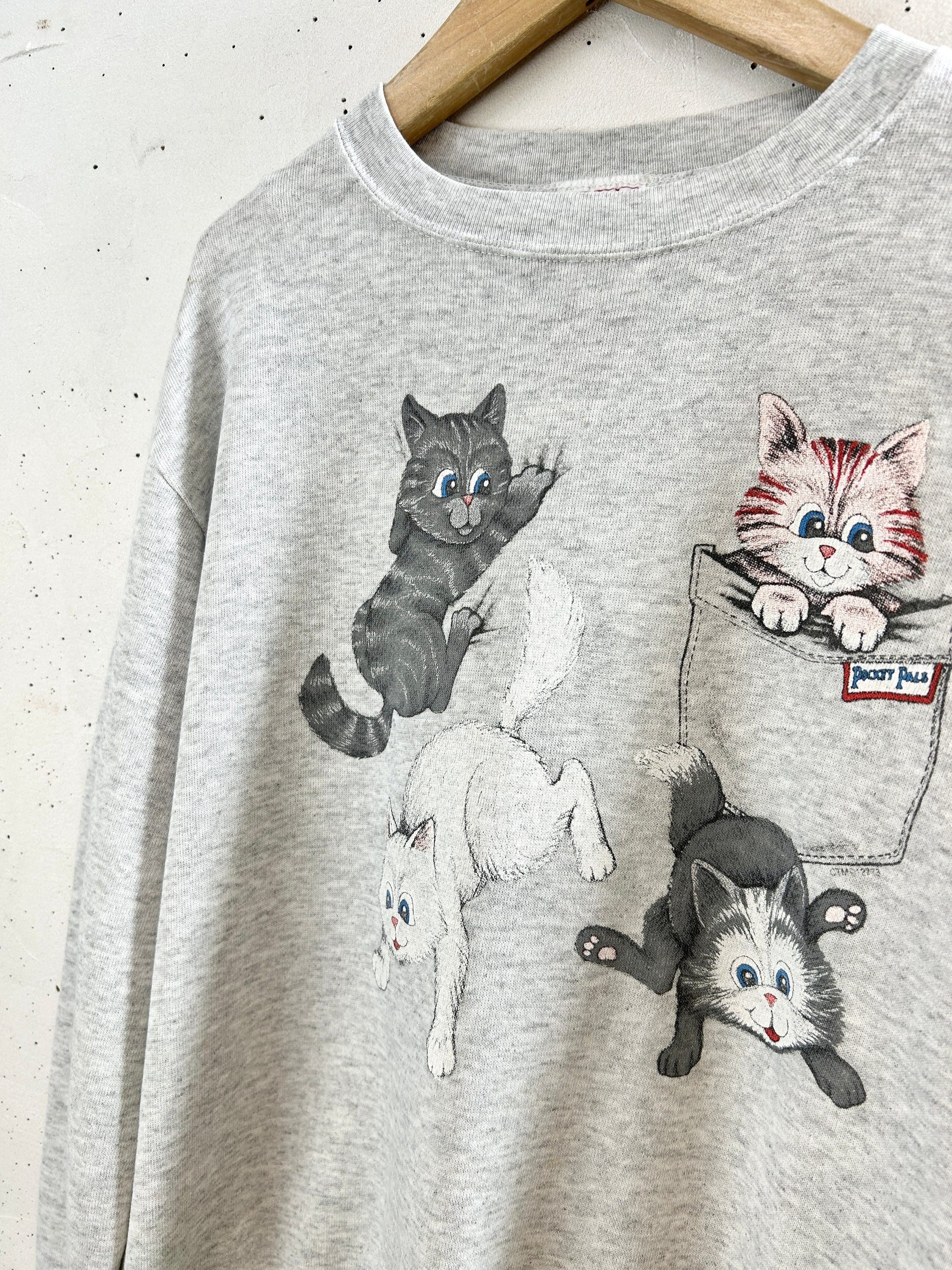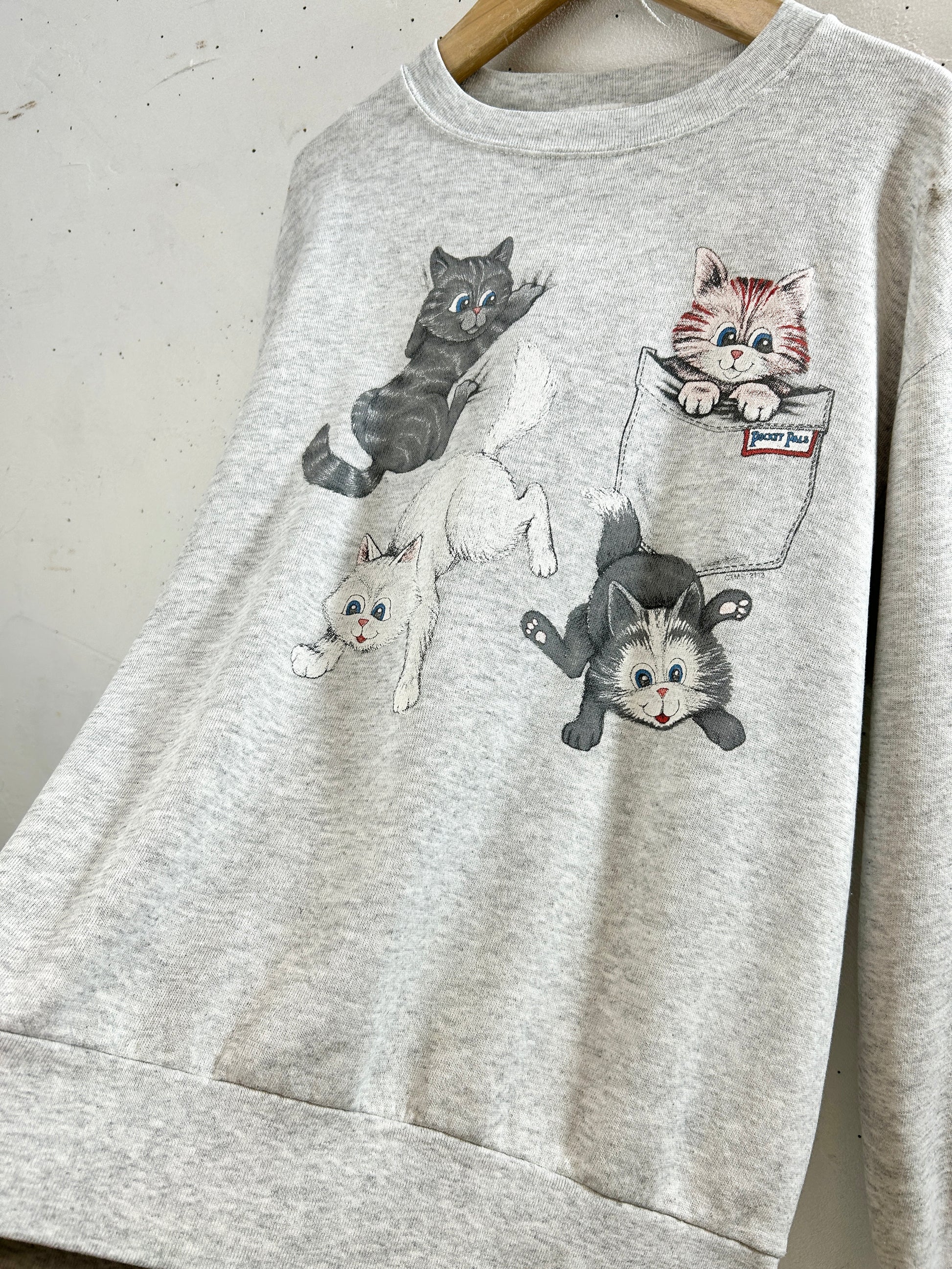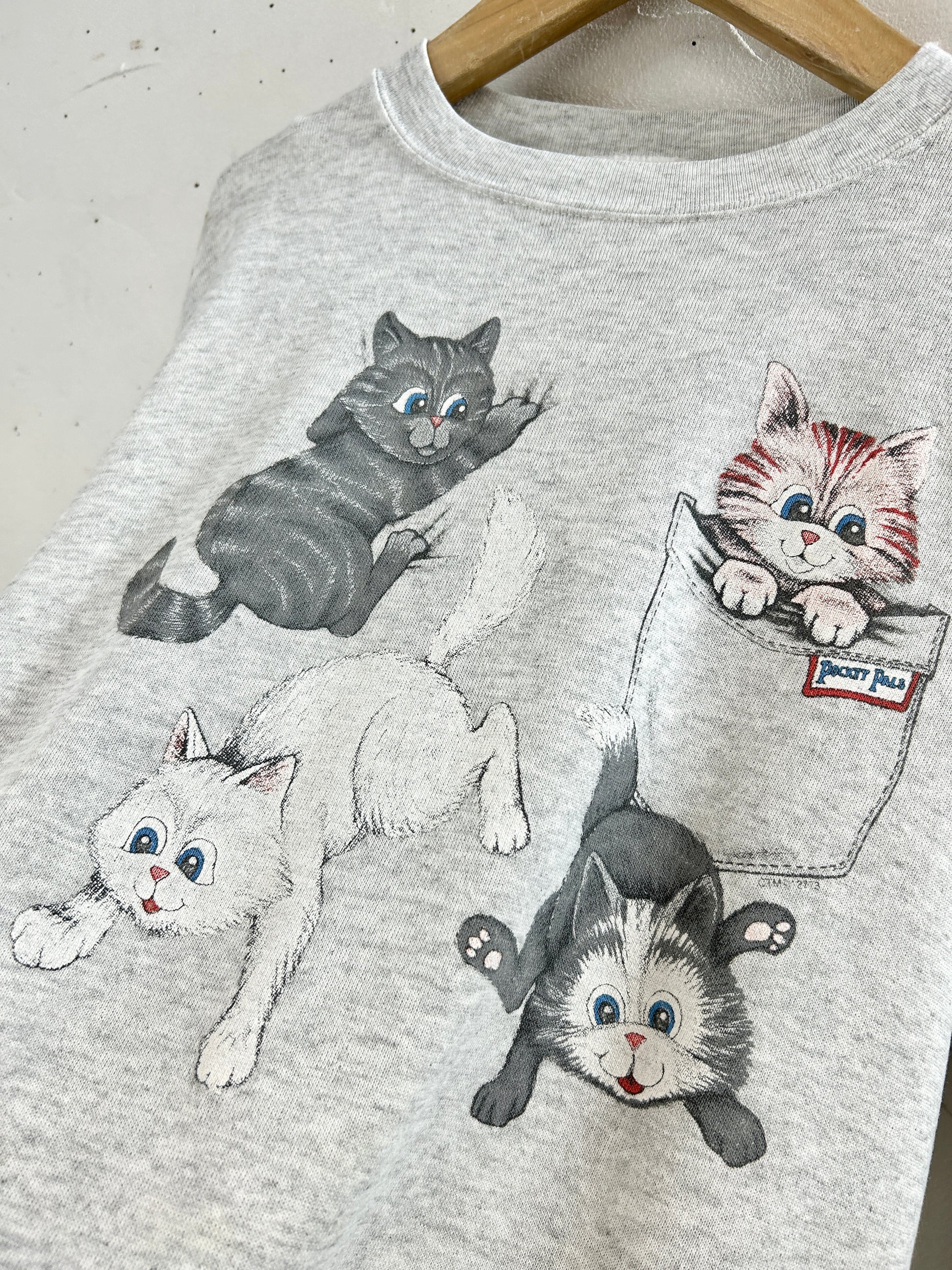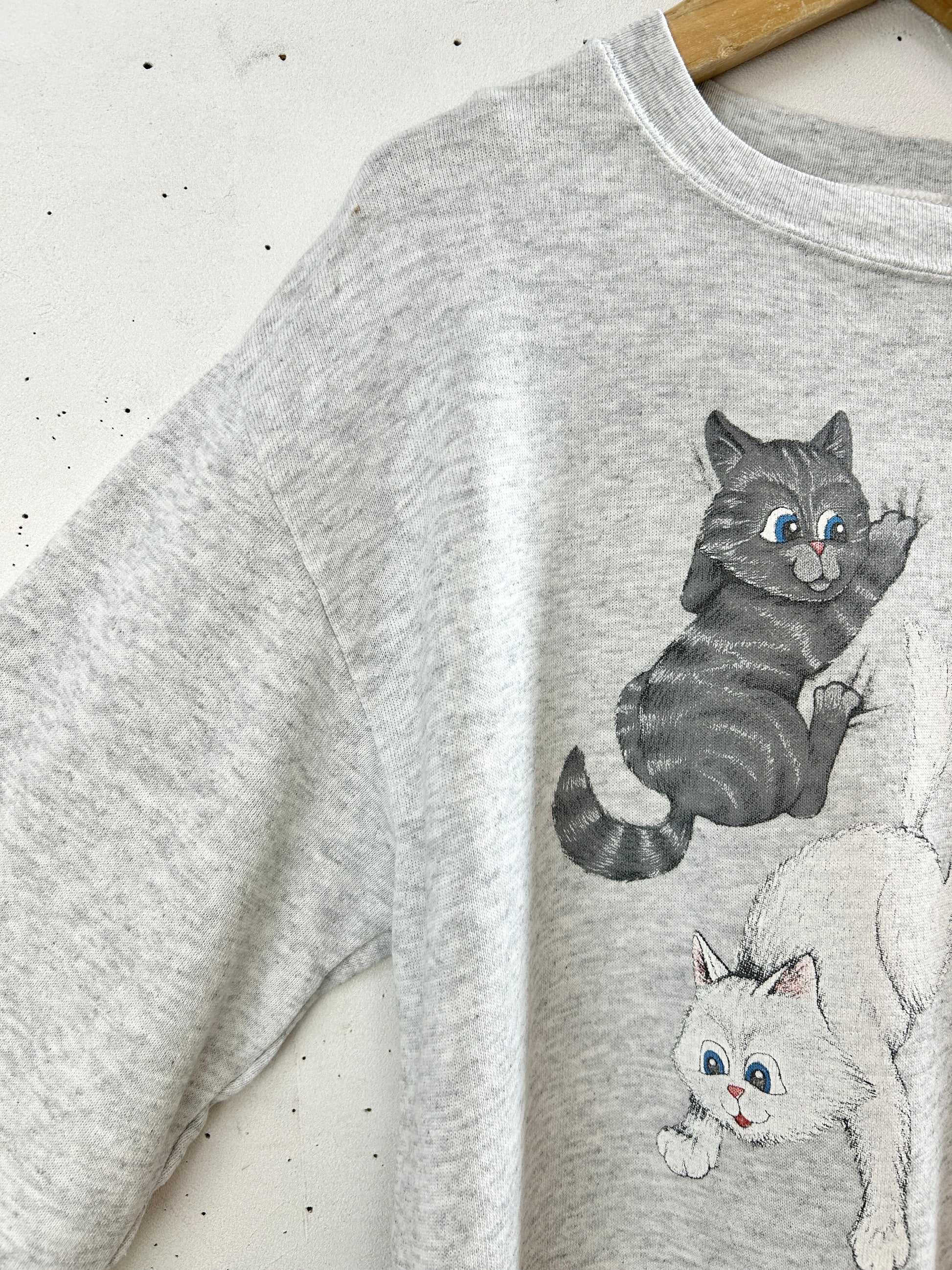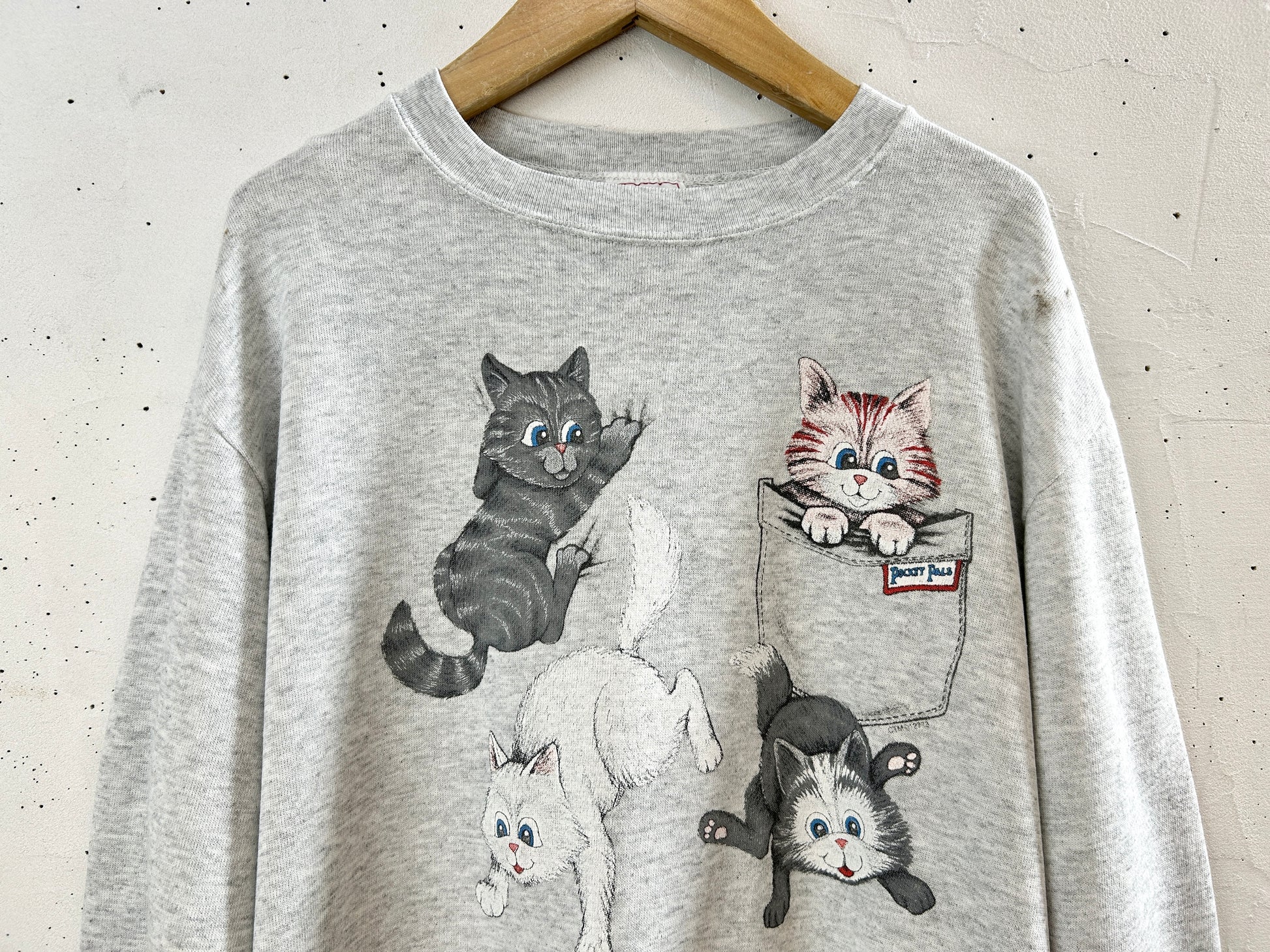 グレー杢ボディ、猫のプリントが可愛いアイテム。