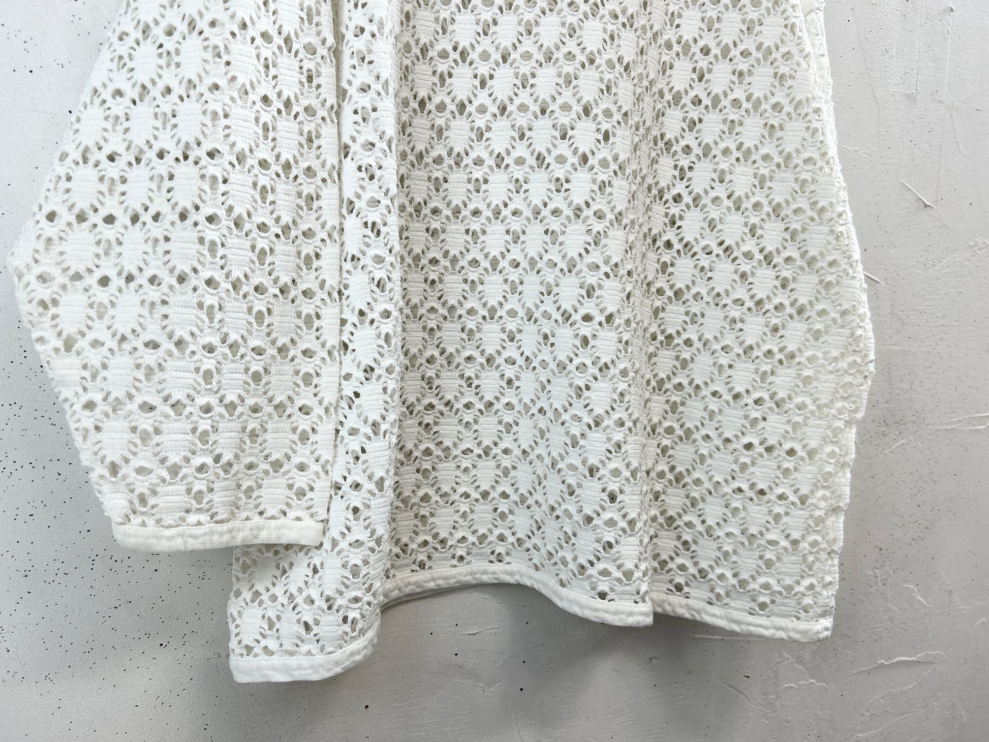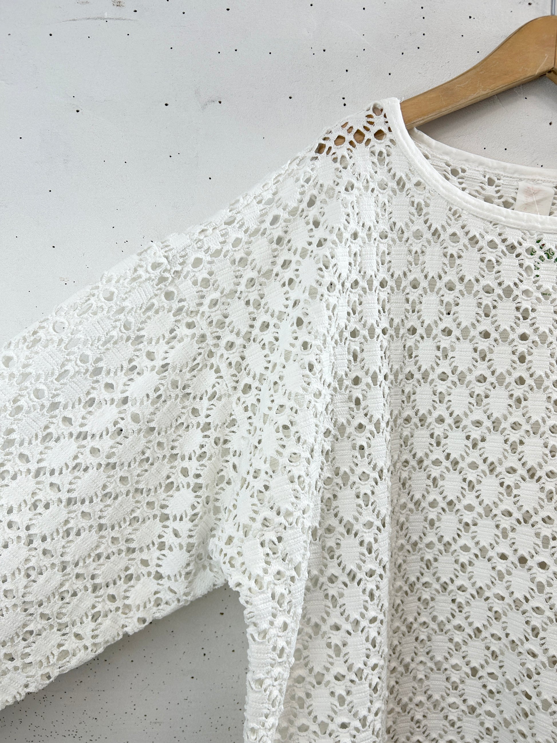 白ボディのメッシュトップス。中に色のあるものを合わせたり、裾だけ出したりとレイヤーコーデをお楽しみいただけるアイテムです。