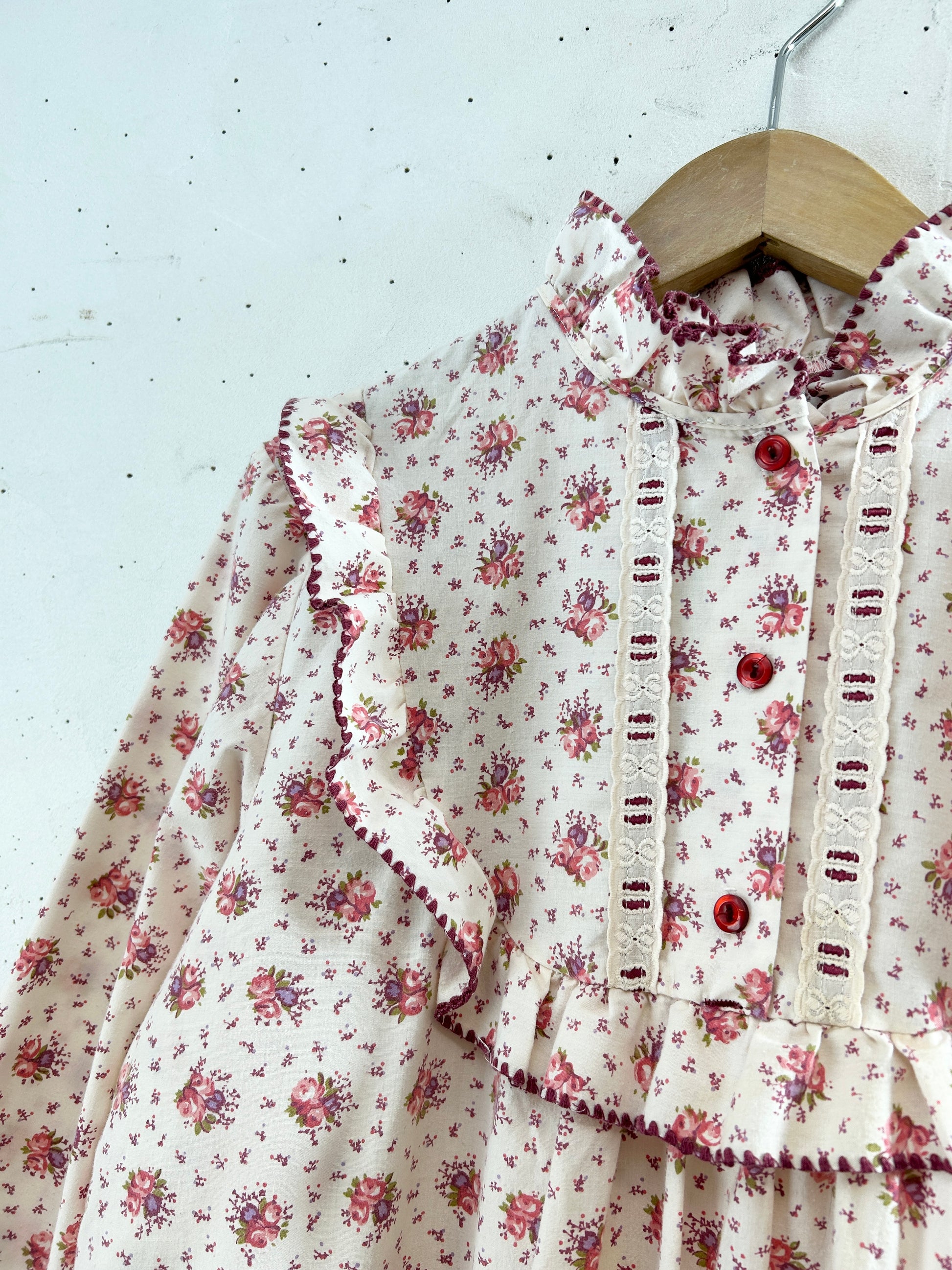 小花プリント、フリルデザインやフロントのハシゴレースも可愛らしく一枚で決まるドレスです。