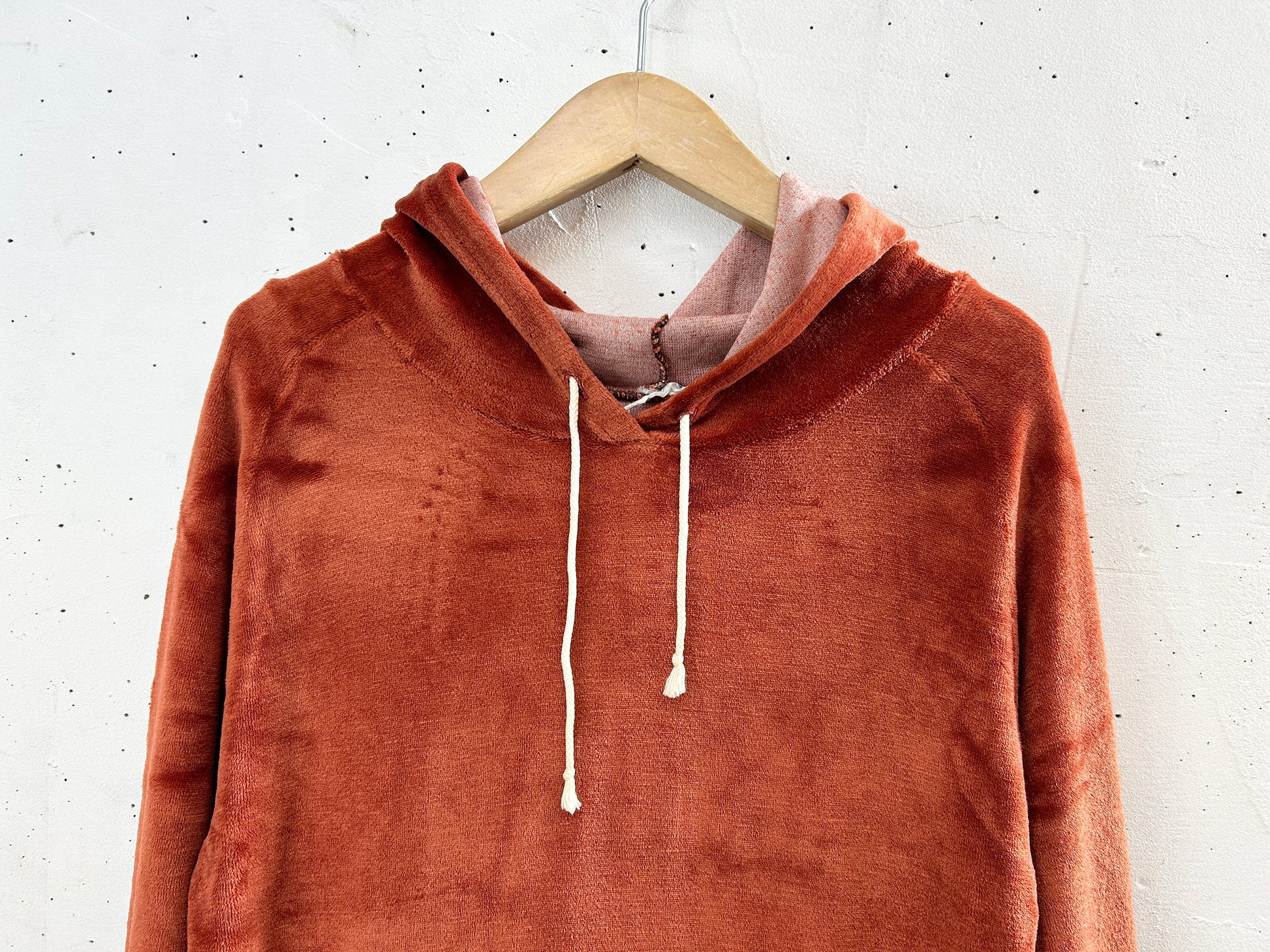 フーディタイプのベロアトップス。