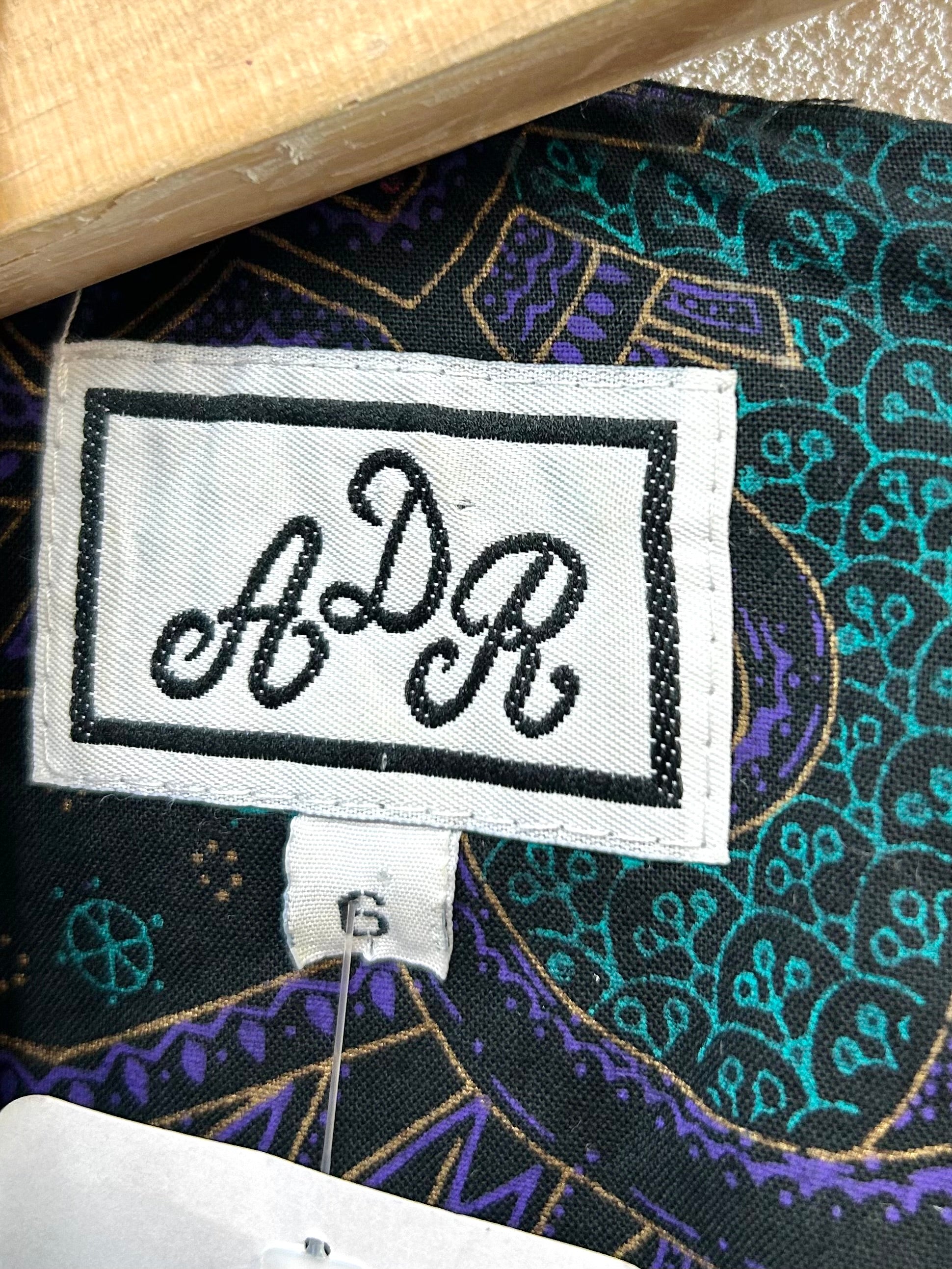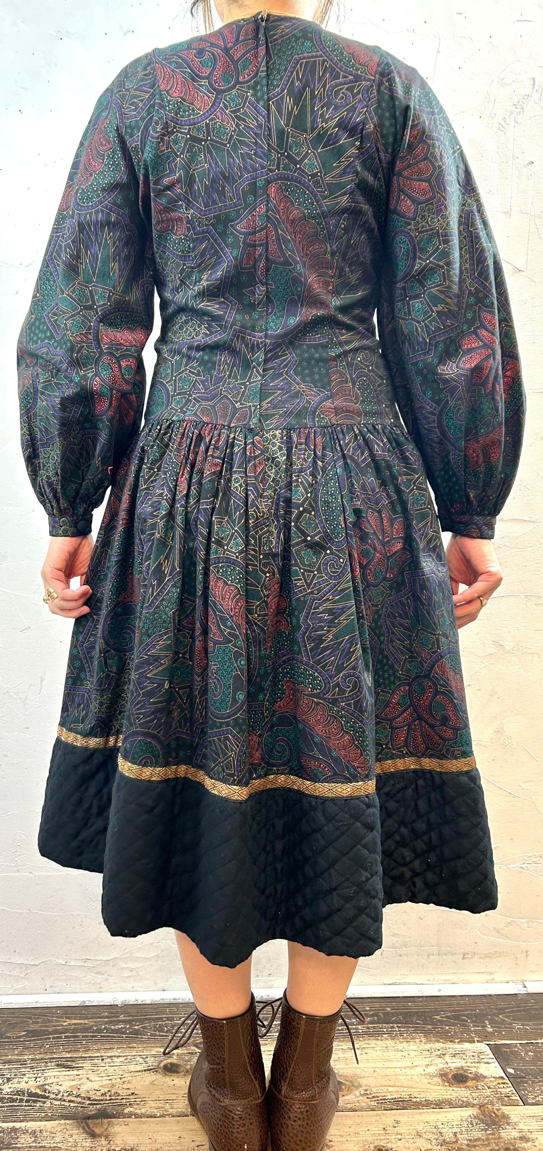 オリエンタルな柄と雰囲気の生地にブラックのキルティング生地が存在感のある1着。