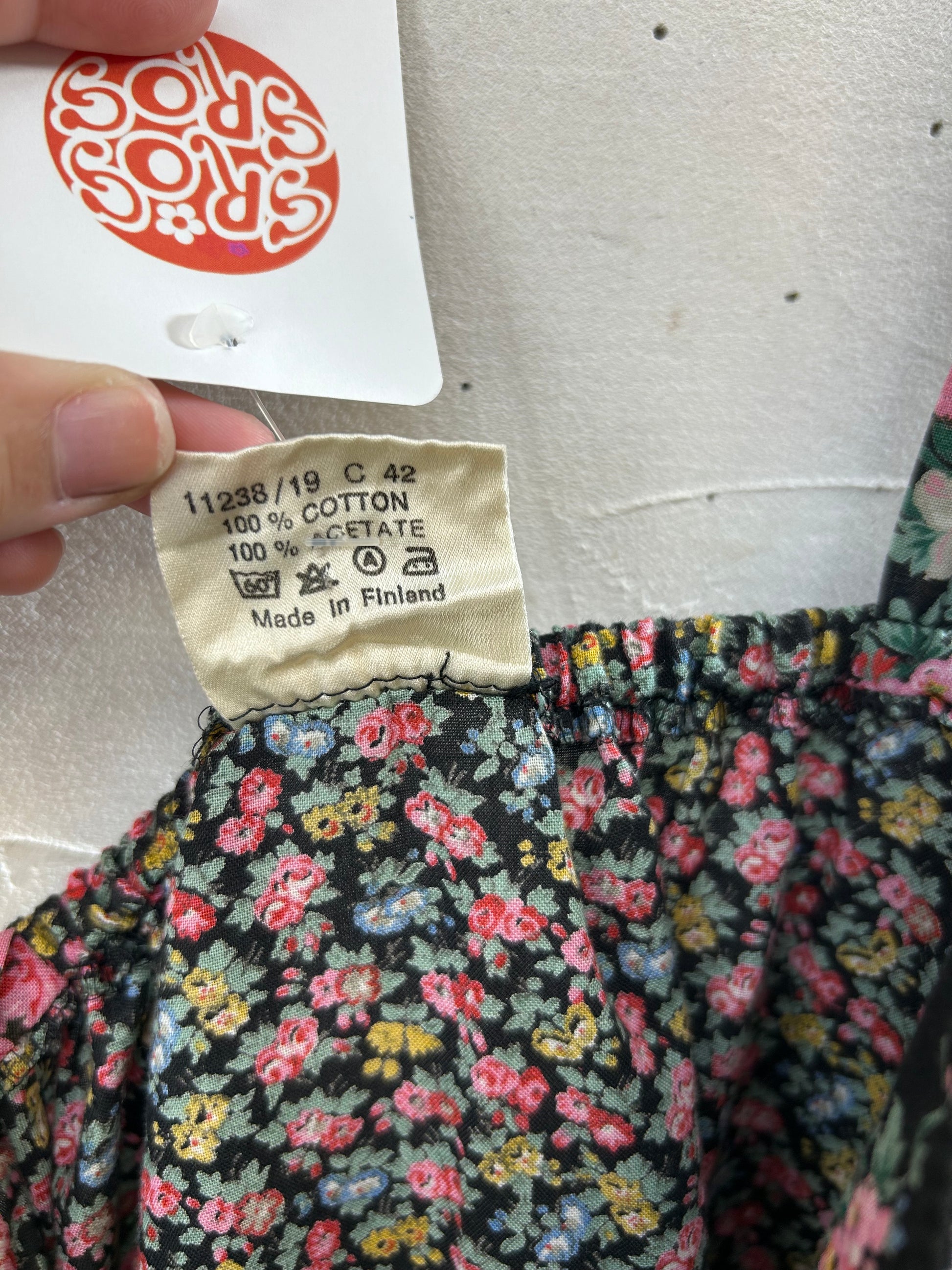 ブラックボディにパキッと鮮やかなカラーが映えるフラワーパターンが可愛らしい一着。