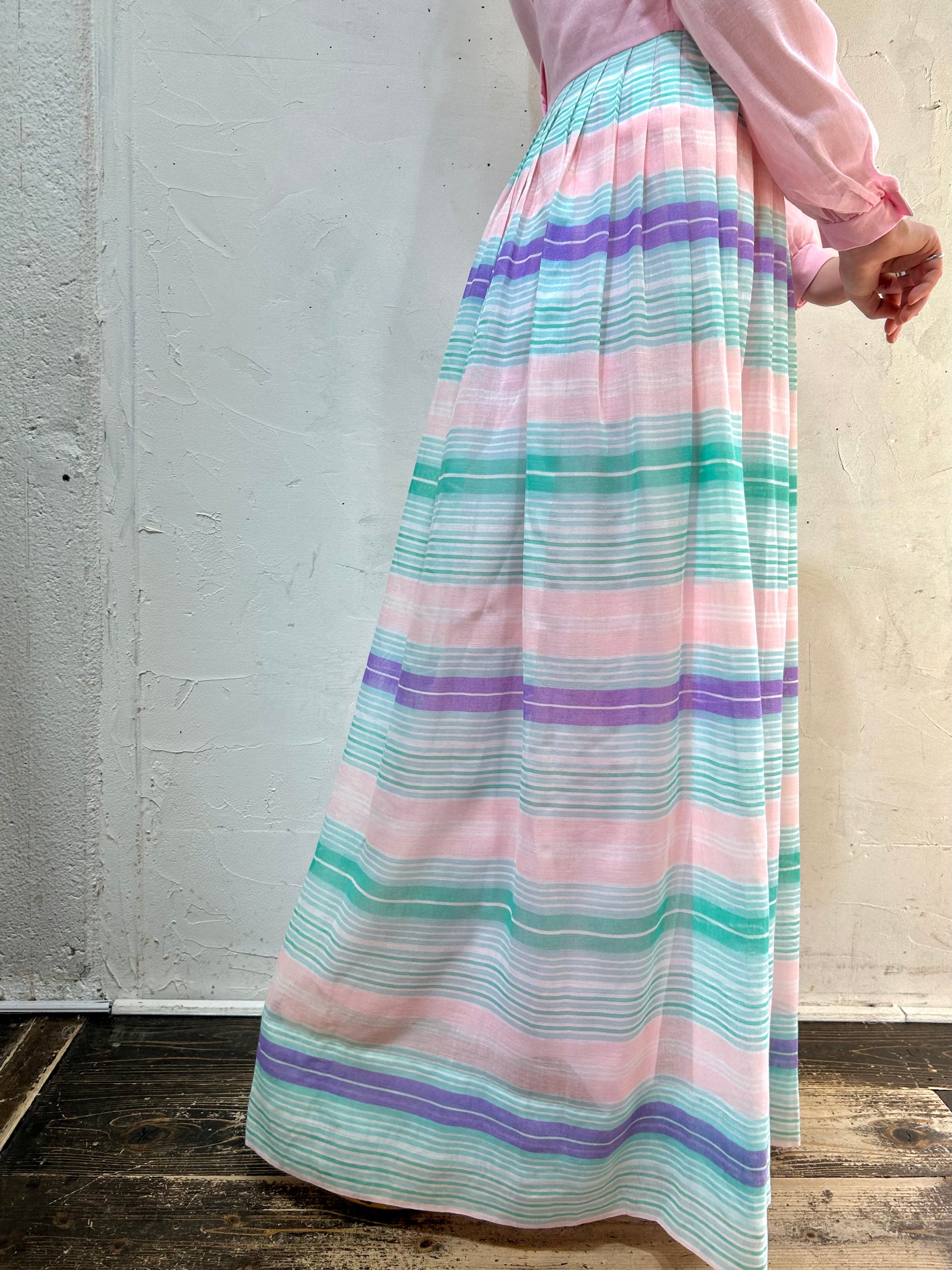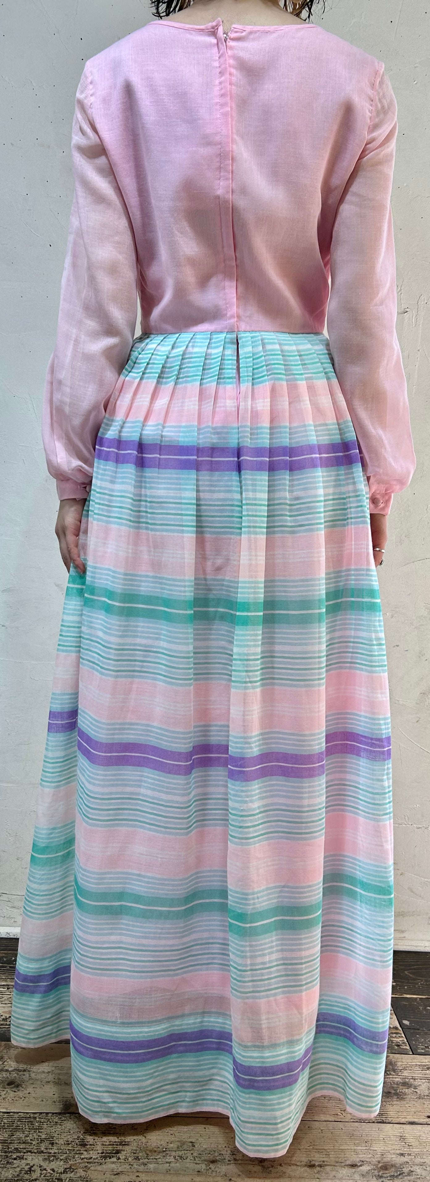 こちらのドレスはパステルカラーが珍しいこれからの季節にぴったりな1着。