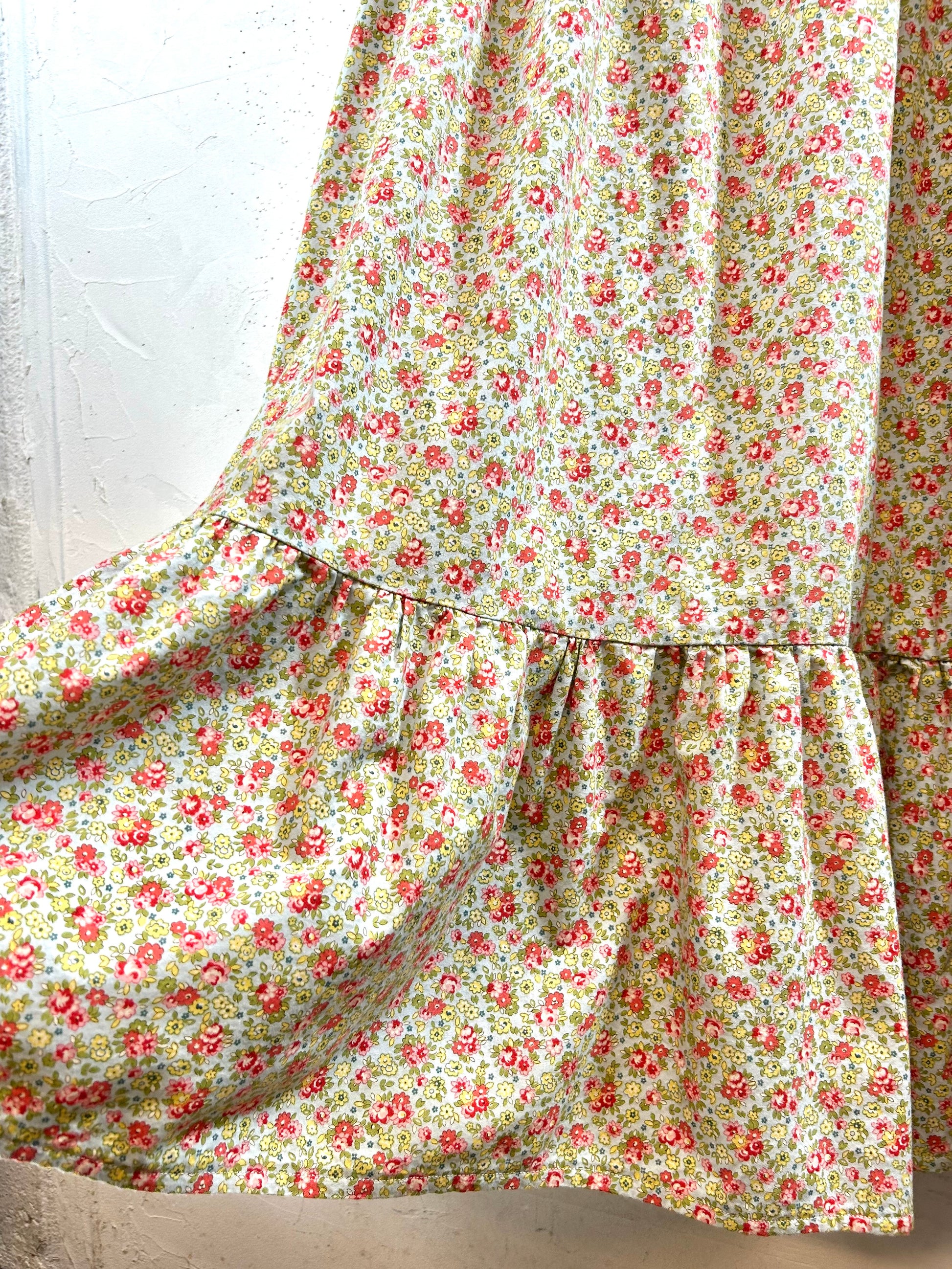 size:表記不明、肩幅35cm、身幅42cm、ウエスト切替76cm、袖丈28cm、ウエスト〜裾93cm、着丈126cm