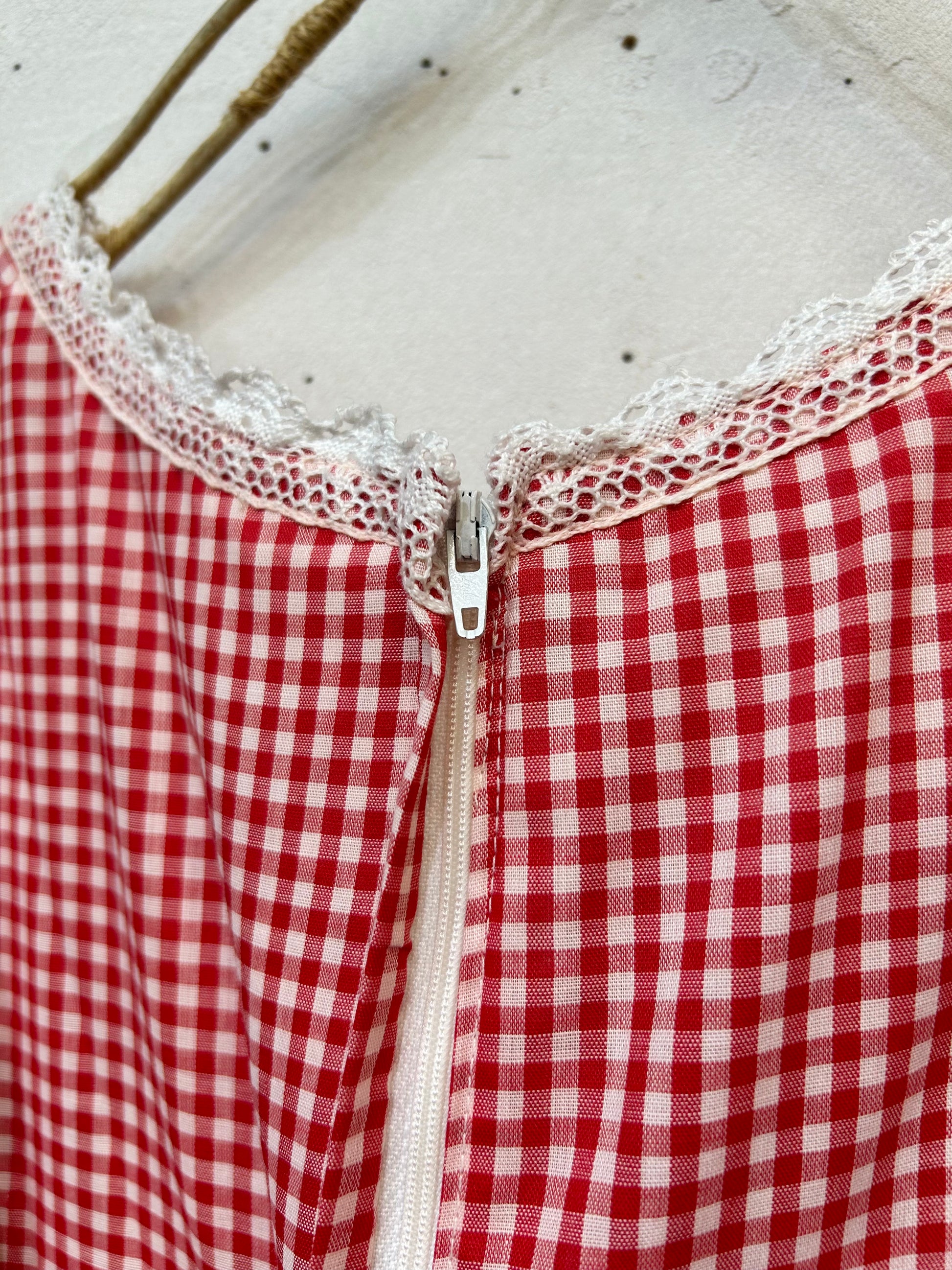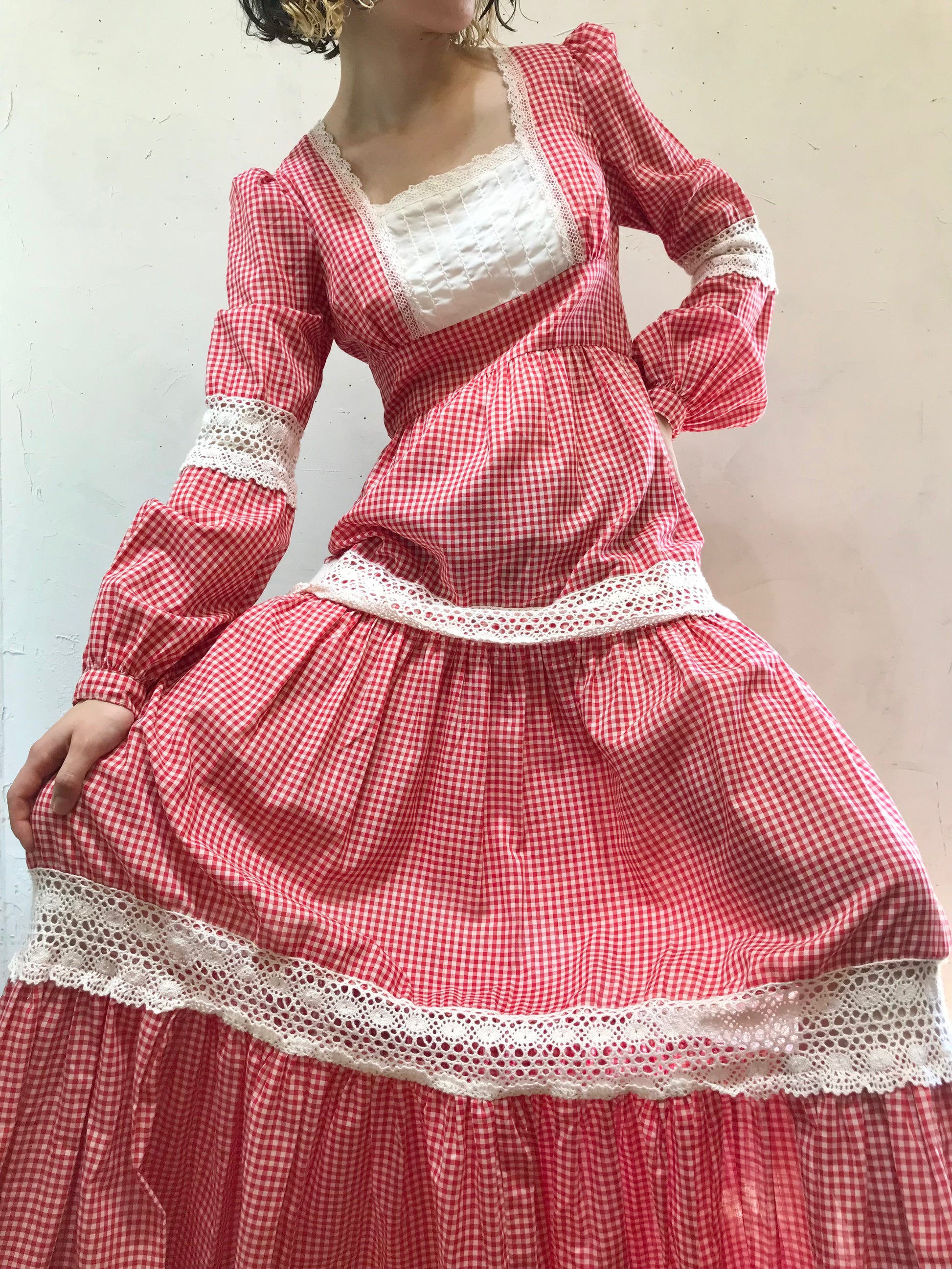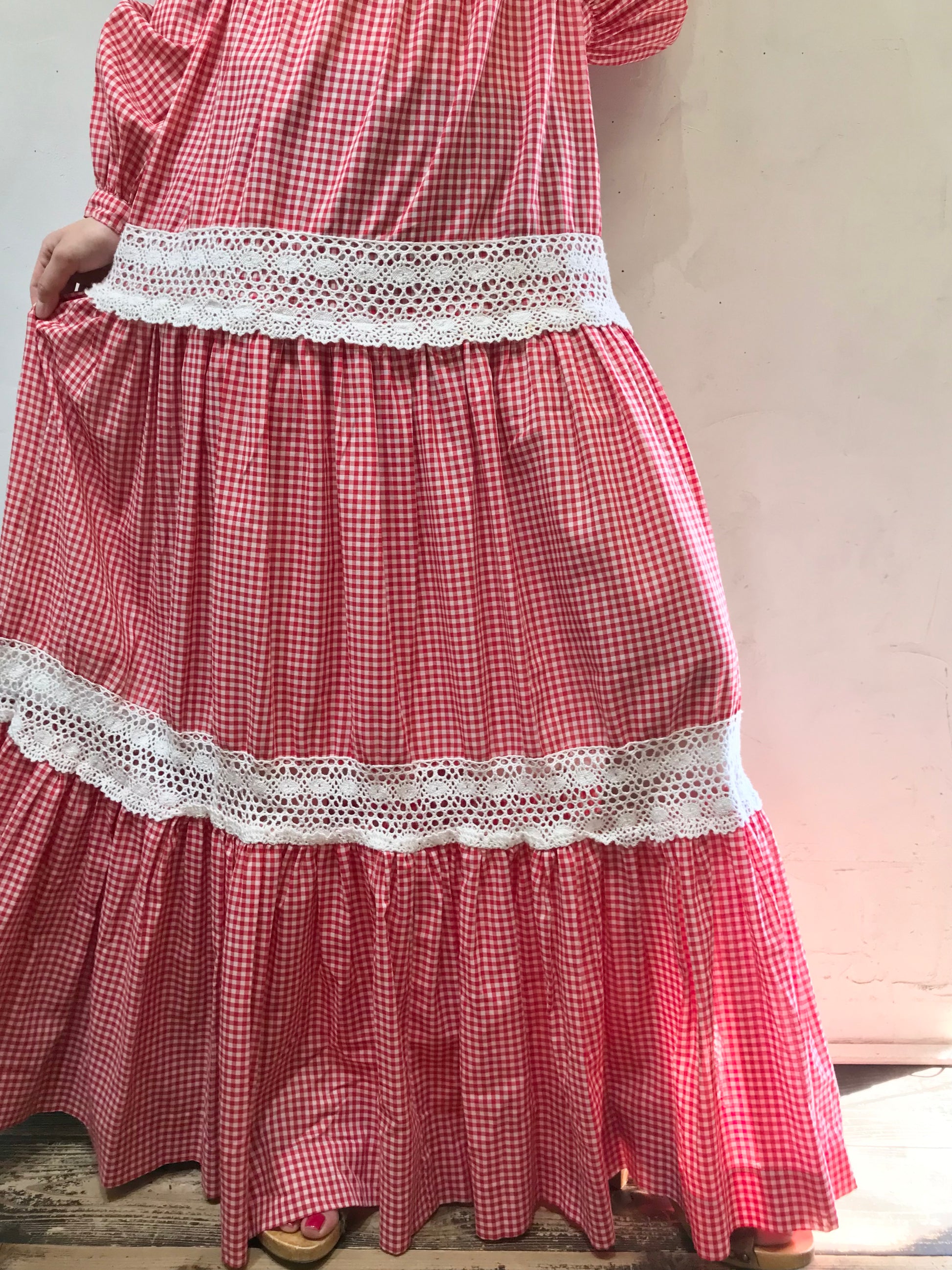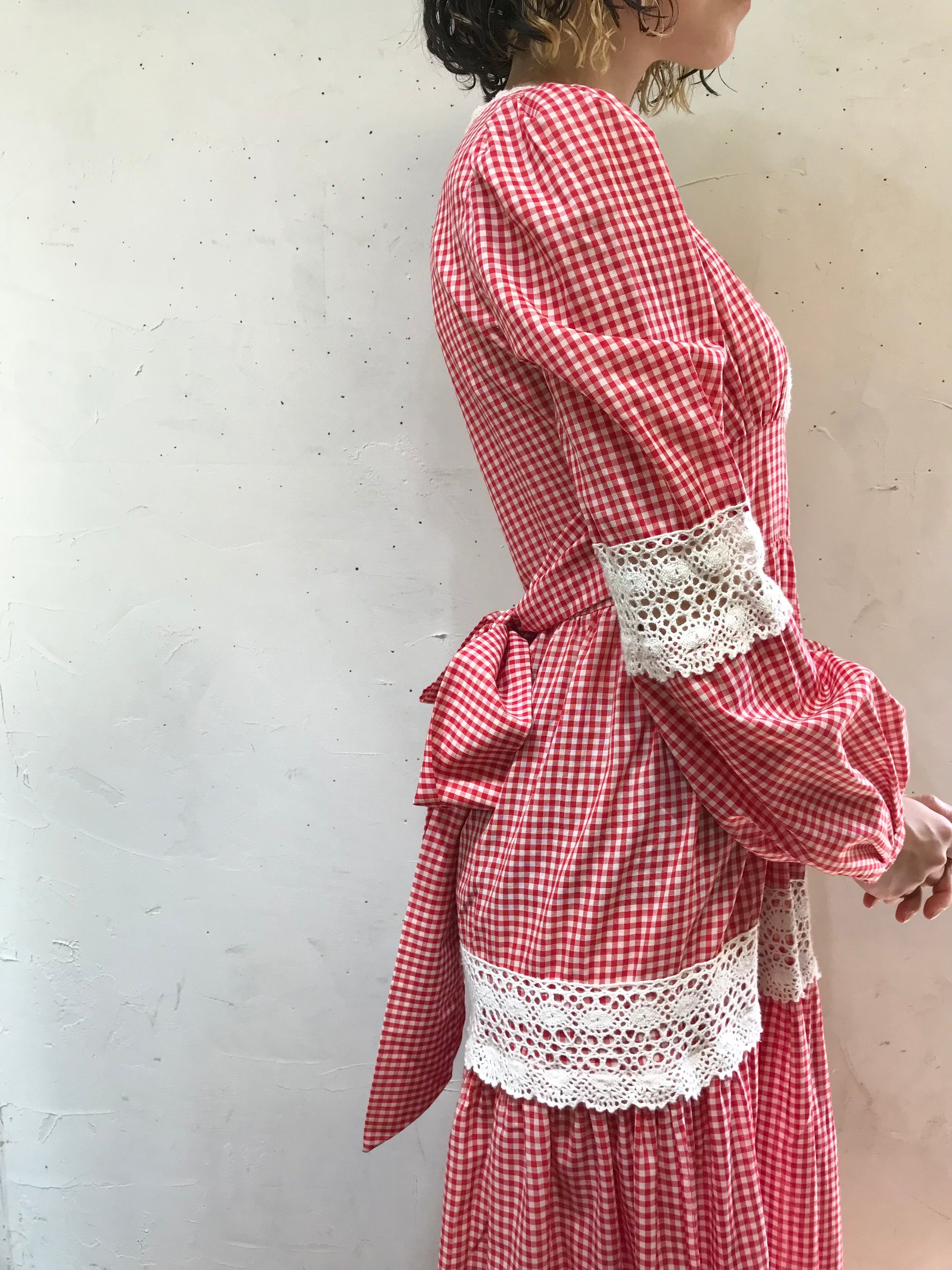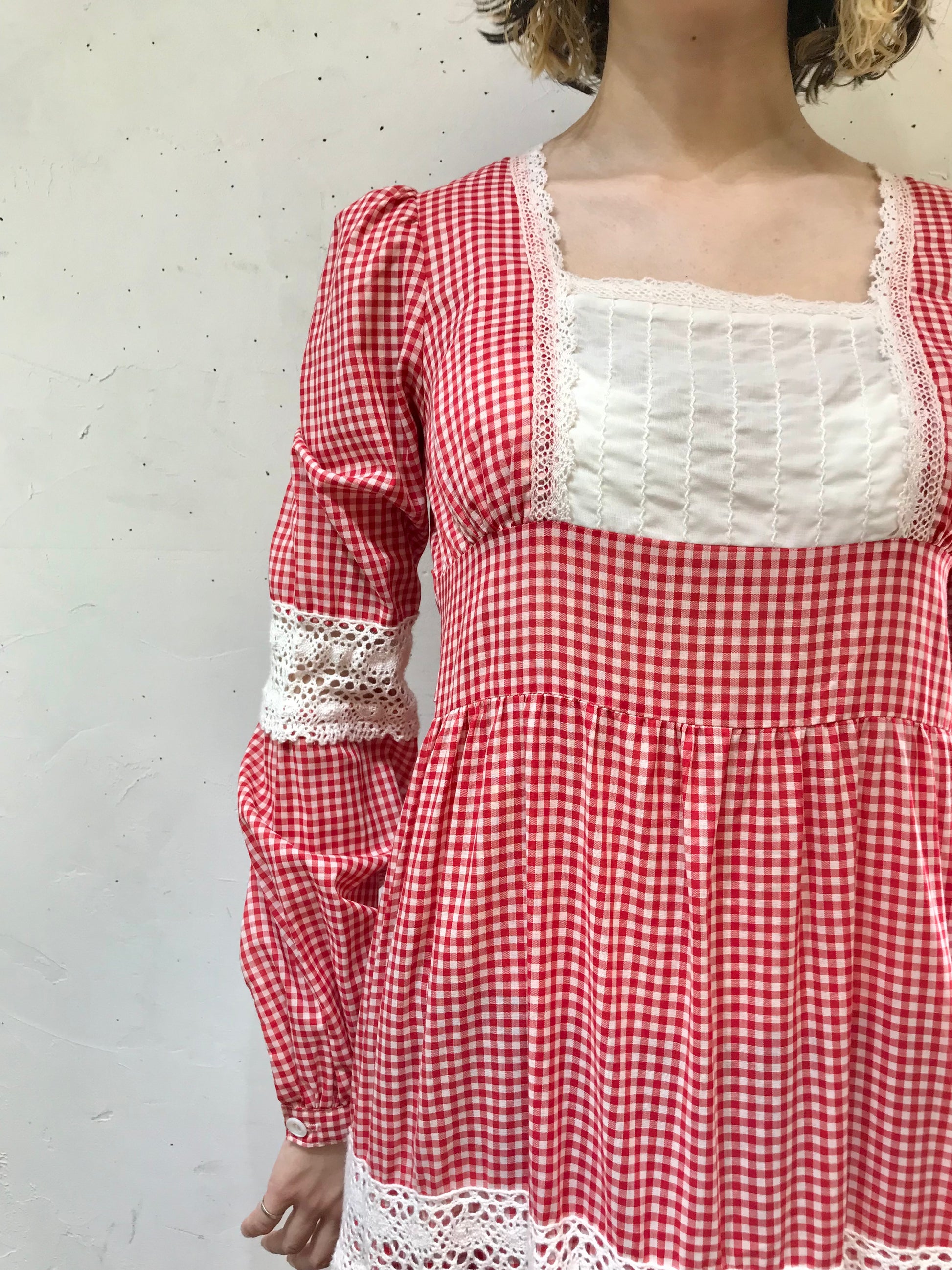 こちらのドレスは、レッド×ホワイトのギンガムチェックパターンを贅沢に使用した一着。