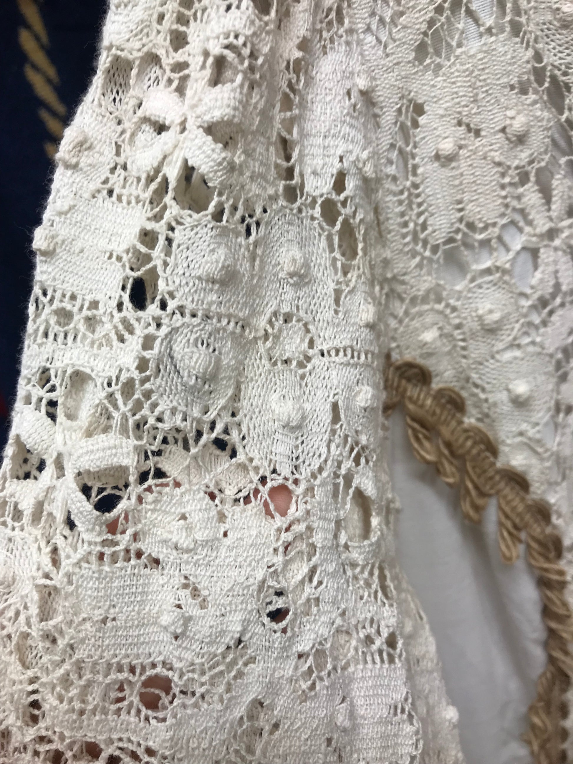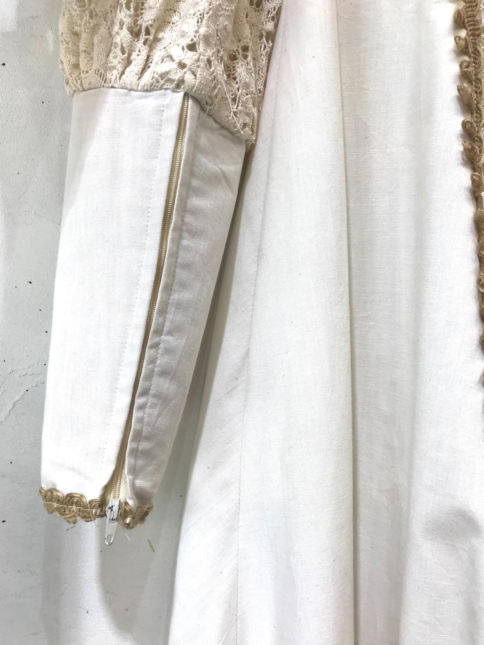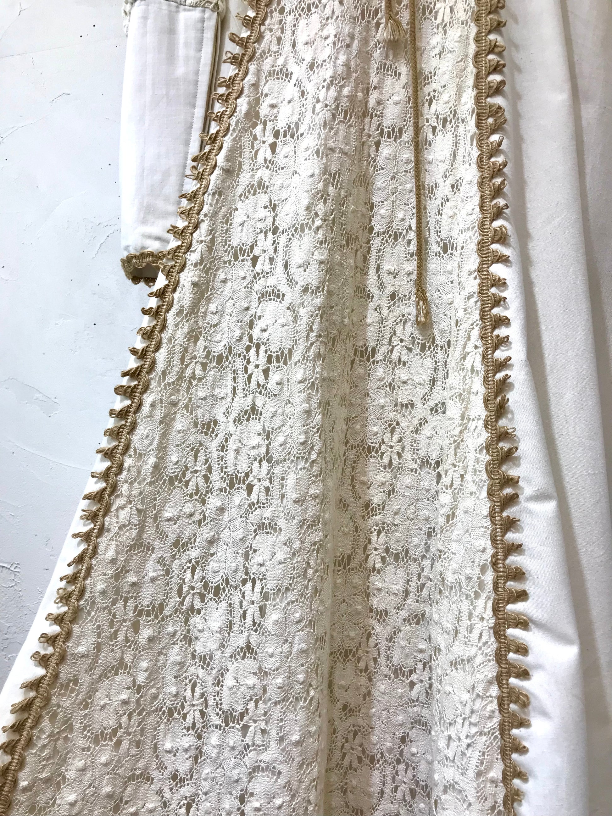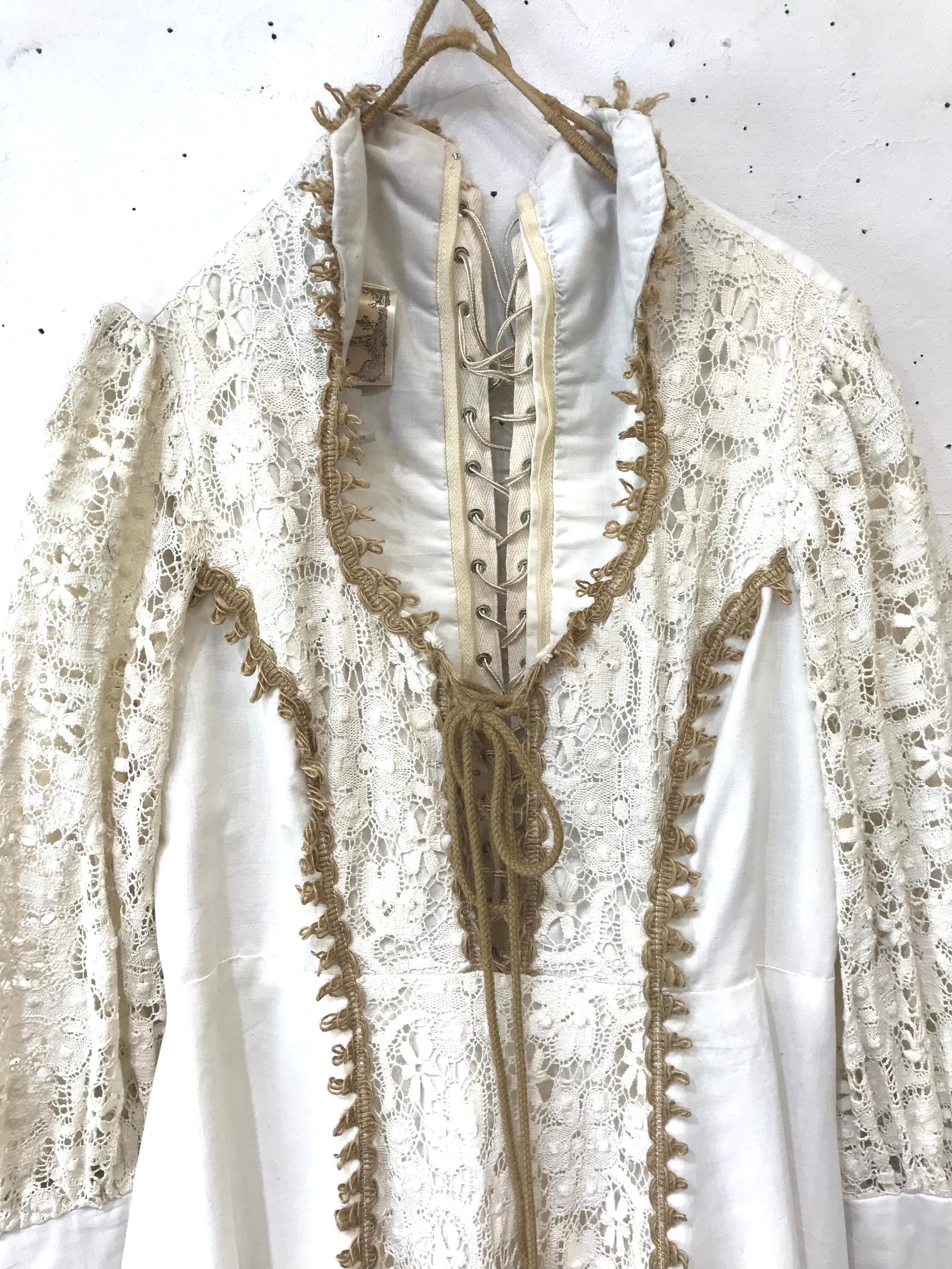 ロングカフスや、繊細なレースがたっぷり使われた贅沢で重厚感ある雰囲気のビンテージならではな1着。