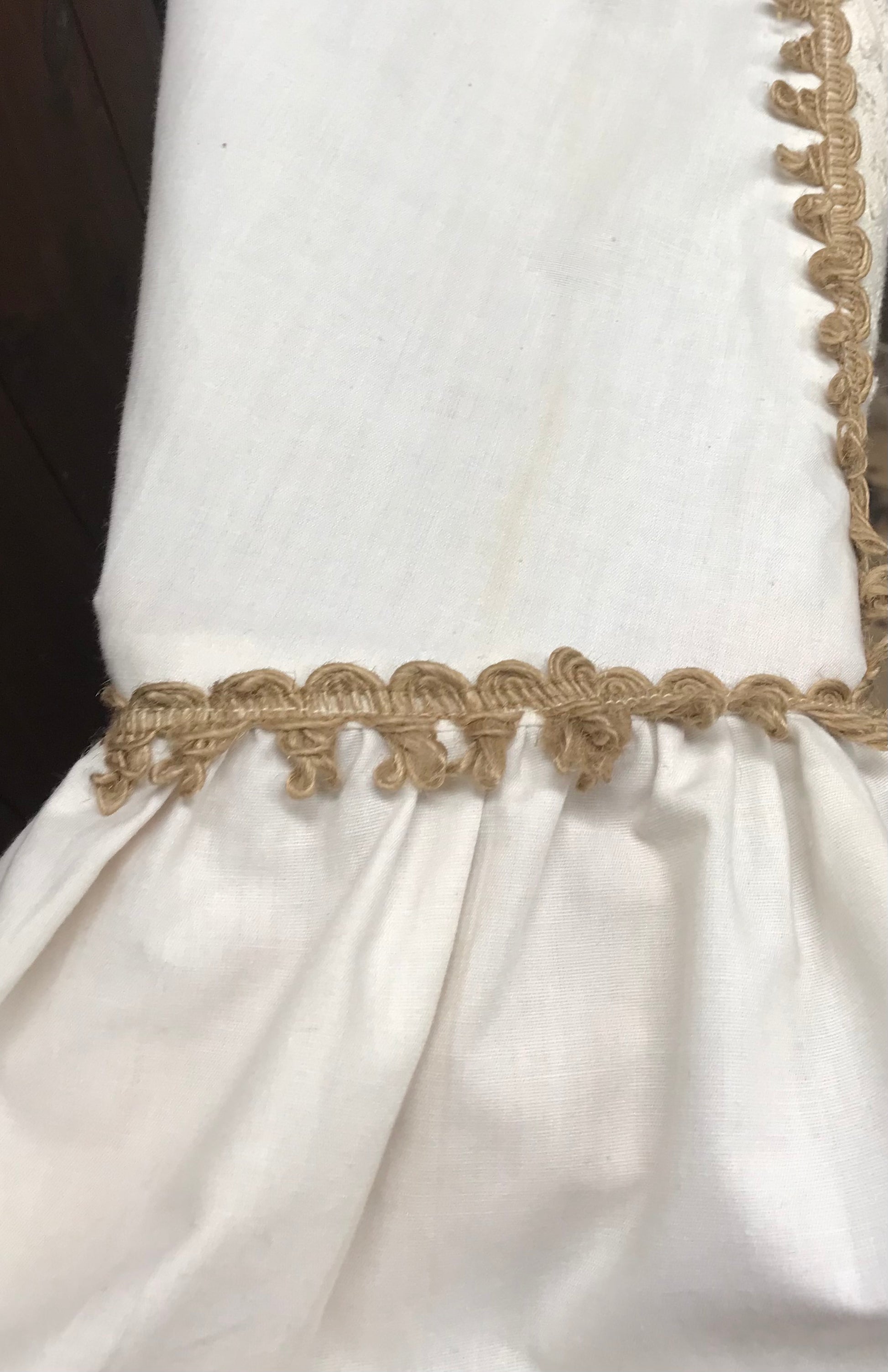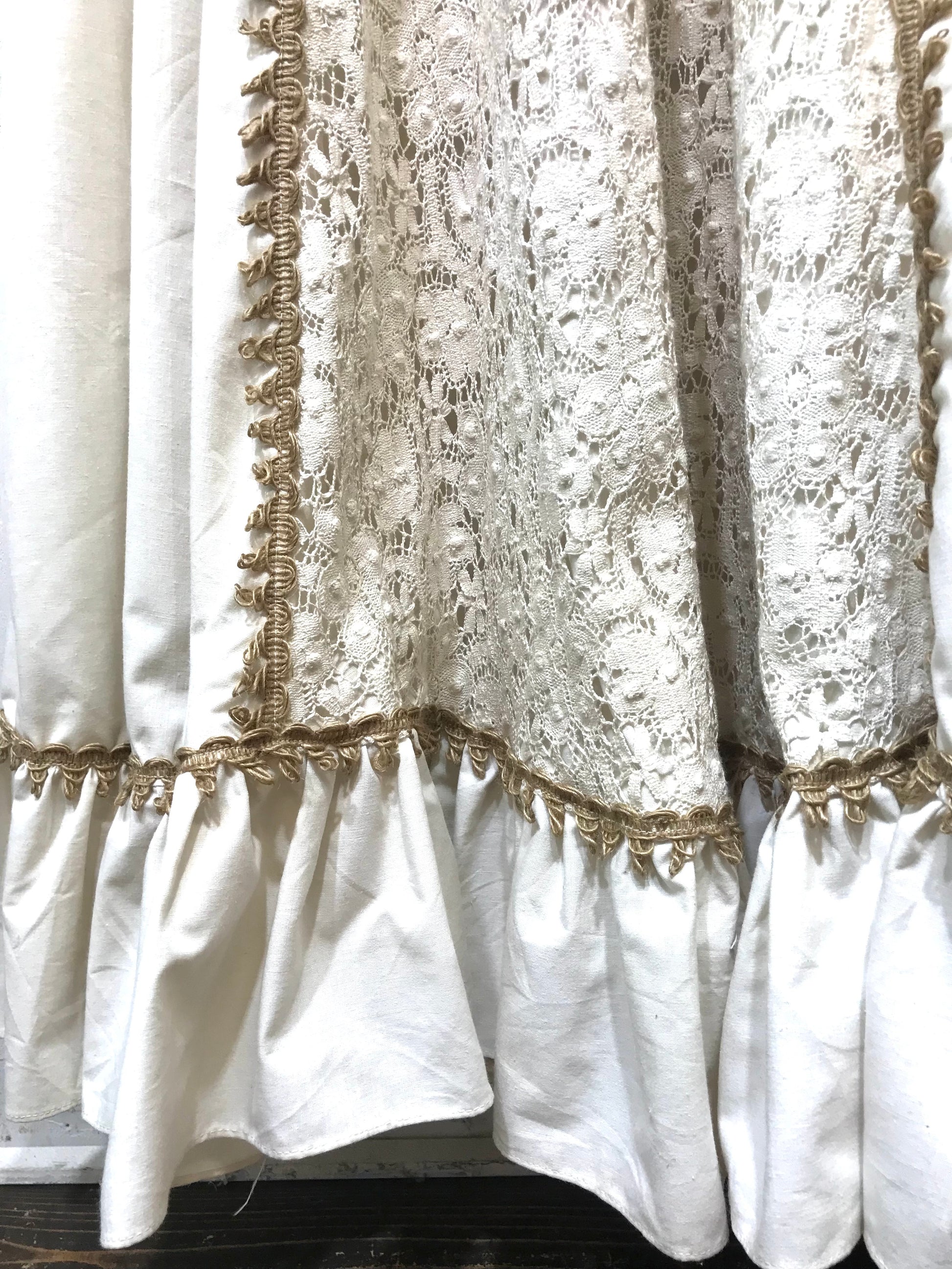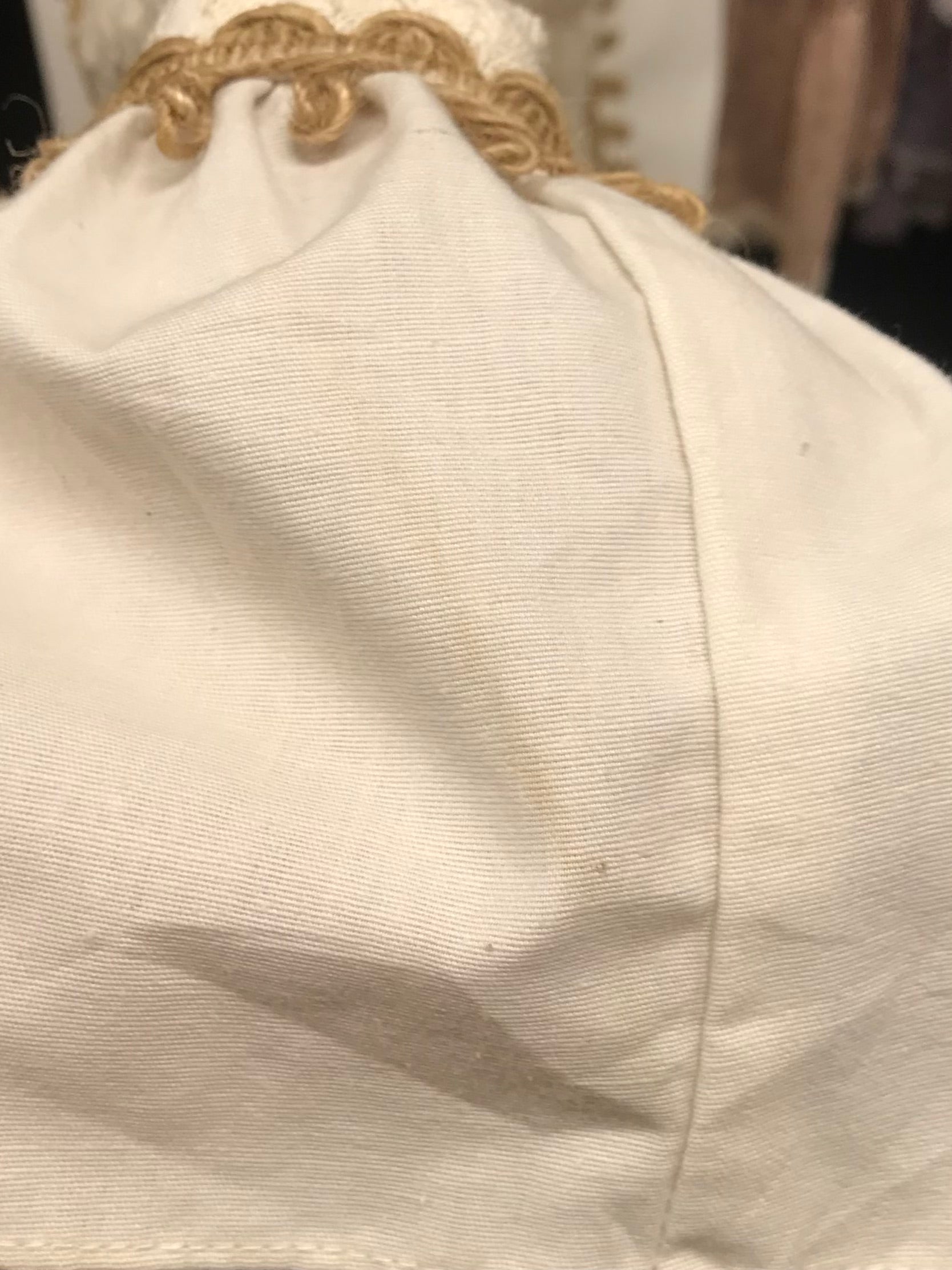 レースや裾、カフスの縁取りのリボンも光沢感のある糸が使われており細部まで抜かりない美しさです。