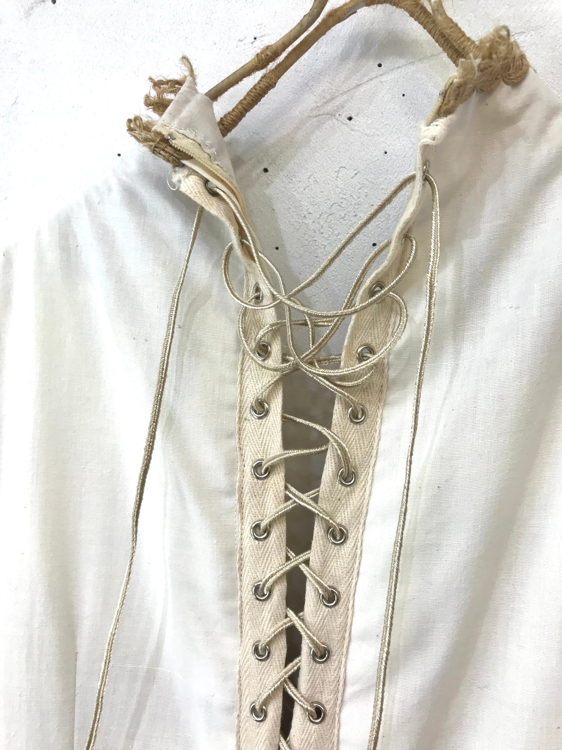 バックはレースアップデザインにカスタムされており、自由自在に着ることができます。