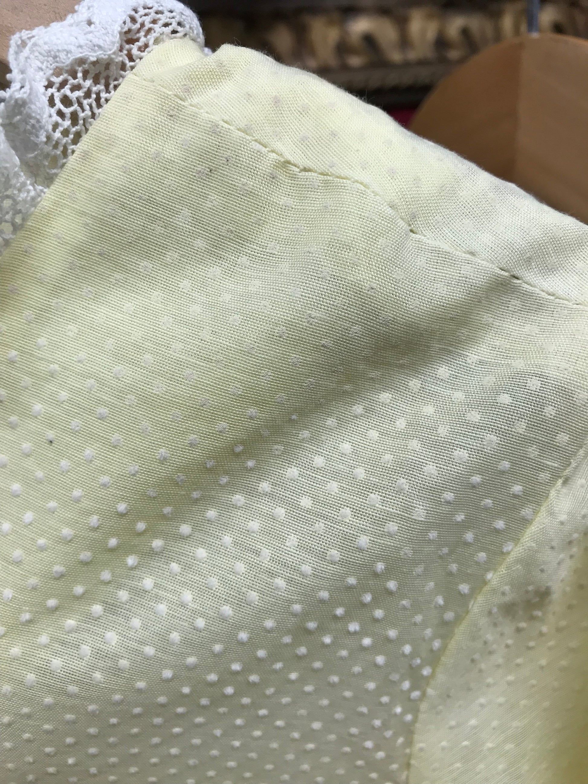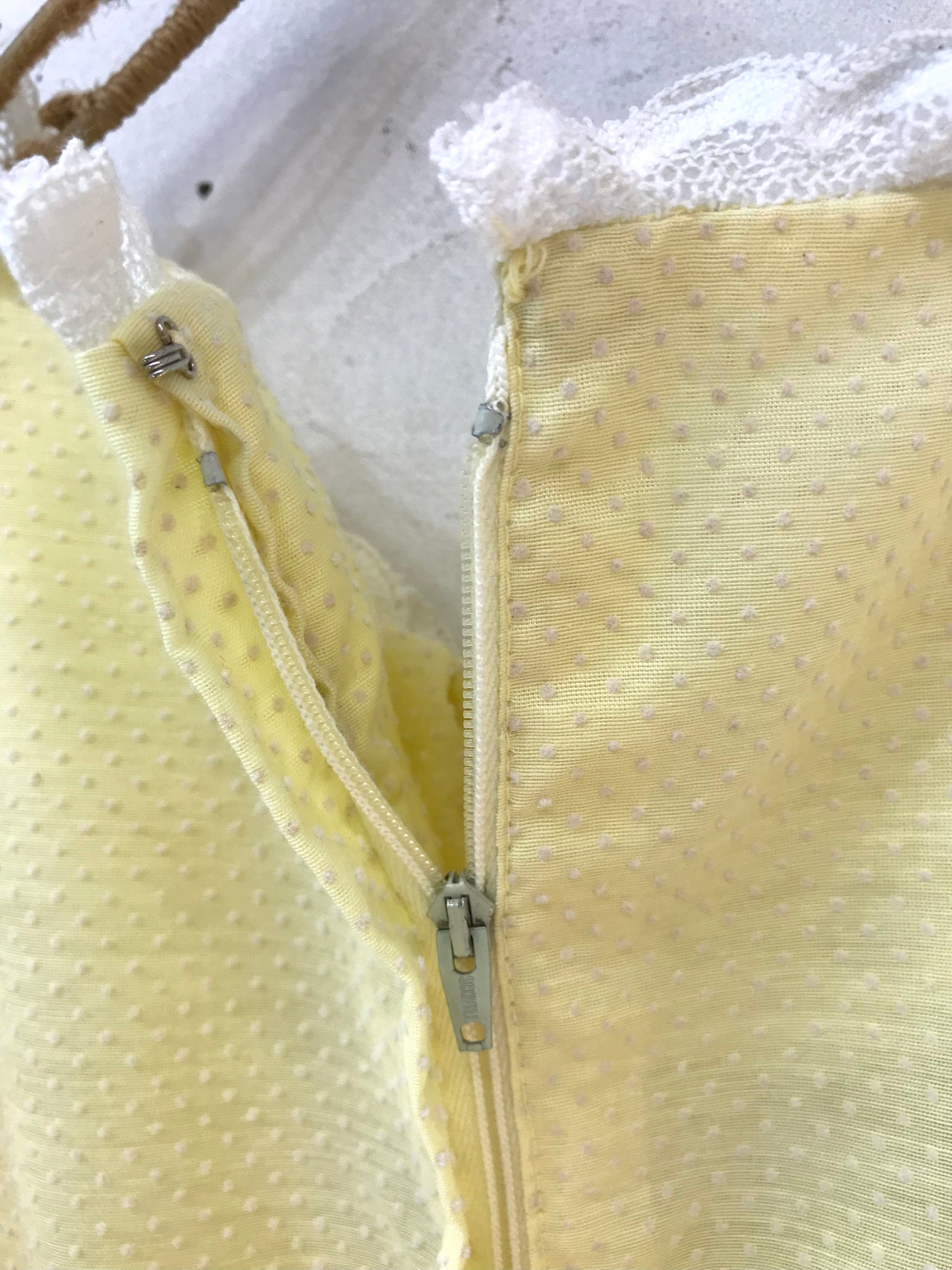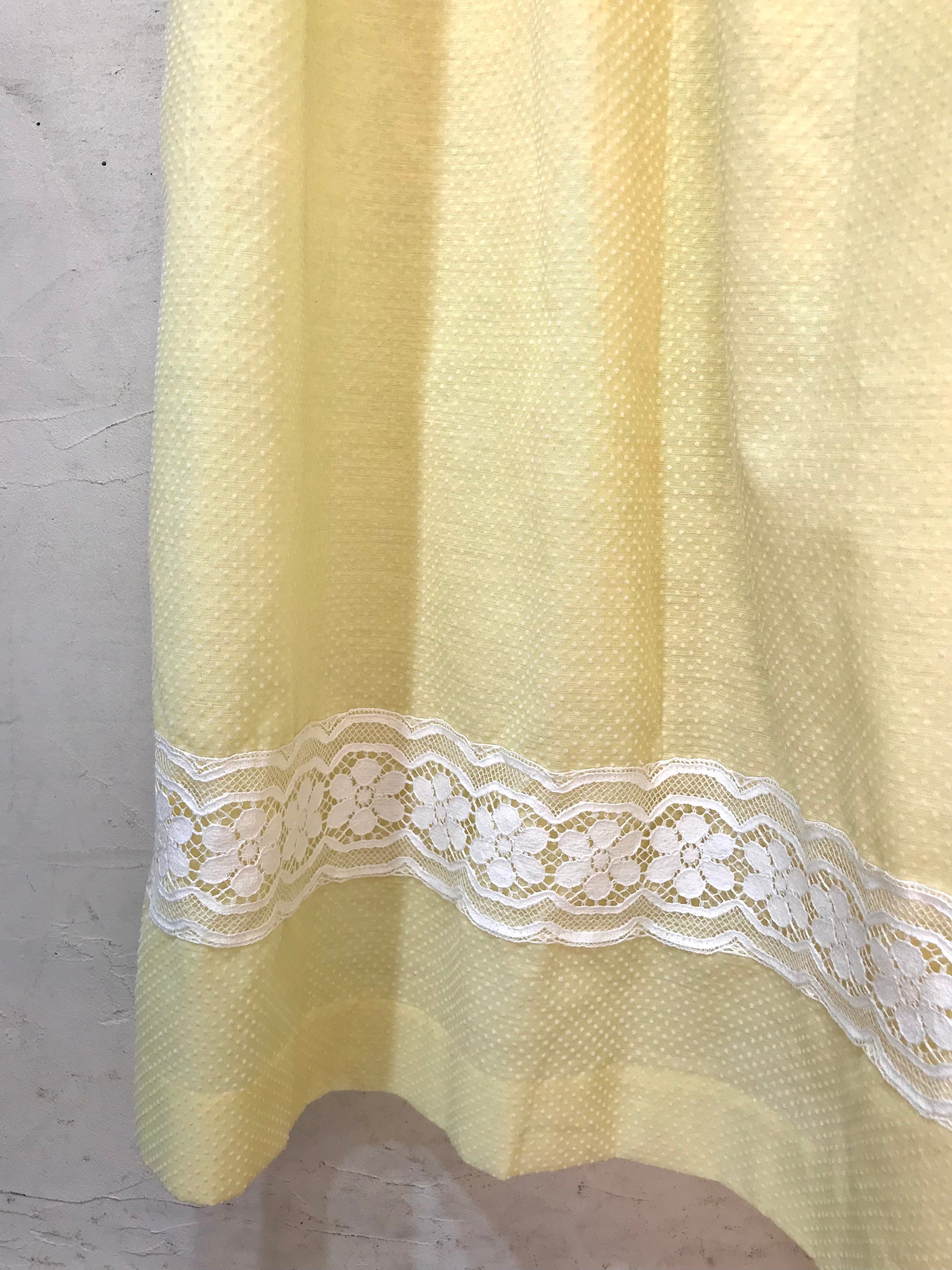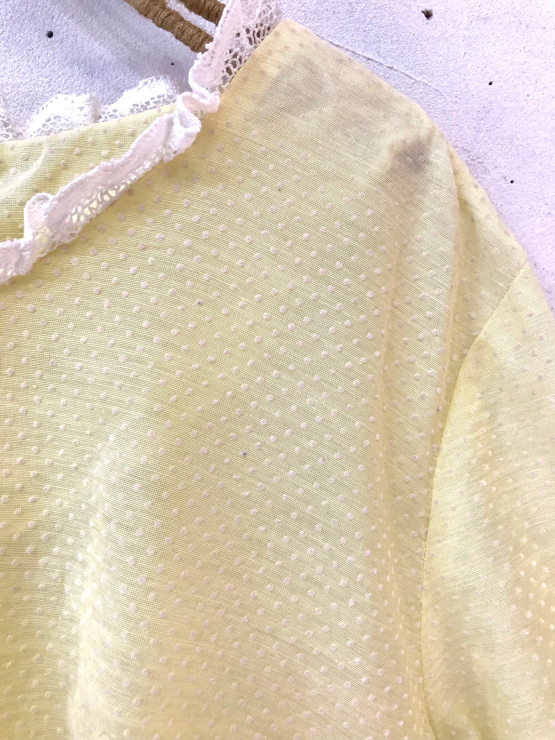 こちらのドレスは、イエローボディにピンドットのフロッキープリントが可愛らしく、ほんのり透け感のある軽やかな素材で動きのあるシルエットが美しいアイテム。