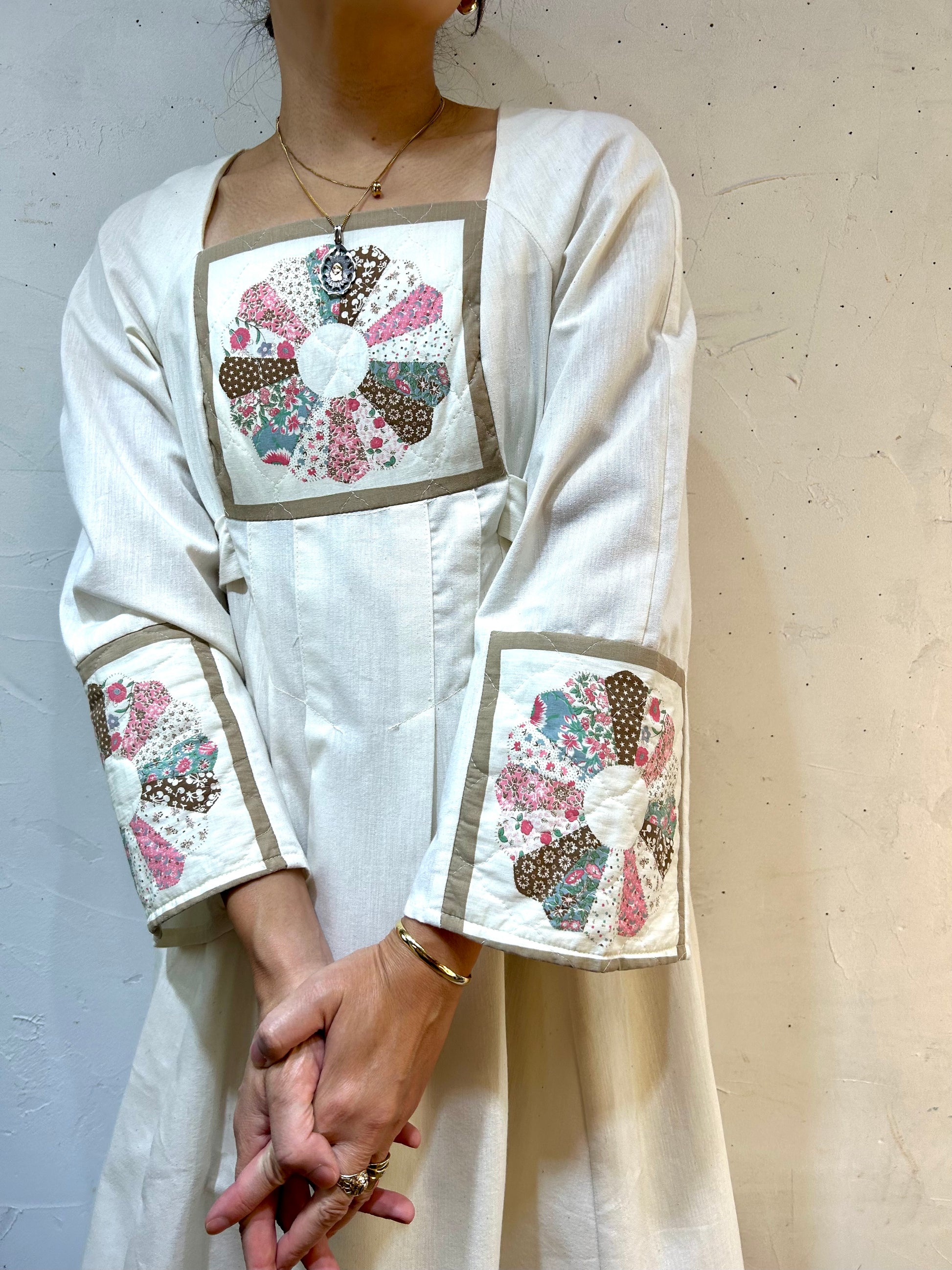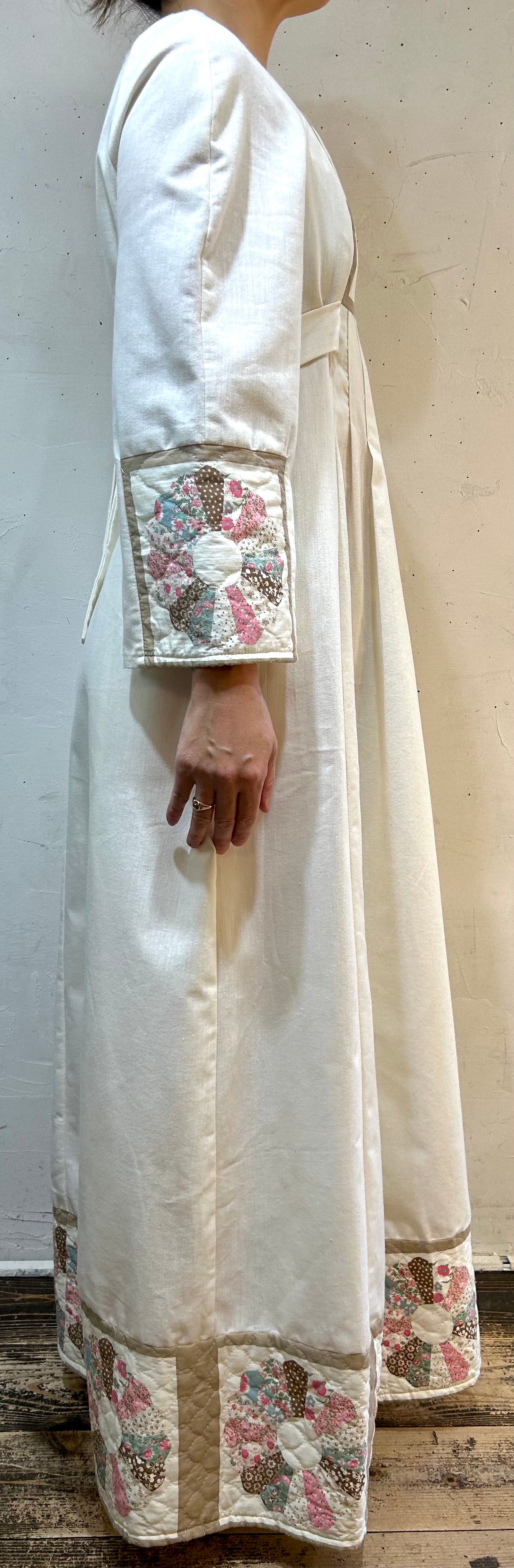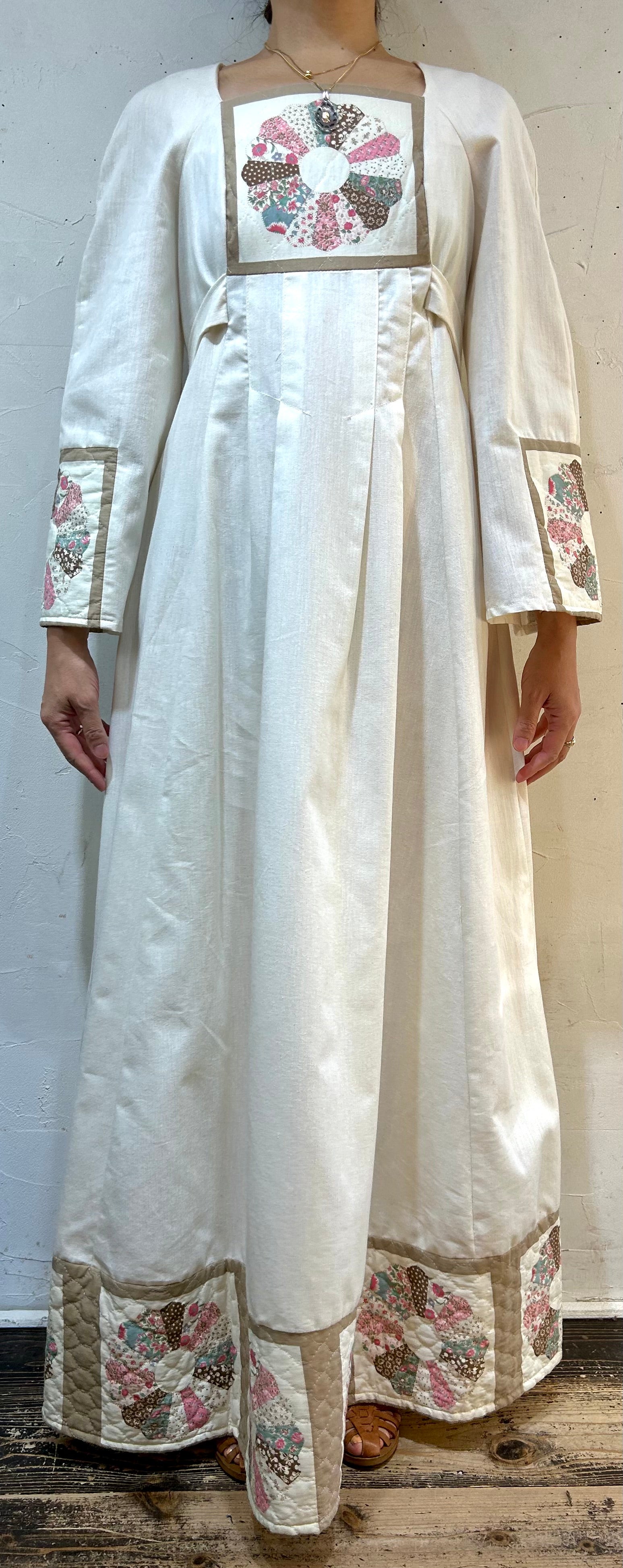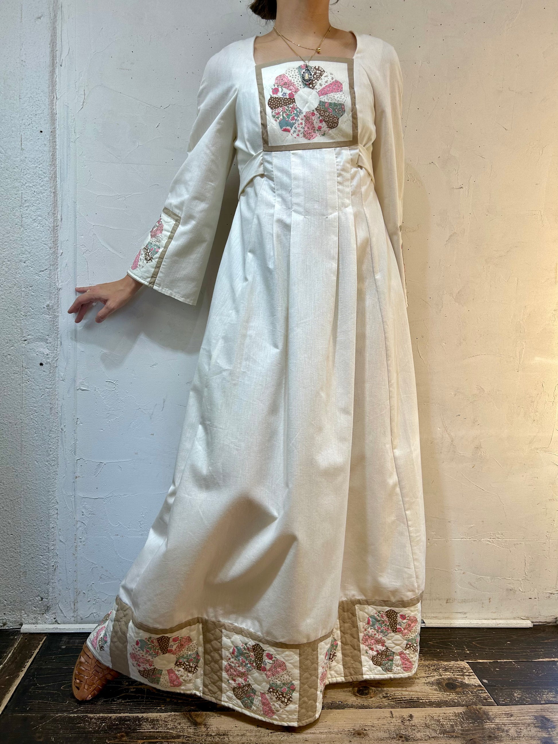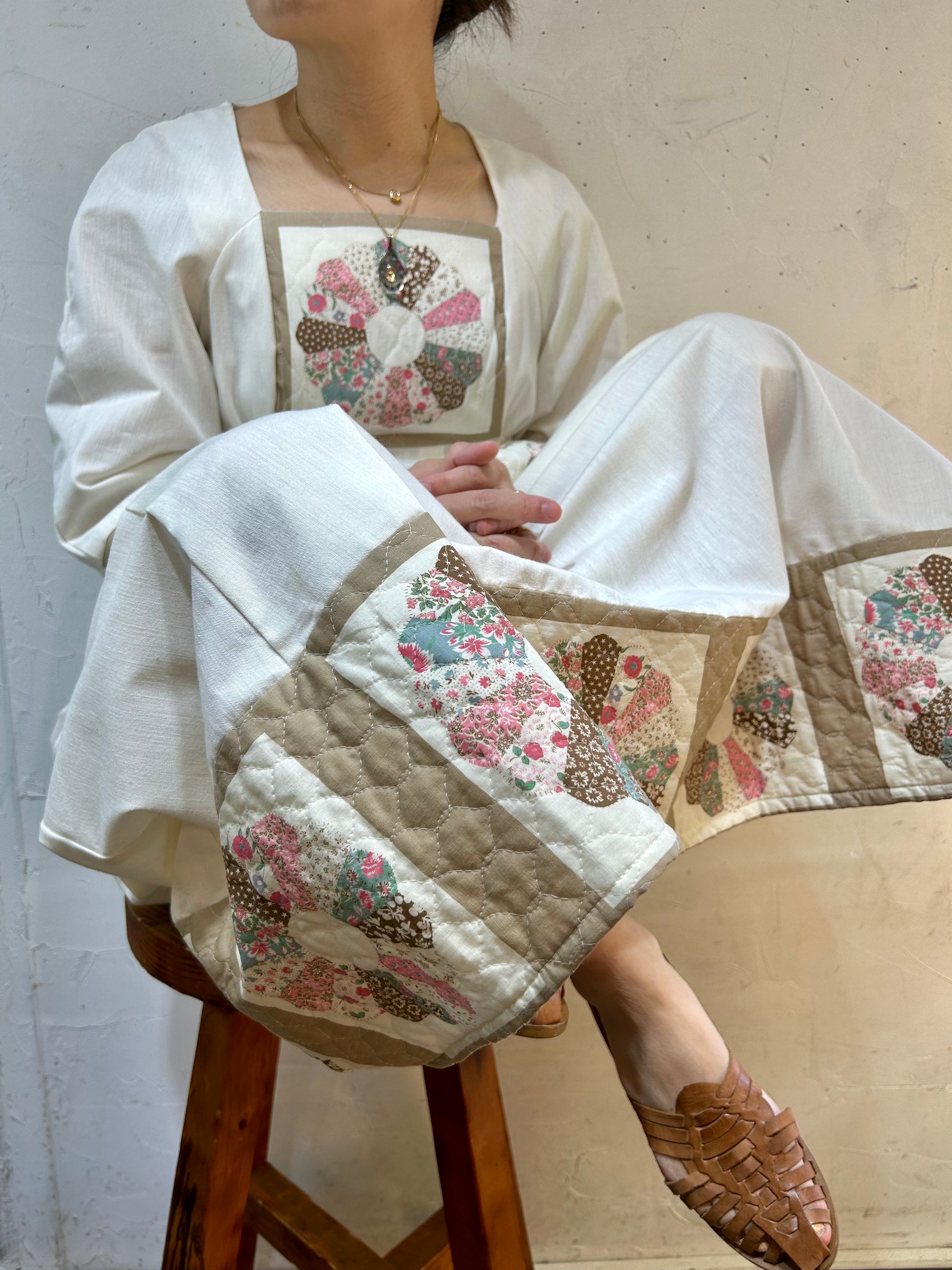 アイボリーボディにキルティングのパッチプリントの切替がとても可愛らしい1着。