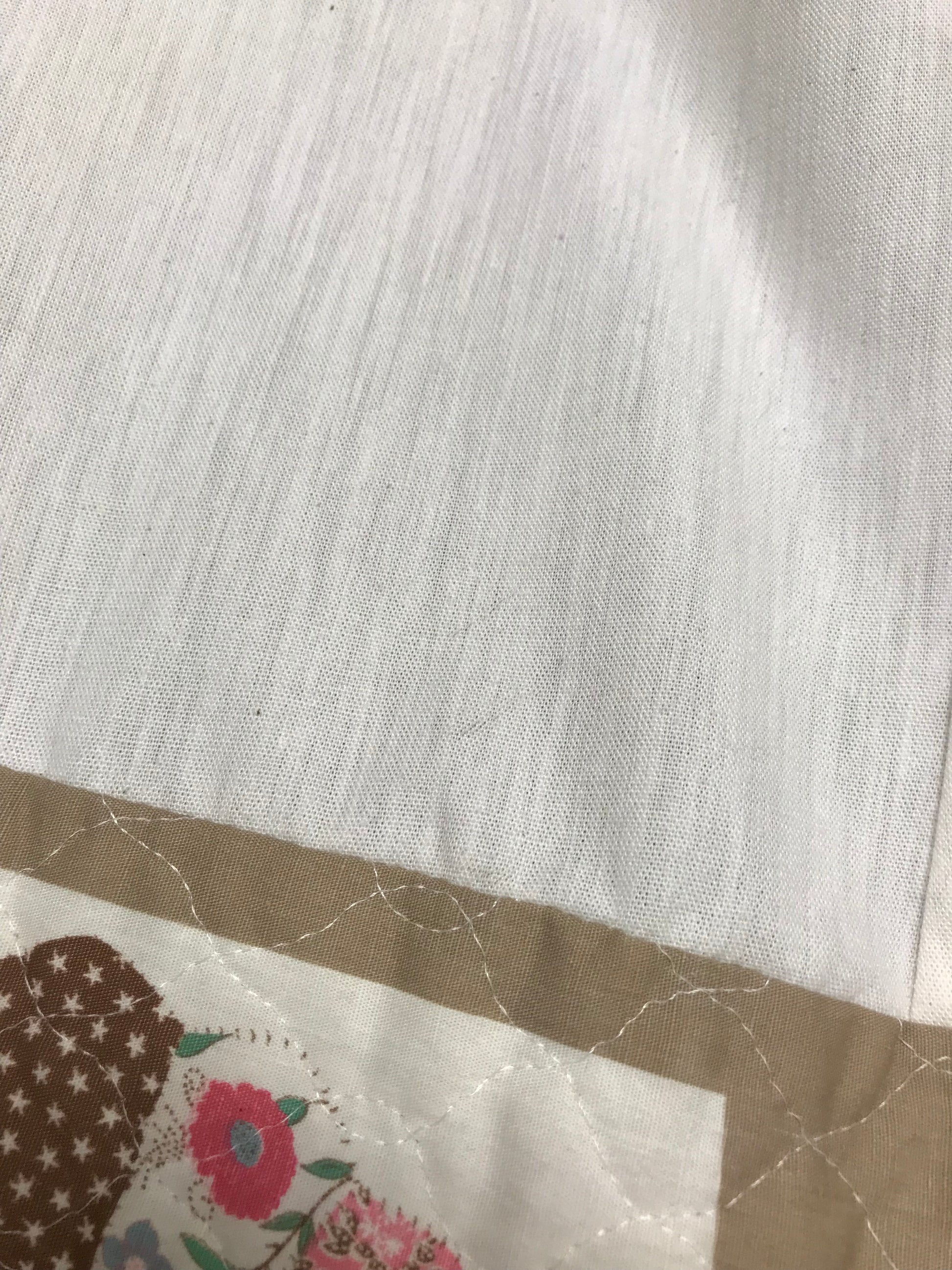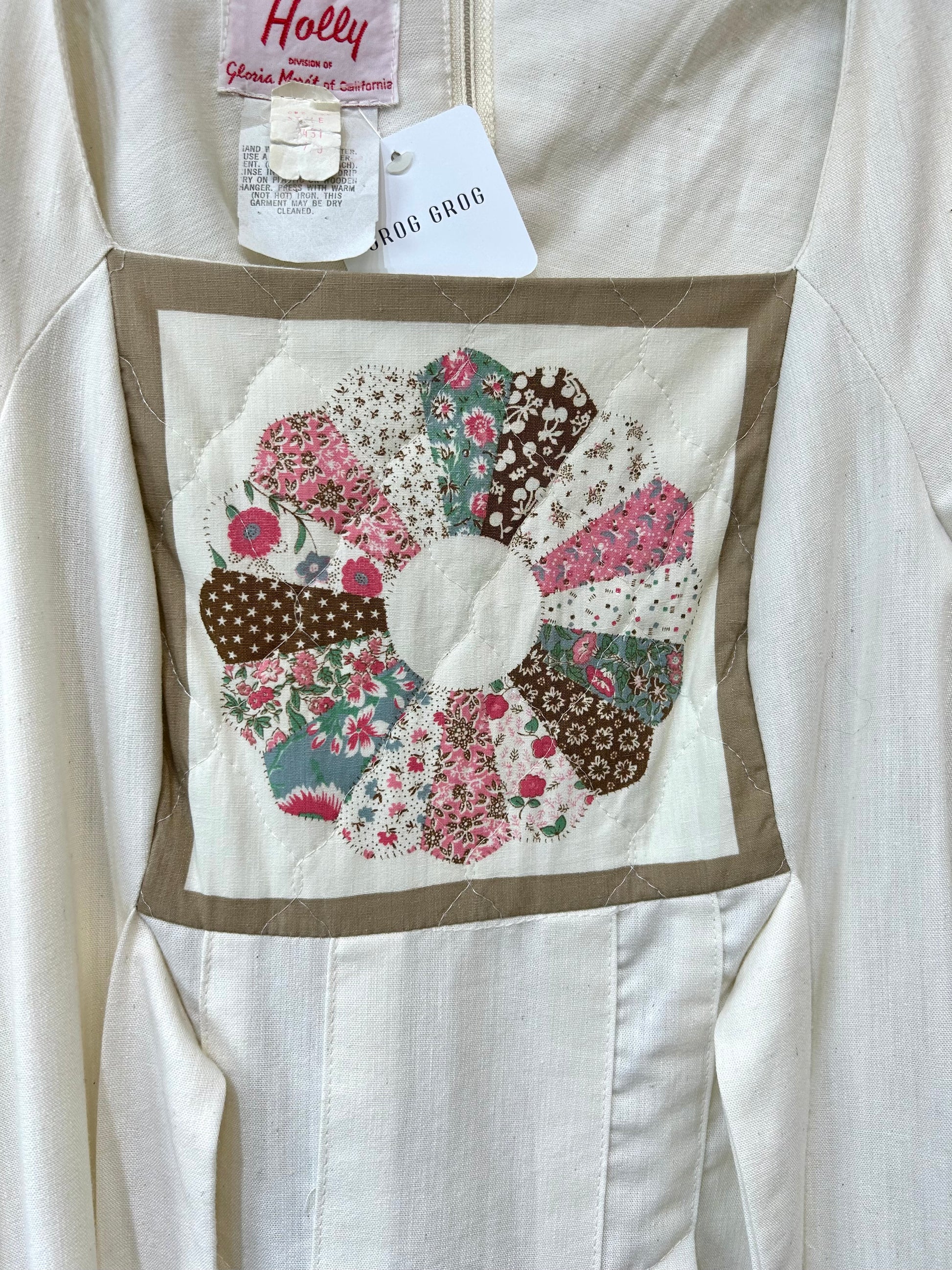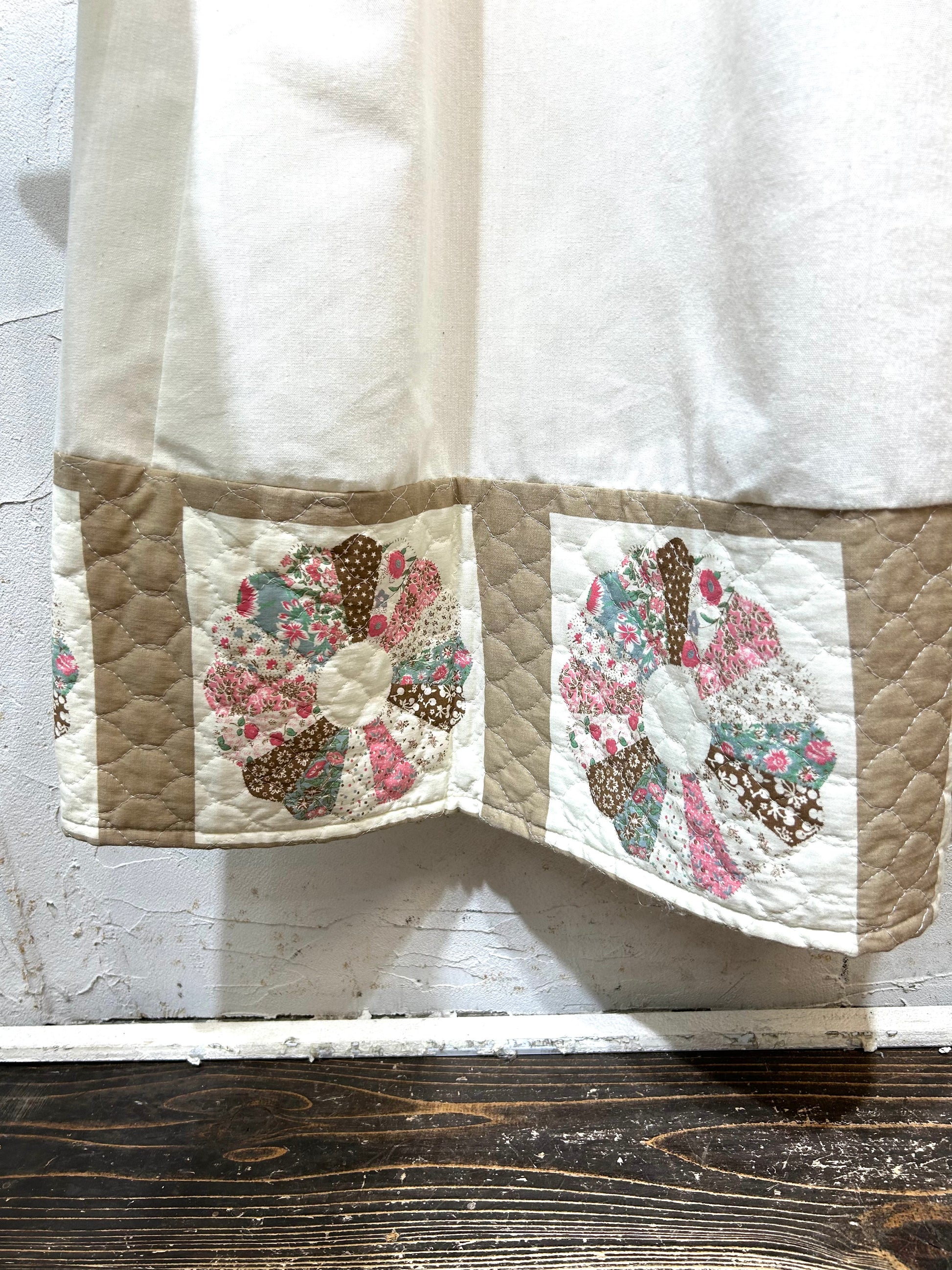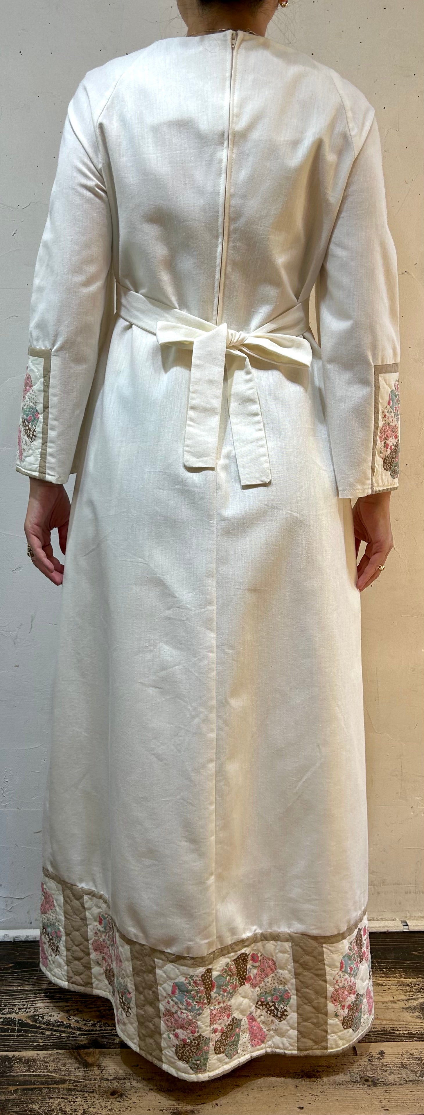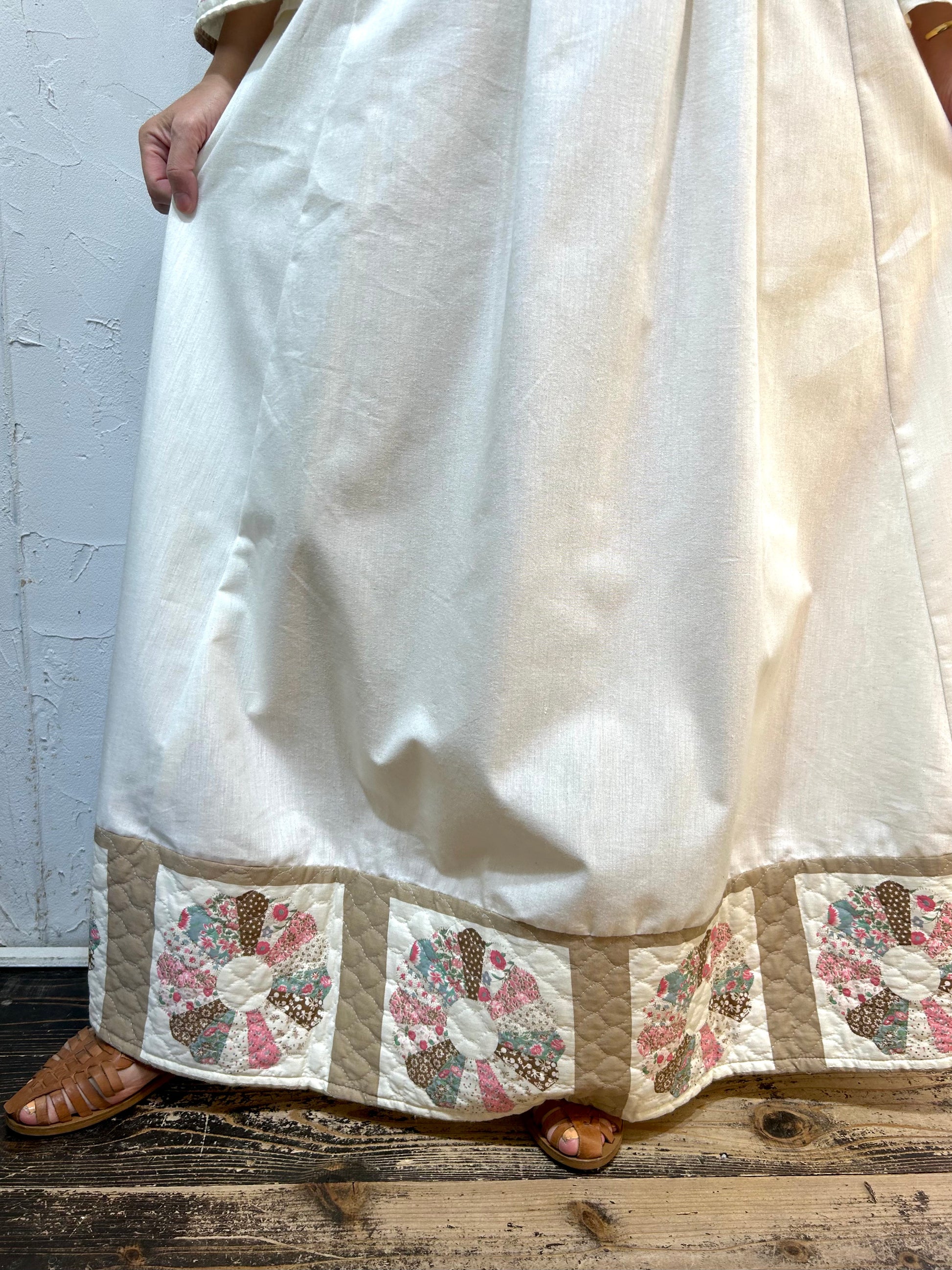 アイボリーボディにキルティングのパッチプリントの切替がとても可愛らしい1着。