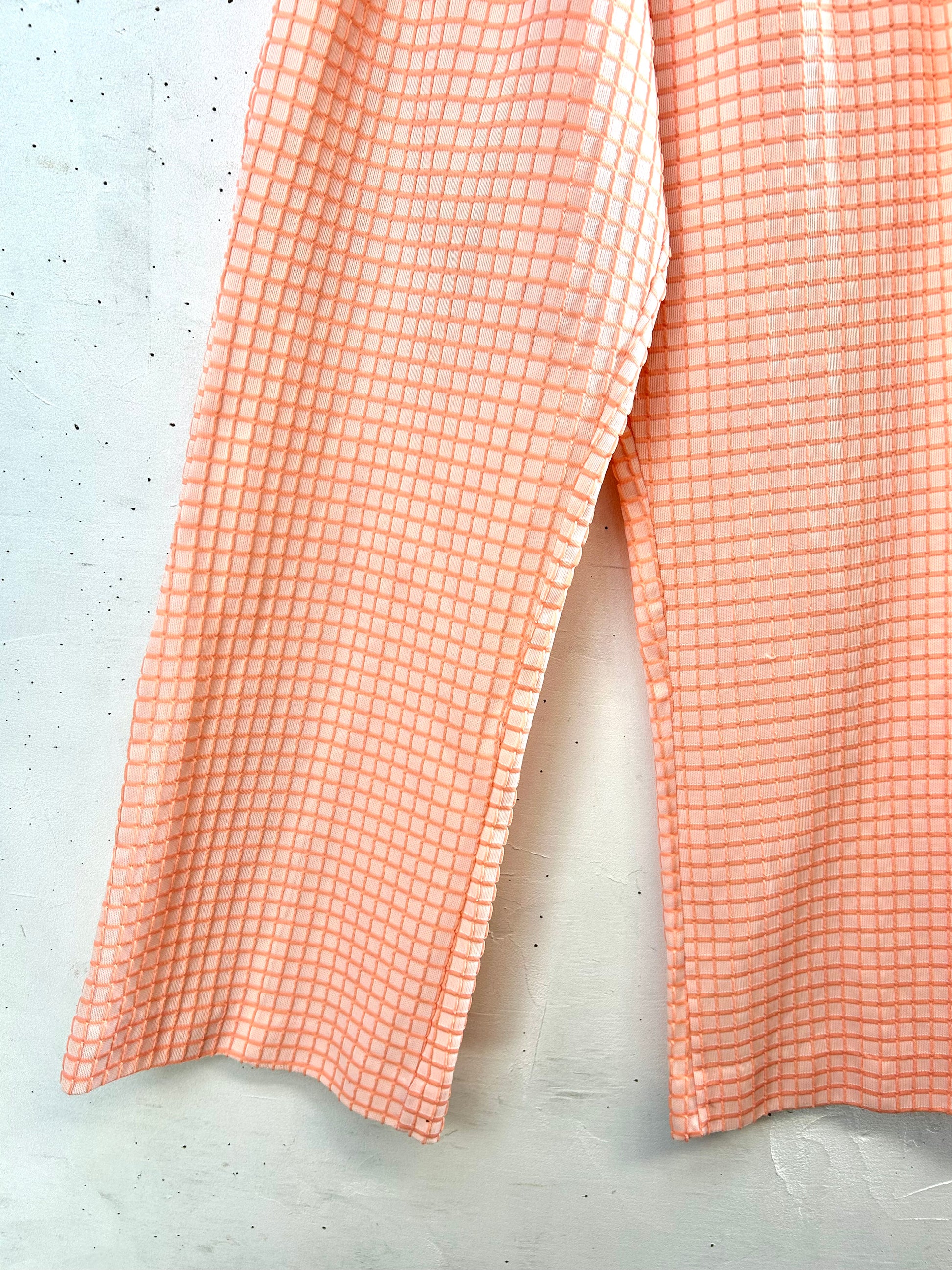 size:表記不明、ウエストゴム60〜95cm、総丈98cm、股上31cm、股下70cm、わたり幅33cm、裾幅28cm