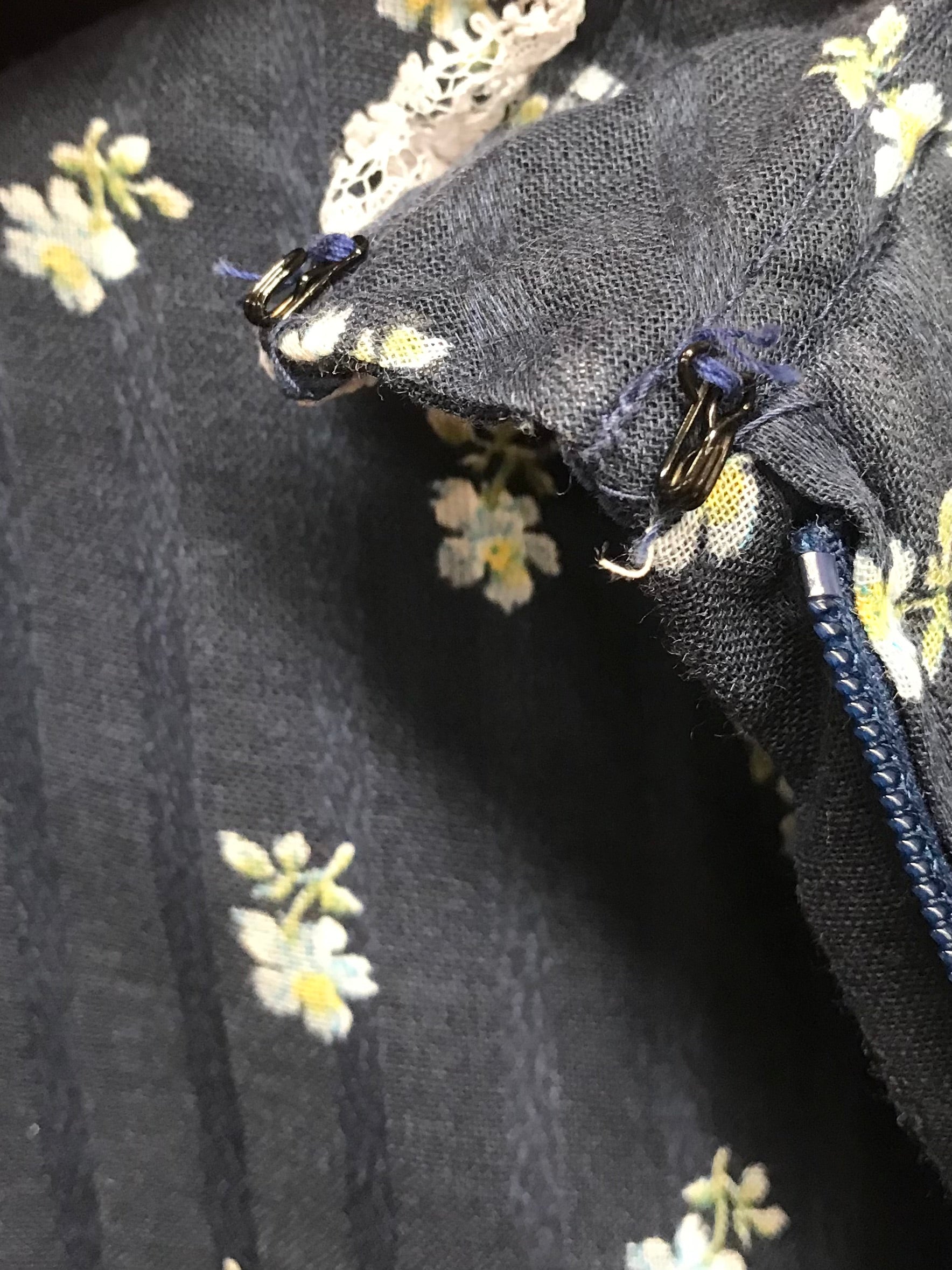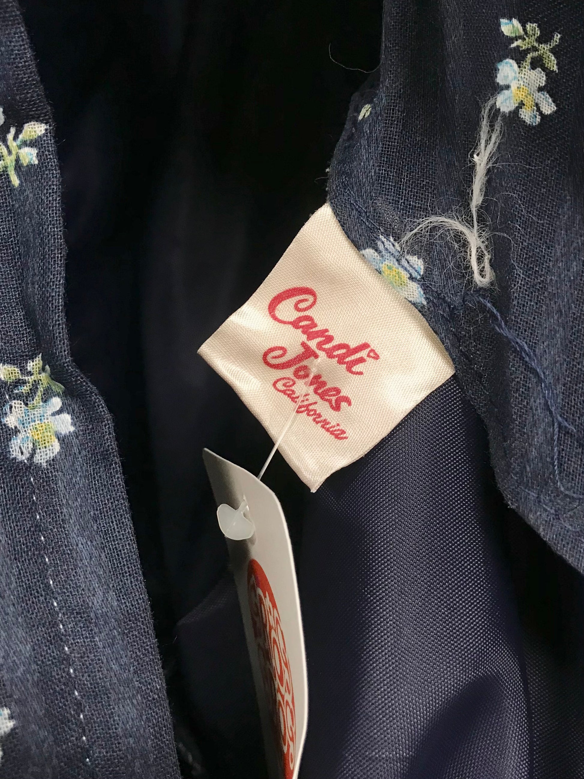ネイビーボディに散りばめられたフラワーパターン可愛らしい一着。