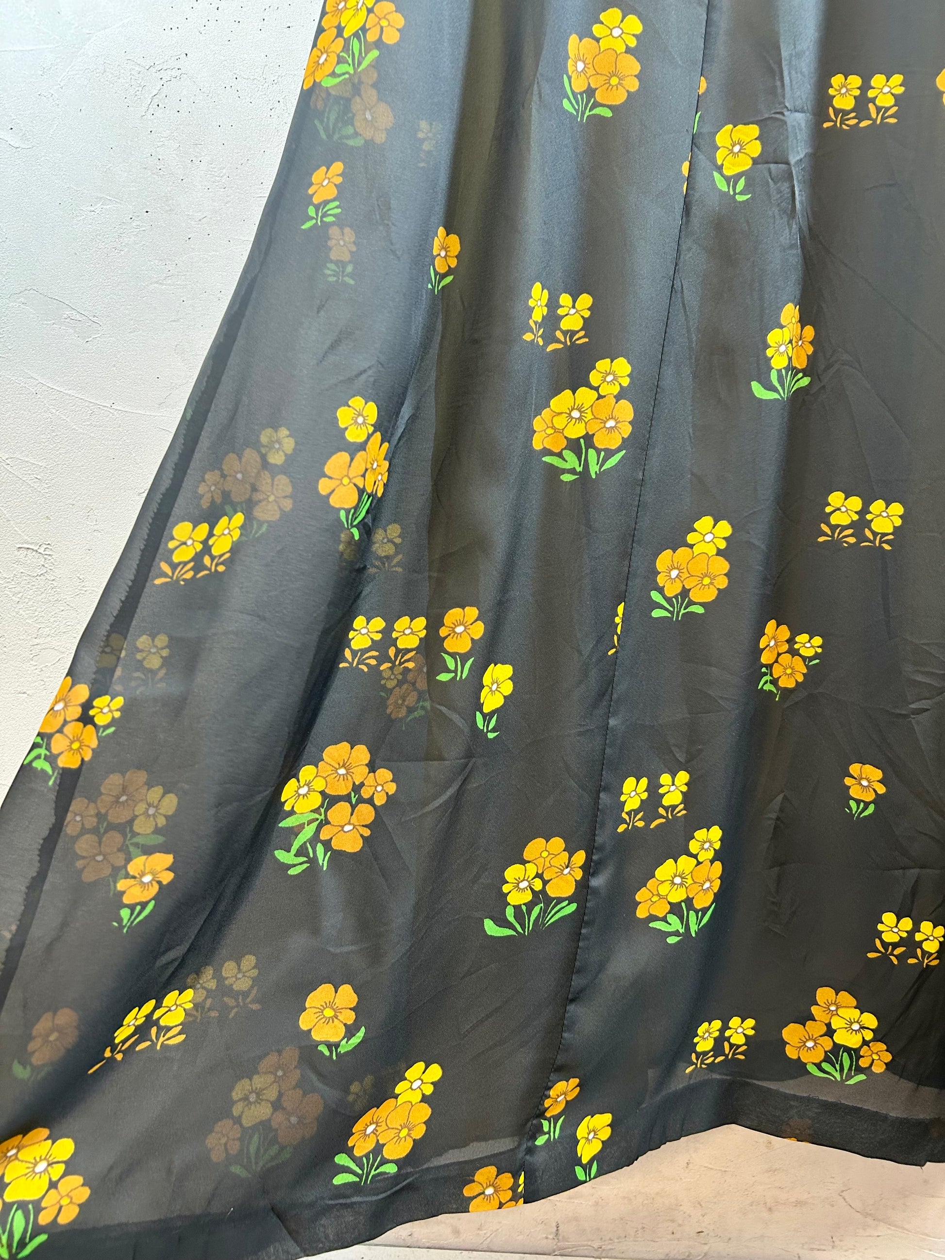 ブラックのボディにイエローやオレンジのフラワーが可愛らしい一着。