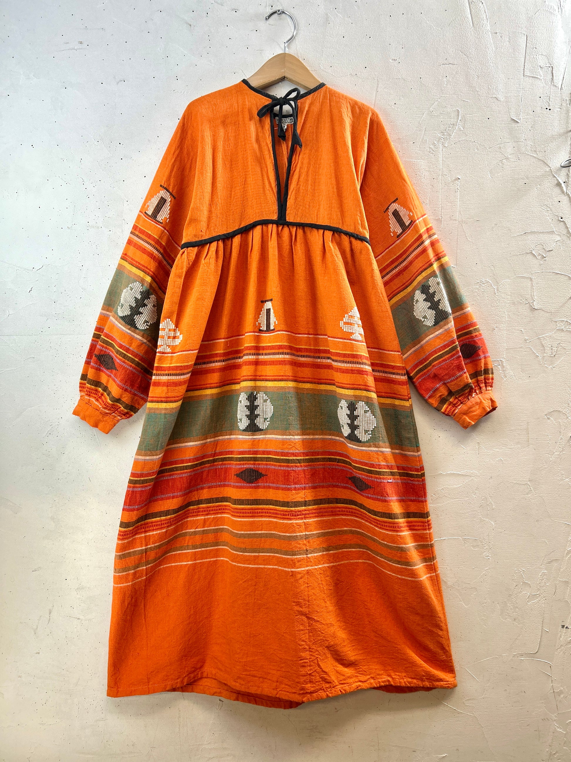 '70s Vintage Indian Cotton Dress MADE IN INDIA [H30978]
