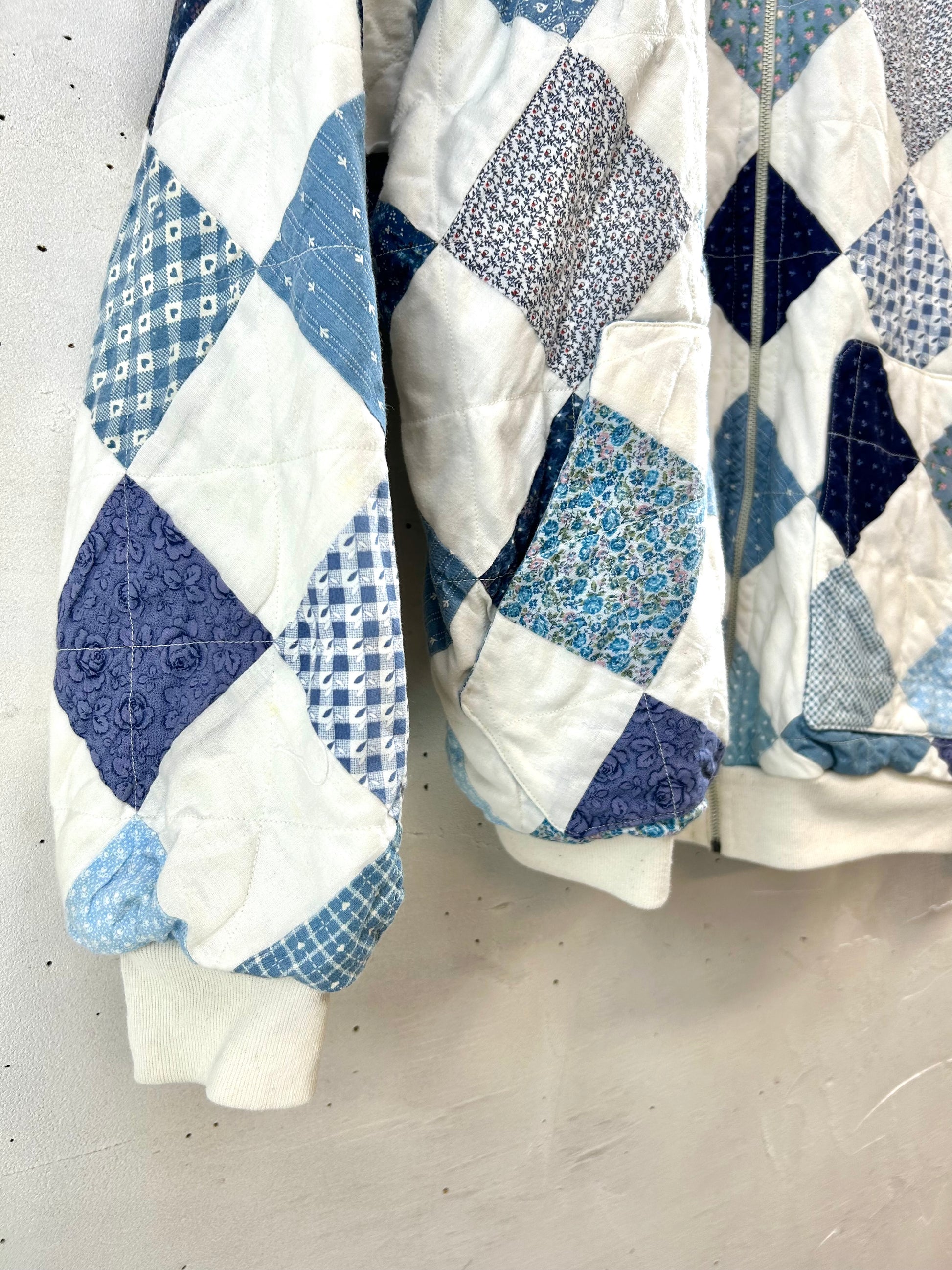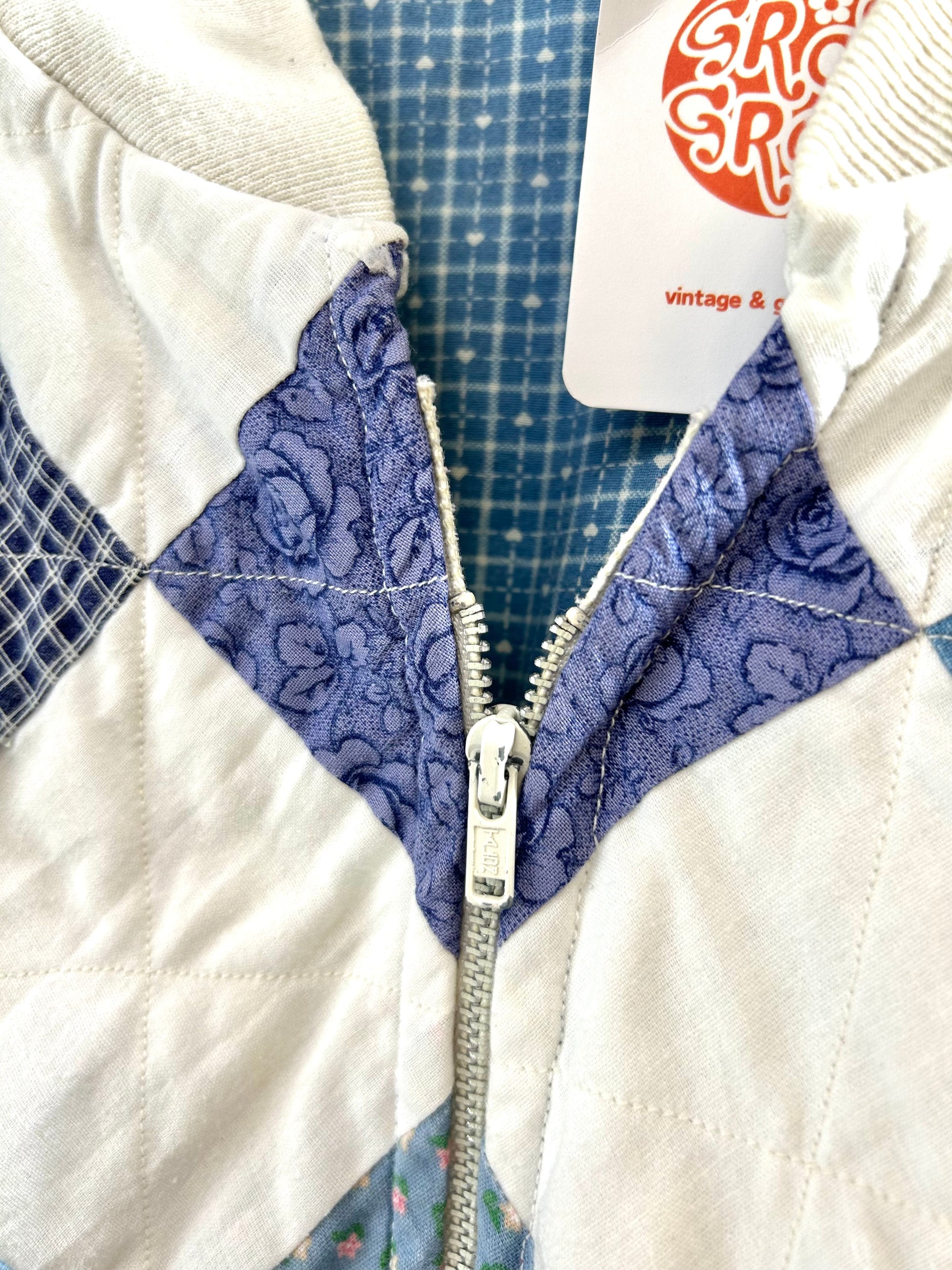 ハートや花、葉っぱ等、優しい色合いのパッチワークはビンテージならではの雰囲気抜群です。