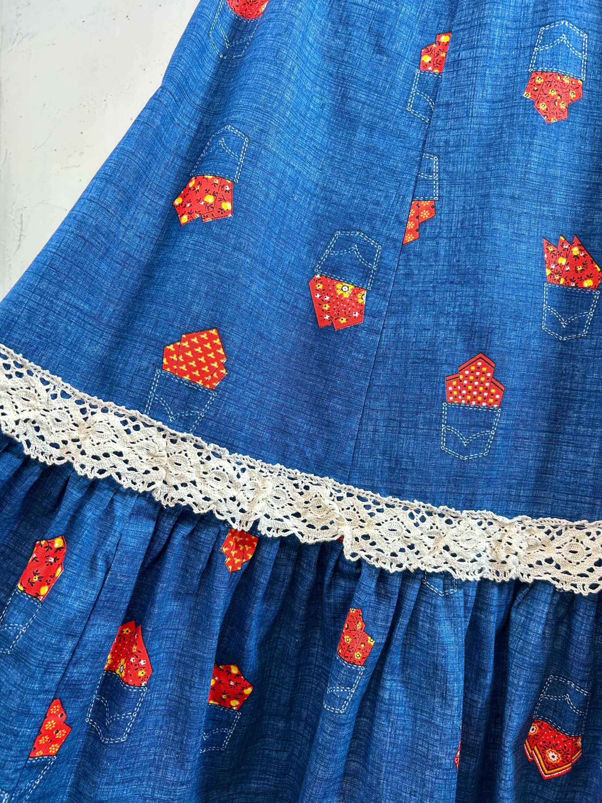 ポケットにバンダナが入ったデニムプリントがビンテージならではな1着。