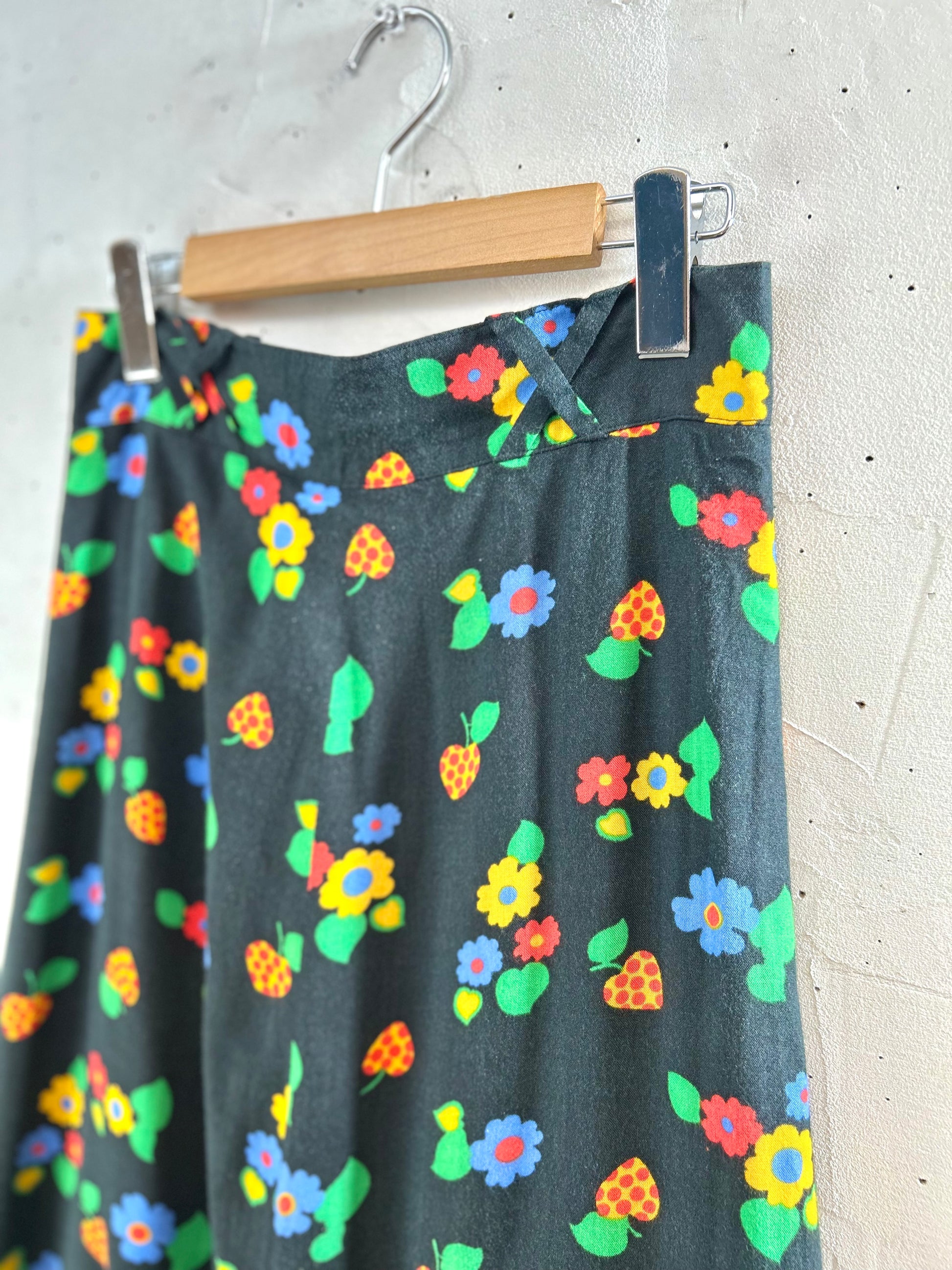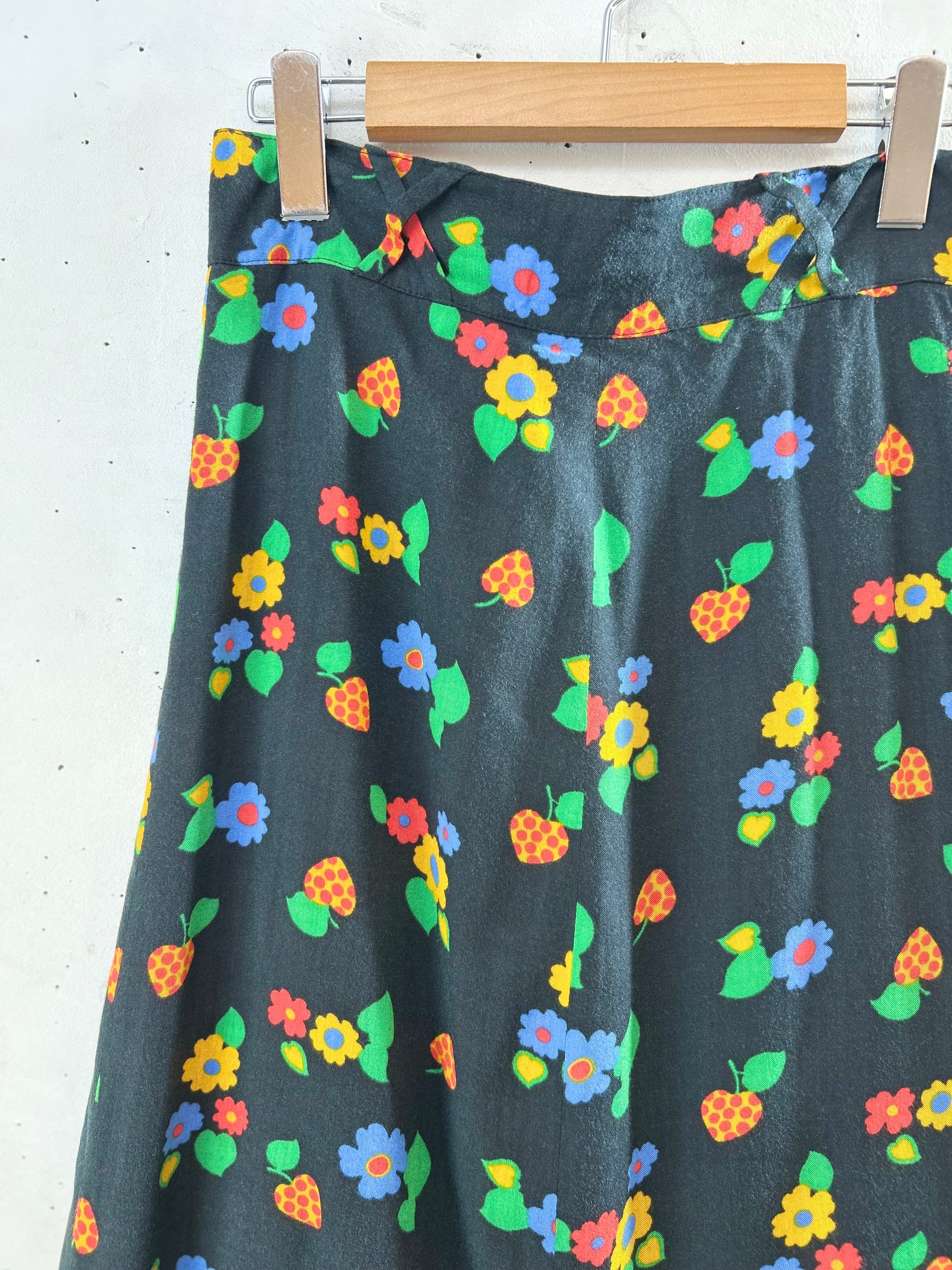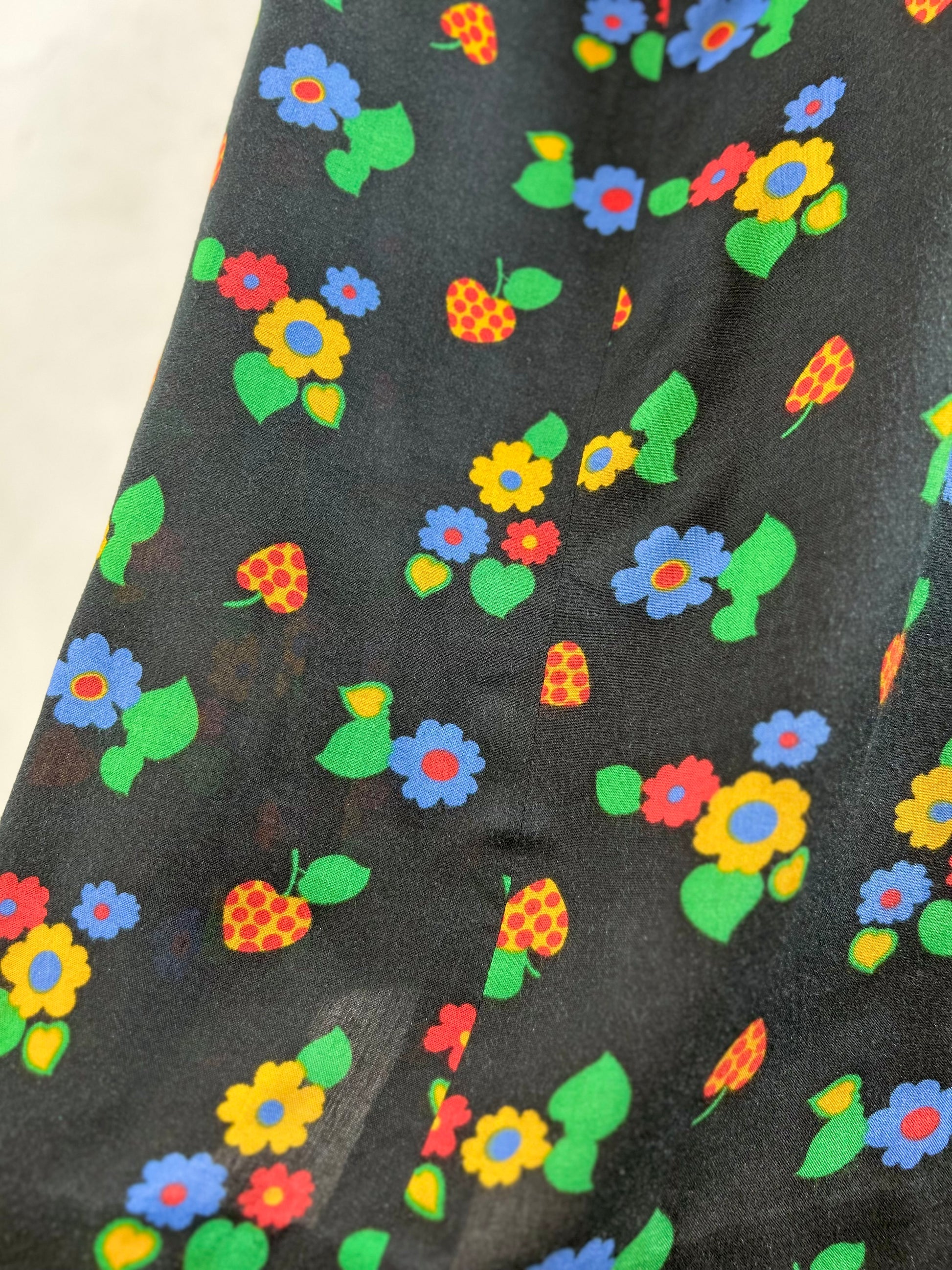 シンプルなシルエットに印象的でカラフルなフルーツ&フラワーの柄がビンテージならではなアイテムですので、コーデの主役にぴったりです。