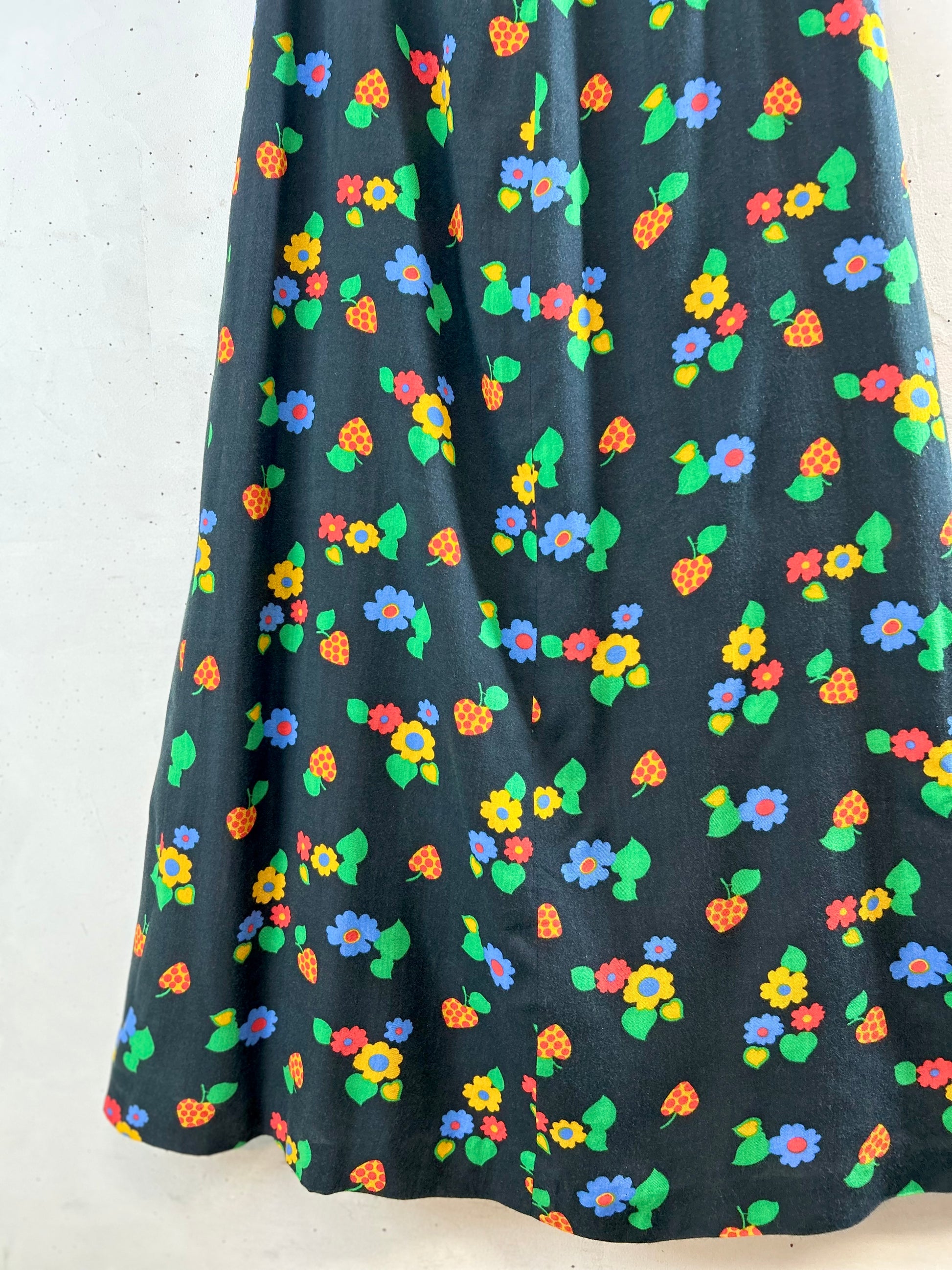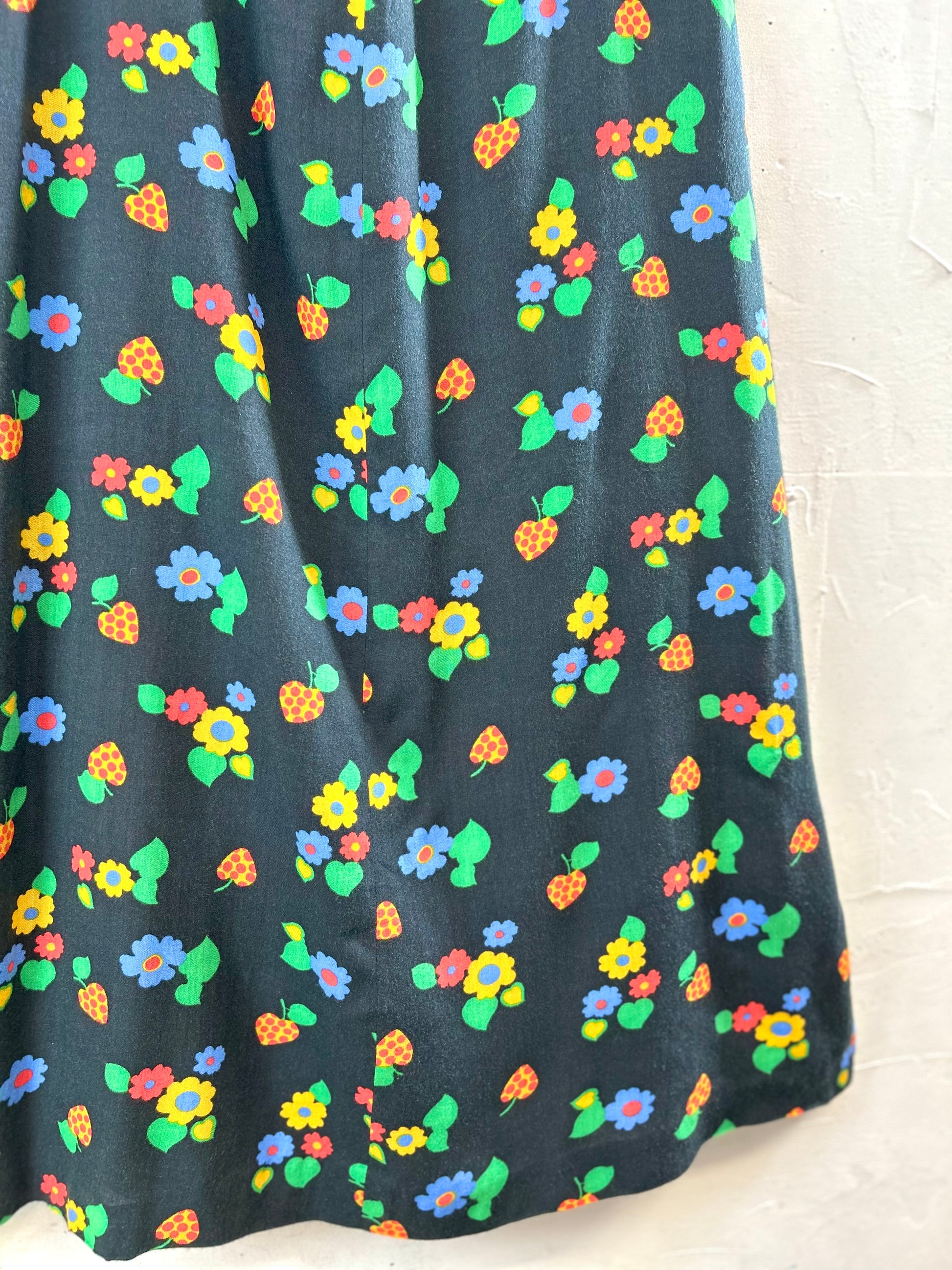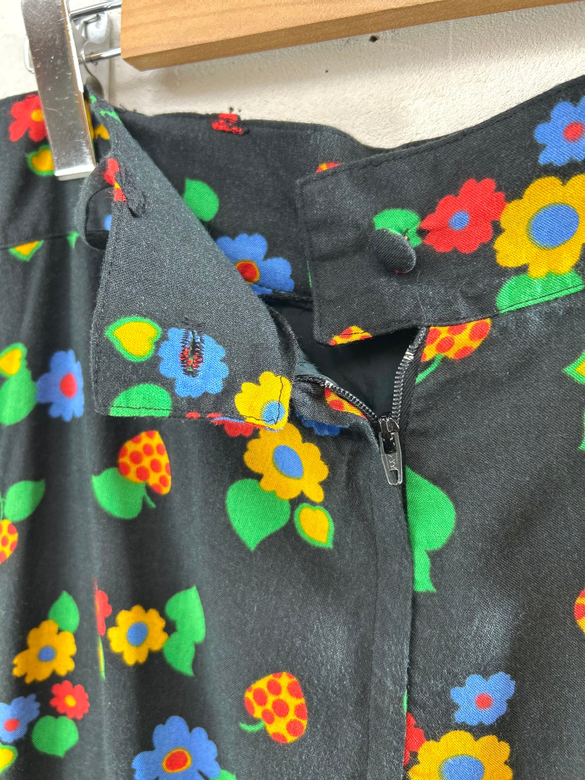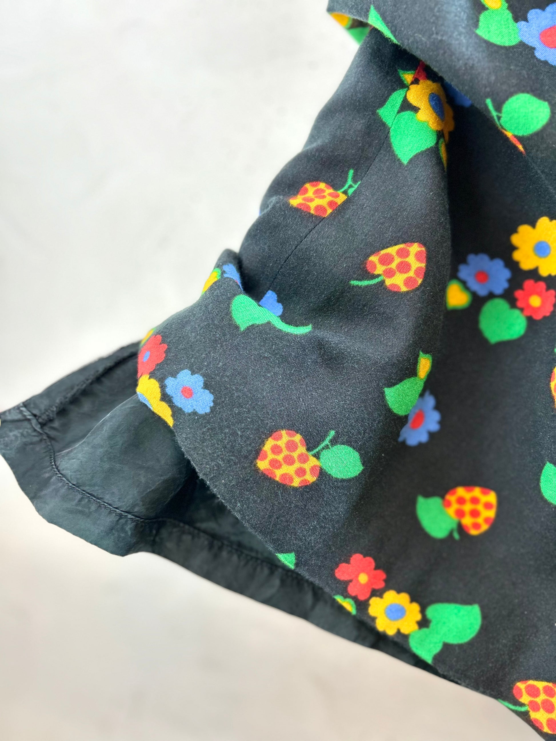 シンプルなシルエットに印象的でカラフルなフルーツ&フラワーの柄がビンテージならではなアイテムですので、コーデの主役にぴったりです。