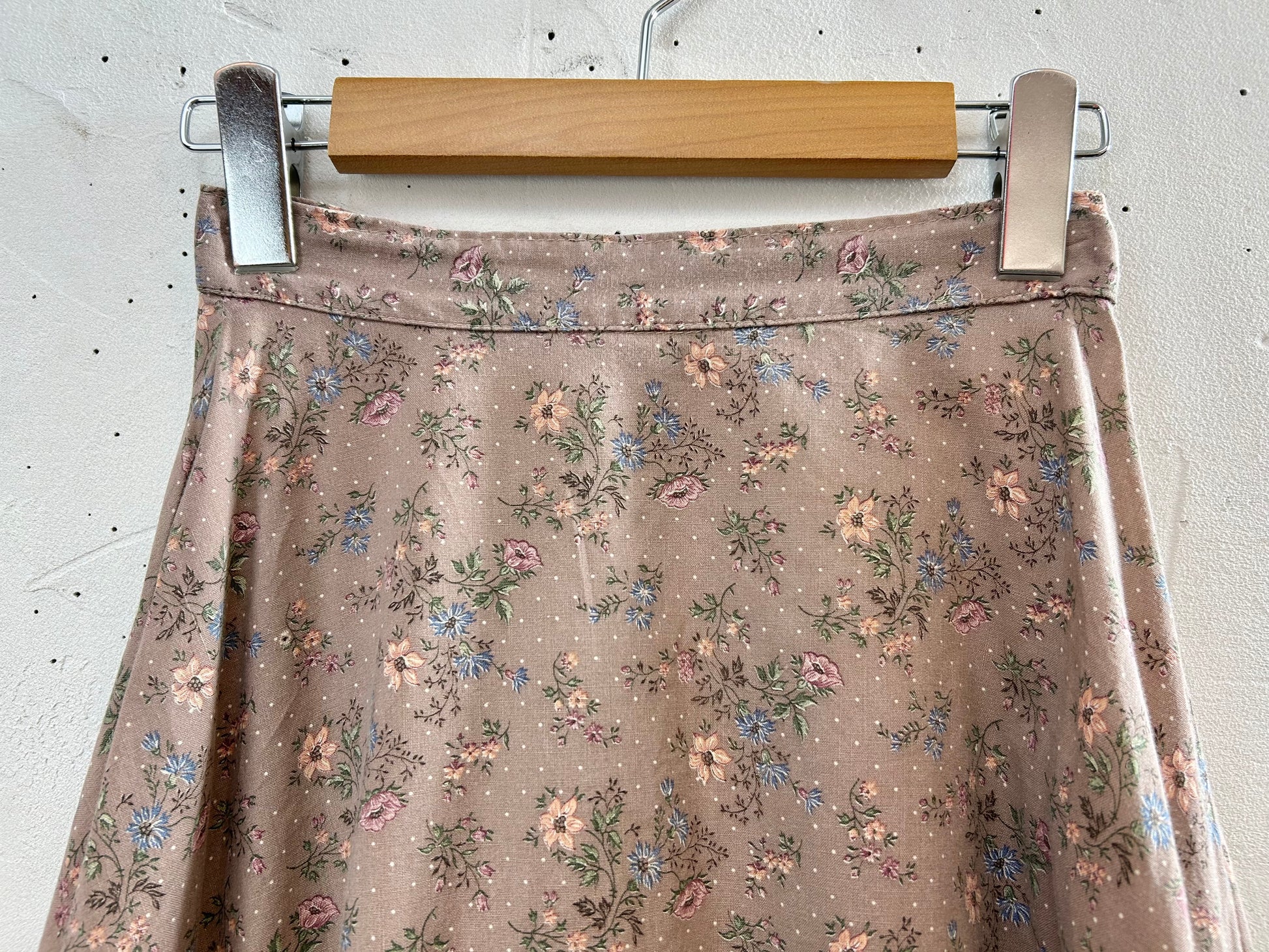 こちらのスカートは、ピンクブラウンボディにフラワーとピンドットのプリントがGUNNE SAXらしいガーリーな1着。