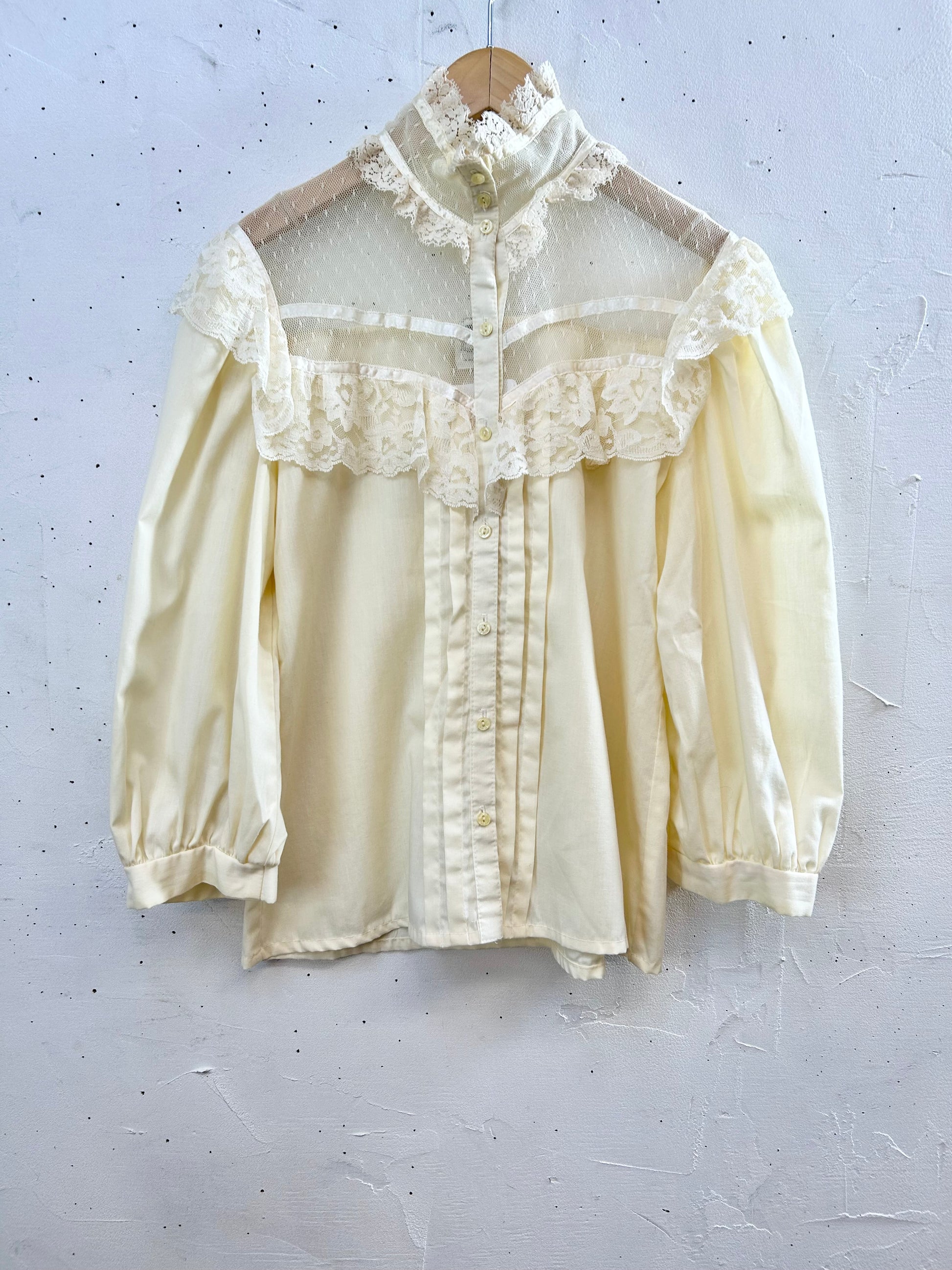 '70s Vintage White Blouse 〜GUNNE SAX〜 [C29751]