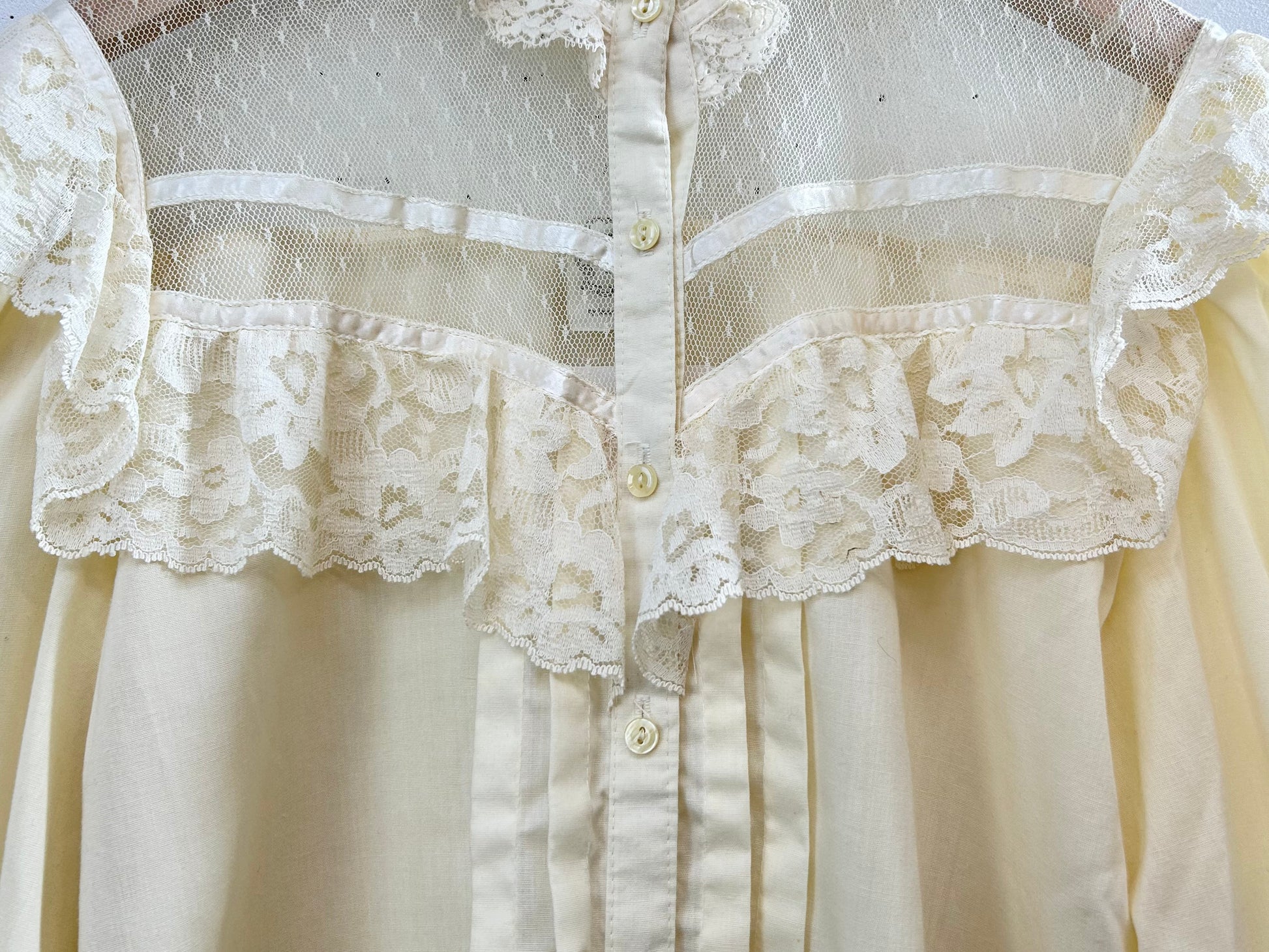 ビンテージアイテムの中でもとても人気のヨーク切替にフリルの付いたデザインで、ボリューム感のある袖のシルエットも可愛らしく、どこから見ても抜かりないデザインが流石です。