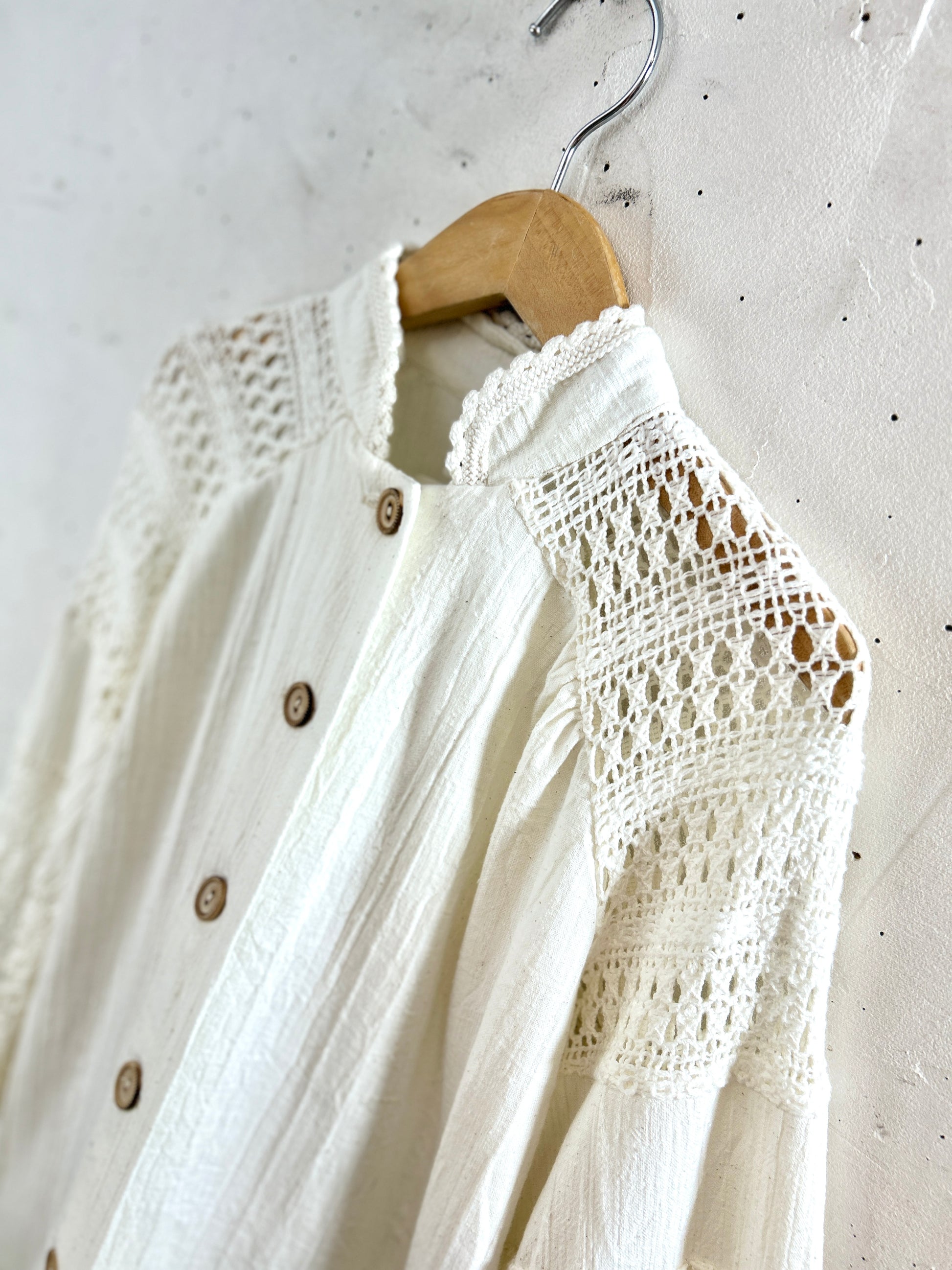肩から伸びる袖には、手編みの素材が使われ、とても品があり現代でも世界的に人気の高いアイテムとなっております。