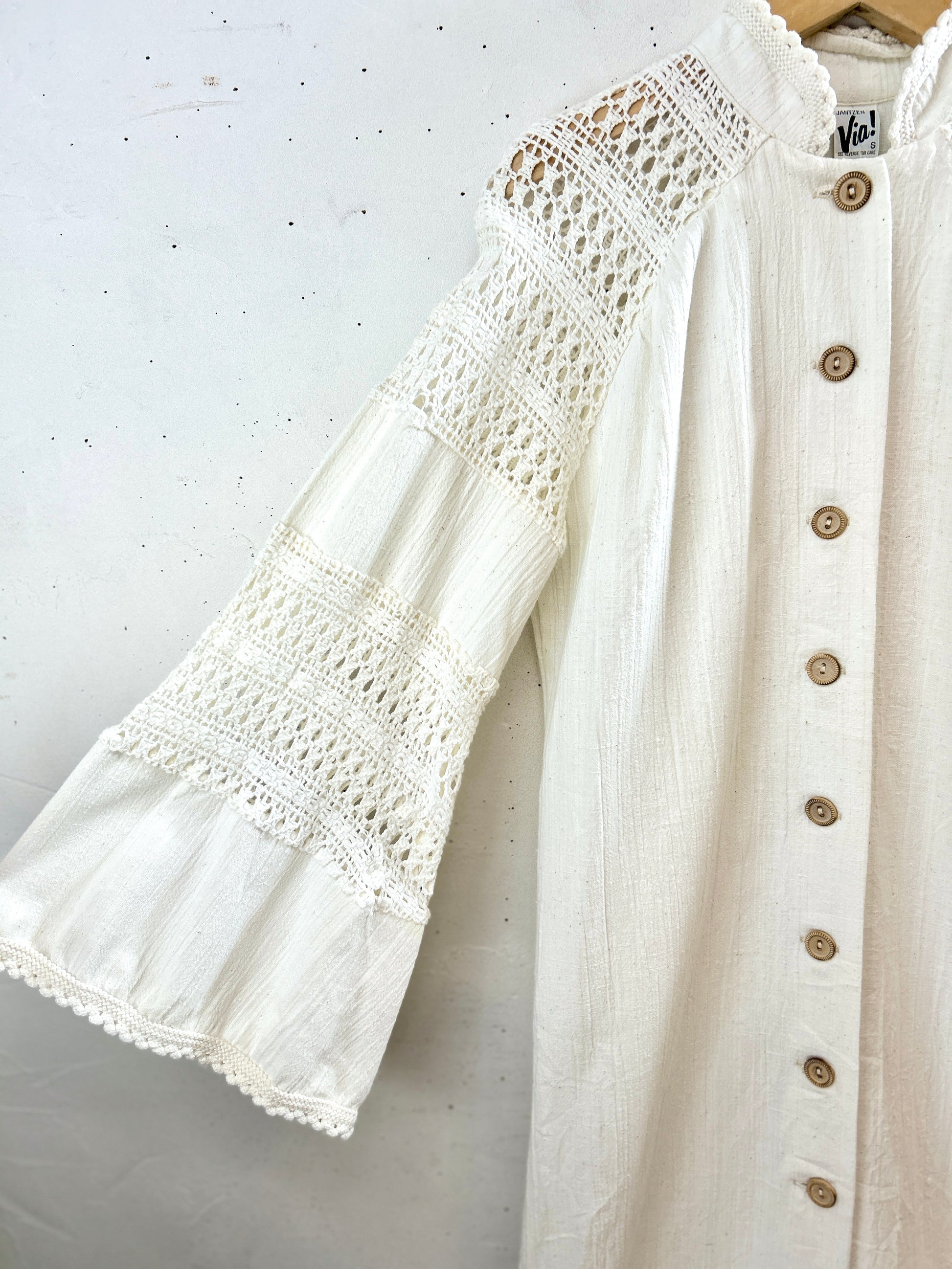 '70s Vintage White Dress 〜Via!〜 MADE IN USA [I30362]