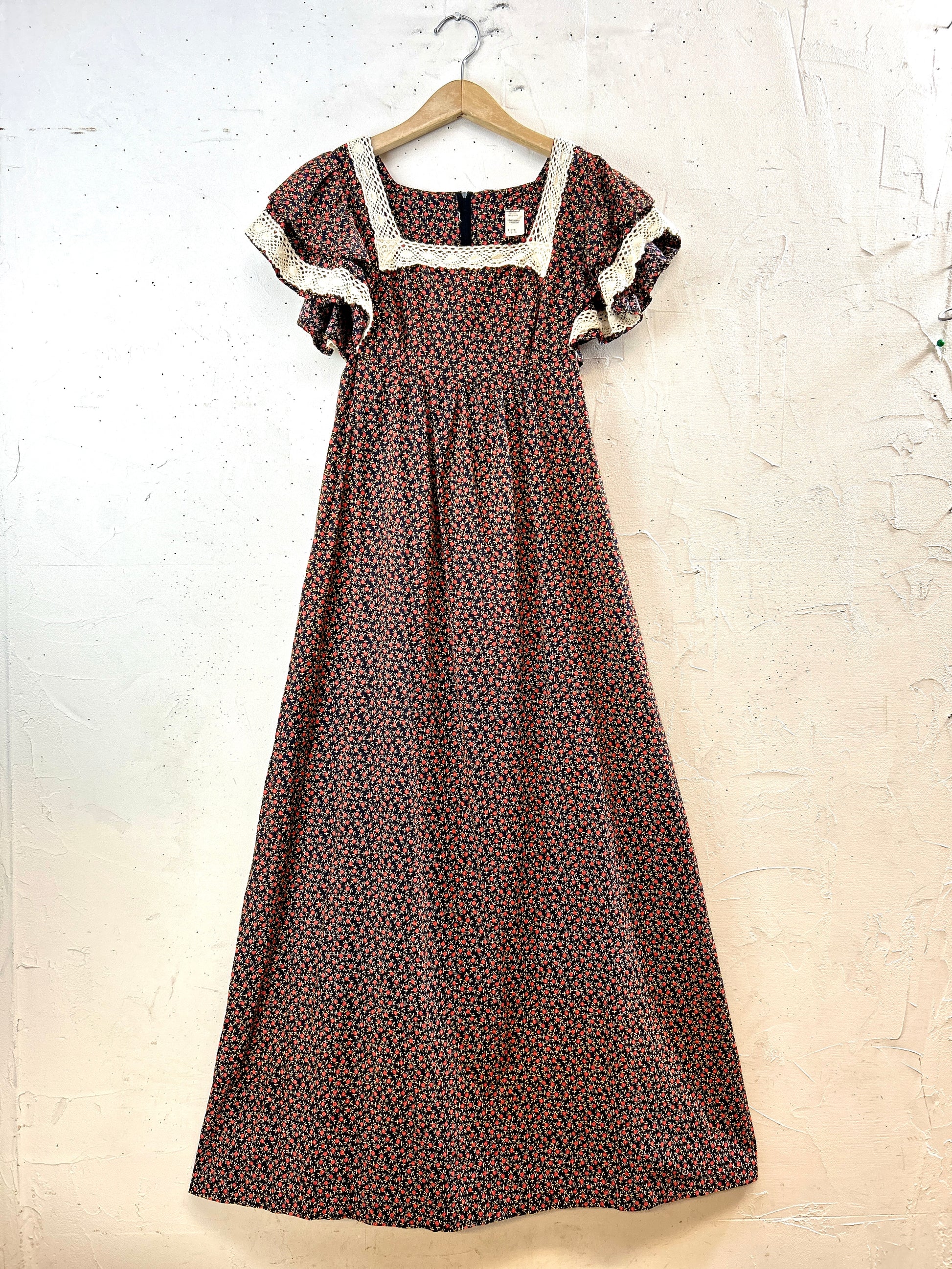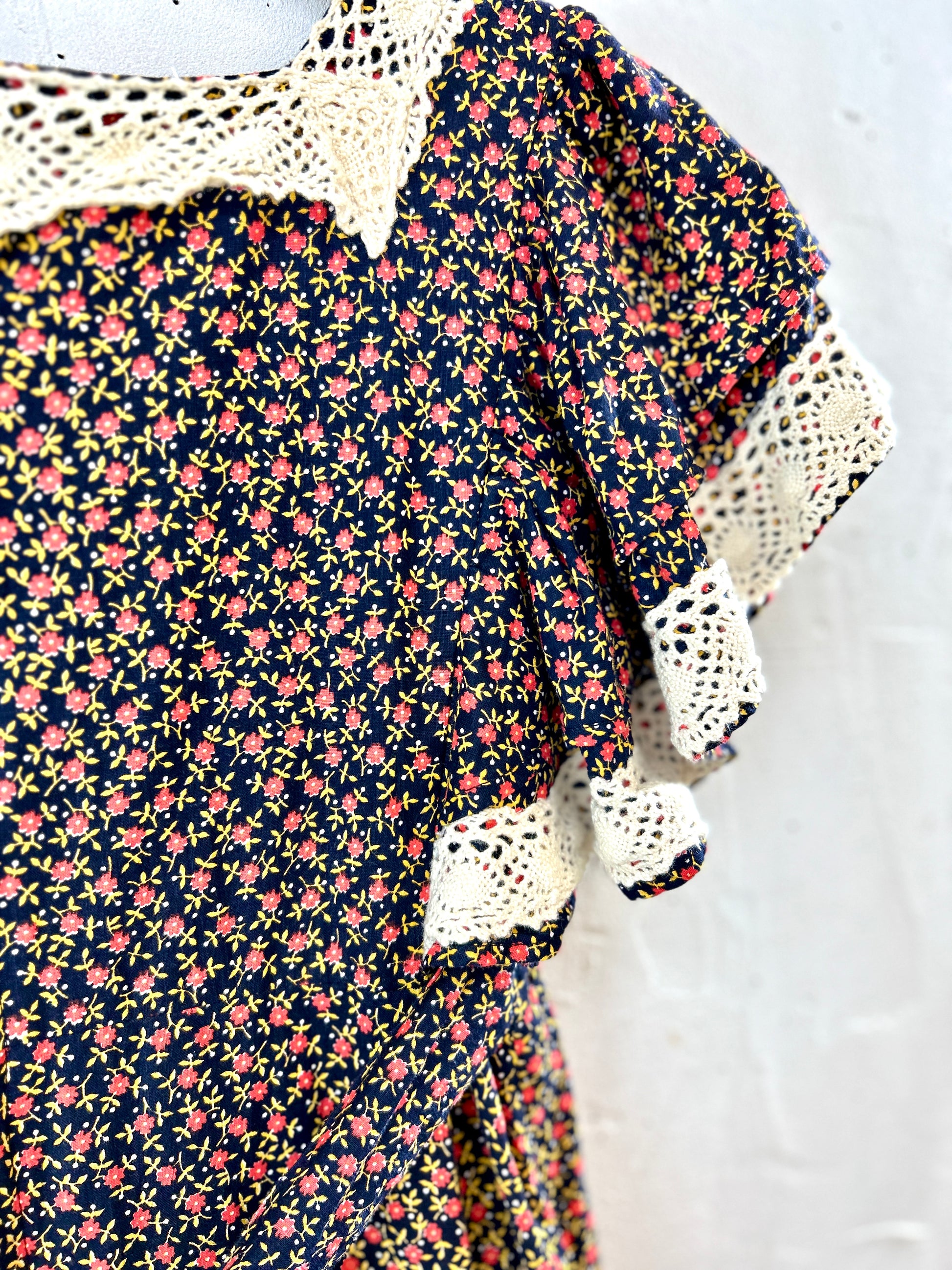 ブラウンボディーの小花柄が可愛いビンテージドレス。